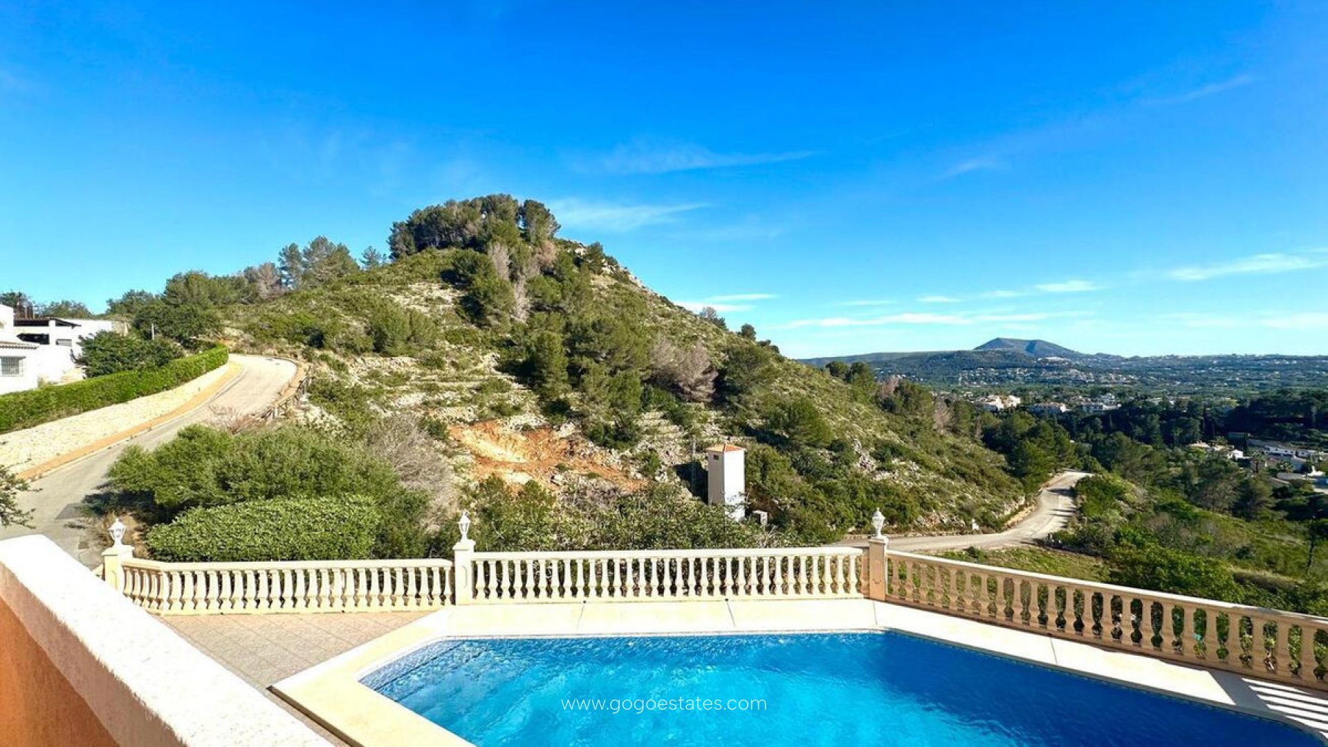Exquisite villa with a majestic swimming pool nestled in the prestigious Castellans locale, showcasing breathtaking panoramic vistas and sprawling verdant garden sanctuaries. Perched in the most coveted region of Jávea, this opulent abode is enveloped by the embrace of the majestic Montgó mountain, offering unparalleled vistas that span the entire valley, bathed in the warm, golden embrace of the sun throughout the day due to its exquisite south-facing disposition. The grand entrance reveals a capacious living-dining salon, thoughtfully integrated with an elegant open-plan gourmet kitchen, all of which open seamlessly onto an awe-inspiring terrace that serves as an idyllic stage for the dramatic landscape beyond. The ground floor is further graced by two sumptuous bedchambers and a luxuriously appointed bathroom, all of which are accessible from the central living space. An elegant staircase ascends to the upper level, which is perfectly aligned with the poolside retreat, presenting an additional two en-suite bedroom sanctuaries for the epitome of comfort and privacy. The sparkling swimming pool, a testament to the villa&39;s sophistication, may be accessed from various vantage points throughout the estate, ensuring that the soothing embrace of cool, refreshing waters is never far from reach. Adjacent to this aquatic oasis, one discovers a fully equipped summer kitchen, an additional bathroom designed for ultimate rejuvenation, a spacious naya (covered terrace) that invites leisurely alfresco dining, and a whimsical children&39;s play area to enchant the young at heart. The villa is endowed with state-of-the-art heating and air conditioning systems, transforming it into a year-round haven of luxurious comfort, perfect for both summer sojourns and extended residencies of indulgence. Meticulously maintained and recently revitalized with a discerning eye for detail, this magnificent property stands as a testament to refined living. A private viewing is absolutely essential to appreciate the true grandeur of this exceptional estate.
