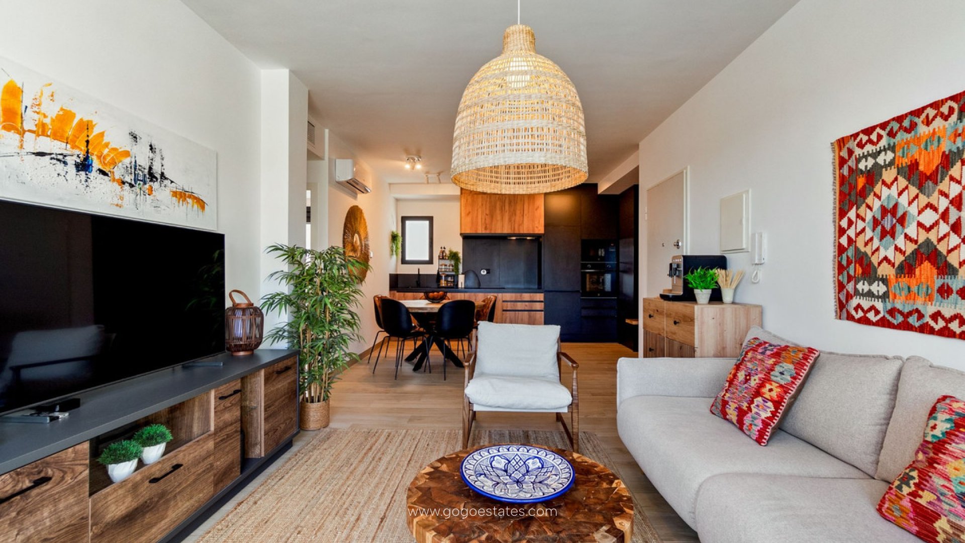 Welcome to this modern, move-in-ready penthouse apartment in San Miguel de Salinas – a home that combines style, comfort, and functionality. With thoughtful details, large outdoor spaces, and a bright atmosphere, this is an ideal property for both holiday use and year-round living. Key facts: Year of construction: 2024 Floor: 2nd floor (top floor) Living area: 65 m² Terrace: 12 m² Rooftop terrace/solarium: Entire 67 m² with pergola, outdoor kitchen, and shower Bedrooms: 2 with built-in wardrobes Bathrooms: 2 (including en-suite) Underfloor heating: In living room, kitchen, and both bathrooms Air conditioning: Central heating/cooling Communal facilities: Swimming pool, green areas, intercom Interior: The apartment is fully furnished and decorated in a modern style, with bright surfaces and open layouts. The living room and kitchen are seamlessly integrated, and the large windows provide ample natural light. Underfloor heating in the living room, kitchen, and both bathrooms ensures extra comfort, especially during the winter months. Exterior: The absolute highlight is the impressive 67 m² rooftop terrace with panoramic views of the mountains and the beautiful salt lake. Here you'll find a practical outdoor kitchen with hot and cold water, a barbecue, pergola, and an outdoor shower with hot and cold water – perfect for relaxation and social gatherings under the open sky. Location and surroundings: San Miguel de Salinas is a charming Spanish town known for its authentic atmosphere and great location between the salt lakes of Torrevieja and the natural surroundings of Orihuela Costa. You'll find a wide selection of restaurants, bars, and shops – all within walking distance from the home. You're just a short drive from some of Costa Blanca's best beaches, including Playa Flamenca, La Zenia, and Mil Palmeras – all only 10–15 minutes away by car. Golf enthusiasts will appreciate the proximity to several prestigious courses such as Las Colinas, Villamartin, Campoamor, and Las Ramblas. In addition, the popular La Zenia Boulevard shopping center is only about 10 minutes away, offering over 150 shops, restaurants, cafés, and entertainment. Extra features: Outdoor and indoor lighting Reinforced entrance door Intercom system Fully furnished with appliances included Communal green areas and swimming pool This penthouse offers that little extra – modern standards, spacious outdoor areas, and a fantastic view of both the mountains and the salt lake. A perfect home for those seeking quality, comfort, and sunny days in beautiful surroundings – close to everything Costa Blanca has to offer.