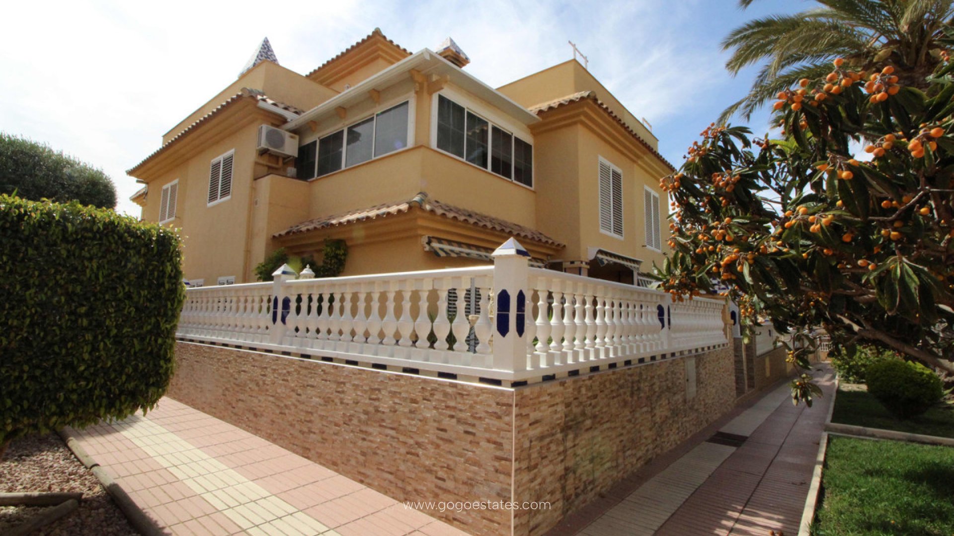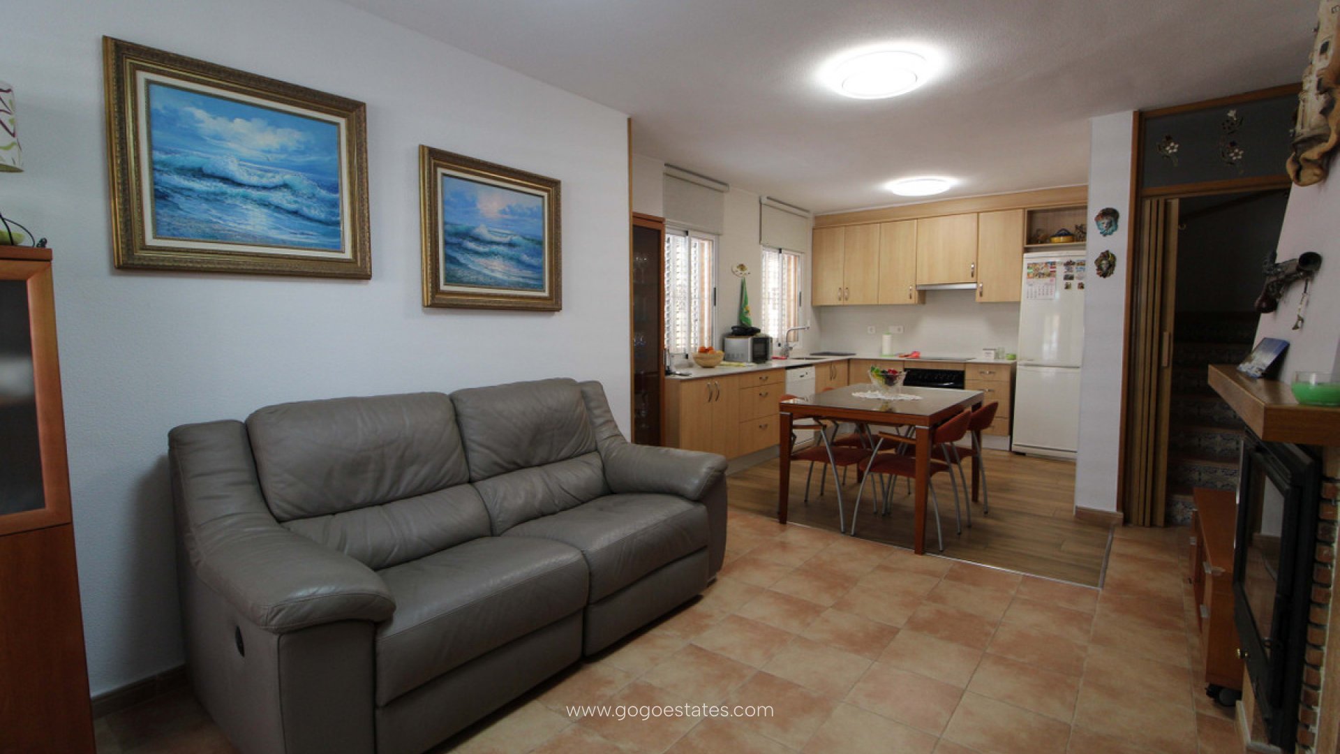 This new listing is an East facing corner property located in a gated community in Gran Alacant. With four bedrooms, two bathrooms and nice outside spaces is in very good condition. As you enter the property, you will find an open space that includes living/dining area with an open kitchen. The kitchen is fully equipped with fridge/freezer, hob, oven and dishwasher. There is also a bedroom with a wardrobe and a full bathroom with shower, and a small covered galleria with storage space and where the owner has installed the boiler and the washing machine. On the first floor you will find 2 nice size bedrooms both of them with built in wardrobes. There is a large den that was once a terrace and the owner has glazed and cover to make better use of the space. This area can be easily turned into a bedroom. There is also a full bathroom with walk in shower on this floor. The property has 2 top floor terraces. One of them is not very big but receives sun all day. The second terrace is bigger and has views to the mountains and Alicante city. The is also a front terrace that receives the morning sun and part of it receives sun all day since it's south facing. There is a small storage space on the terrace. The property is in a gated community with 3 swimming pools, multiple sports area, a chiringuito, for use of the residents of the community, and a children's playground. The community also has direct access to the Santa Pola Natural Reserve. It is close to bars, restaurants, bus stops, medical centre, pharmacy and soon the new local elementary school.