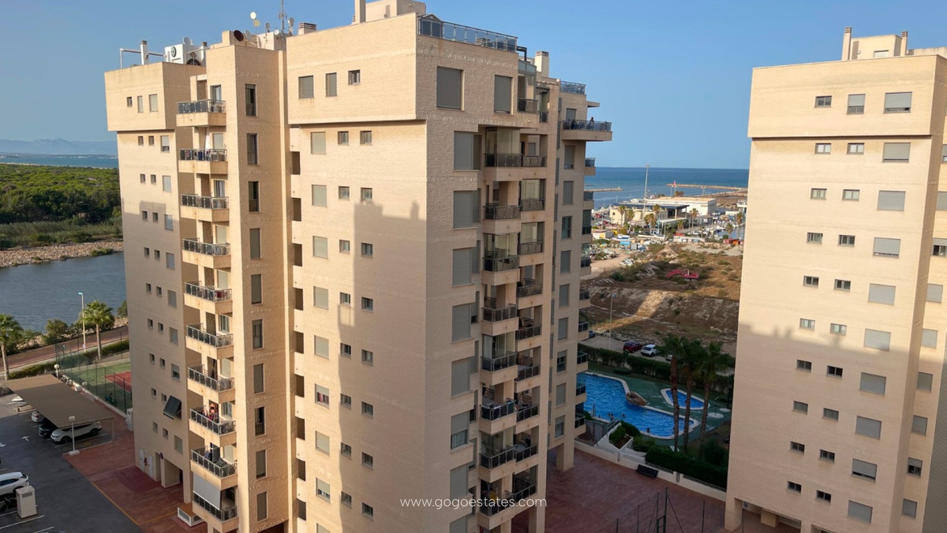 Renovated Triplex Penthouse with Stunning Views in Guardamar del SeguraLive above it all, in style! This renovated triplex penthouse, spanning the 9th, 10th, and 11th floors, offers breathtaking panoramic views of the sea, pine forest, and river. With east-west orientation, natural light floods the home throughout the day.The property has a built area of 114 m² and 96 m² usable, featuring three bedrooms, two bathrooms, a fully equipped kitchen (renovated just one year ago), and an open layout that ensures great ventilation and brightness.Notable features include air conditioning, ceramic tile flooring, double-glazed aluminum windows, built-in wardrobes, awnings, and blinds on all windows.Enjoy three private terraces with stunning views – perfect for relaxing or entertaining. The community offers a shared garden with natural grass and palm trees, as well as a swimming pool.The property includes a covered parking space, storage room, and the building has two elevators. Community fees are just €60/month.Located in the Puerto Deportivo district, you'll be close to the beach, river, marina, schools, supermarkets, and a wide range of outdoor activities including water sports and nature walks at the Marina de las Dunas.A perfect home for those seeking a balance of comfort, nature, and coastal living. Come see it – the views will leave you speechless!