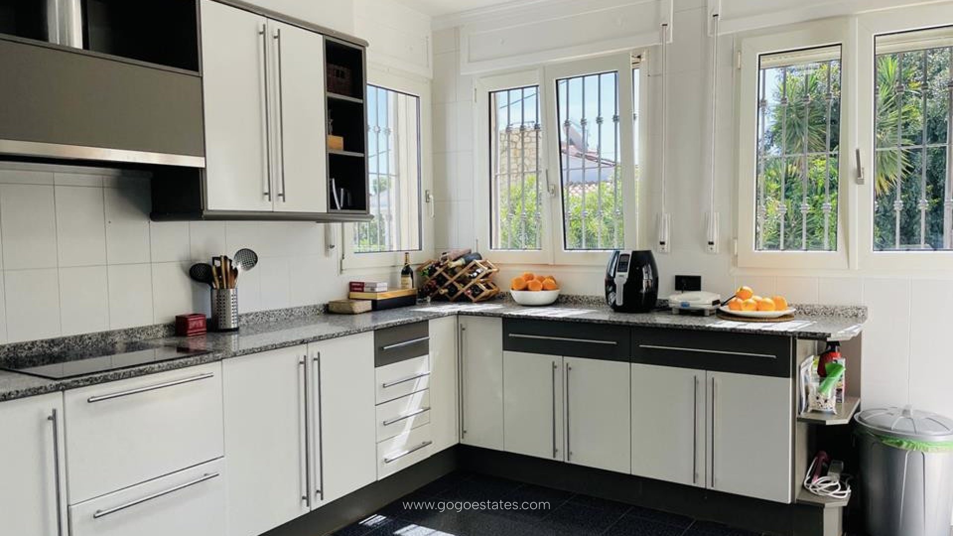 Residential villa located in Denia (Alicante) in the area of Las Rotas, near the Natural Park of Montgo (c / Barranc del Monyo 72), distant from the town of Denia 4 Km. And surrounded by single family residential houses and the natural park Montgo. Private access road. Facing the North - East. Year built 1,987. Plot 1.229 m2 Built area 426.05 m2 Porch BBQ and bar bar: 44.49 m2 Pool 10 x 4.5 m with a depth ranging from 1.00 meters to 2.50 meters Large storage room terraces below the pool Basement: Garage of 46.22 m2 Bodega with granite 3401 m2 + 5 m2 bathroom Storage room with gas boiler and two water tanks of 1,000 liters each with pressure pump: 47.10 m2 Lower ground floor level: Covered terrace: 46.22 m2 Room with fireplace with casset: 3401 m2 Kitchen: 20 m2 Lounge: 27.10 m2 3 bedrooms + 1 bathroom 47.10 m2 Storage room of 8 m2 Direct access to the pool - barbecue Ground floor next level: 2 bedrooms + 2 bathrooms + plate: 76.80 m2 Staircase leading to the solarium. Seaview Propane gas central heating throughout the house. Crimalit double glazed windows and PVC Independent solarium on the top of the housing of 130.33 m2 Wood doors: Movila Floors: marble compact All bedrooms with fitted wardrobes Large terraces and gardens. Kennels Seaview Gateway to the villa and garage with automatic engine Three-phase light. Wifi Phone jack and TV in all rooms Fronton - Paddel