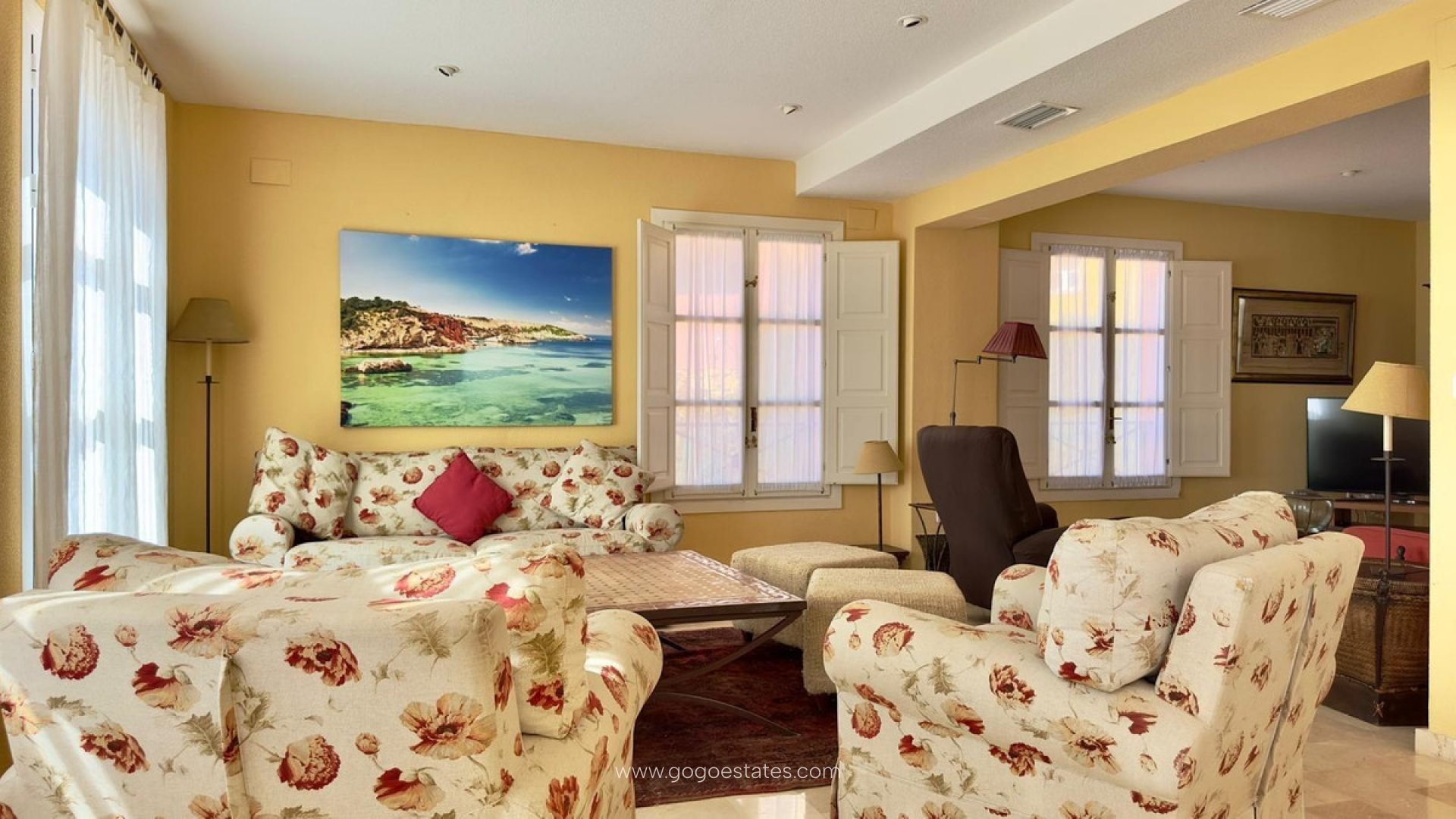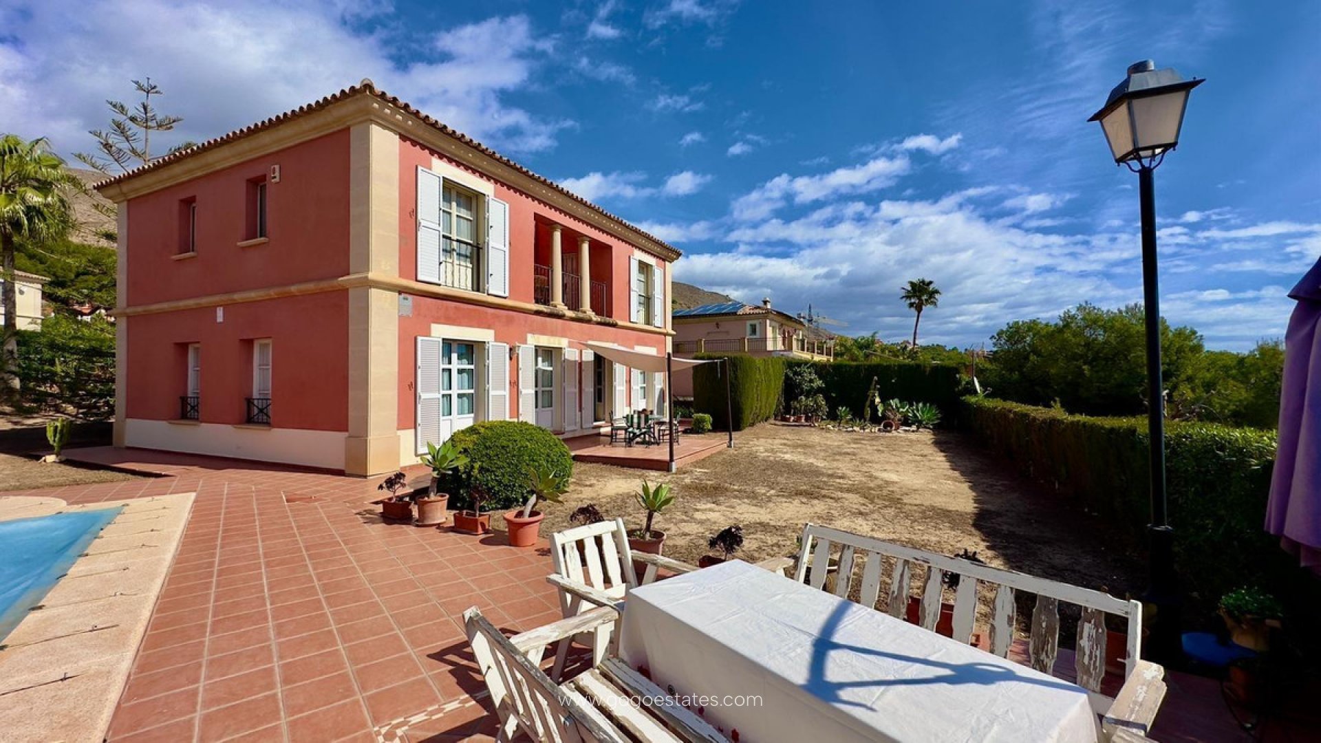 GREAT MEDITERRANEAN VILLA IN BAHIA FINESTRAT GOLF WITH VIEWS"Enjoy luxury and comfort in this spectacular 320m2 house, located in the prestigious area of Golf Bahía de Finestrat. Located on a 720m2 plot of land, this impressive two-story residence offers a perfect combination of elegance and functionality.On the ground floor, you will find a spacious living room with direct access to the garden, creating a bright and cozy atmosphere to enjoy with family and friends. The separate kitchen, also with access to the rear garden, has modern appliances and offers an ideal space for preparing delicious meals. In addition, on this floor there is a laundry room, a bathroom with shower and access to the garage for two cars.Going up the beautiful staircase to the second floor, you will find the four bedrooms, each with its own en-suite bathroom, offering privacy and comfort for all residents. Several terraces with views of the sea and the mountains complete this floor, providing spaces to relax and enjoy the impressive views that the surroundings offer.The house also has a large basement, ideal for use as a cellar, pantry or storage room, providing additional space for storage. The garden, with a large swimming pool, offers a perfect place to enjoy the Mediterranean climate and organize outdoor meetings.Additionally, the property is equipped with air conditioning to ensure comfort all year round. It is sold fully furnished and with appliances, ready for you to enjoy from day one.With its privileged location in the Bahía de Finestrat Golf area, this house is a unique opportunity for those looking for a luxury home in an exclusive and quiet environment."
