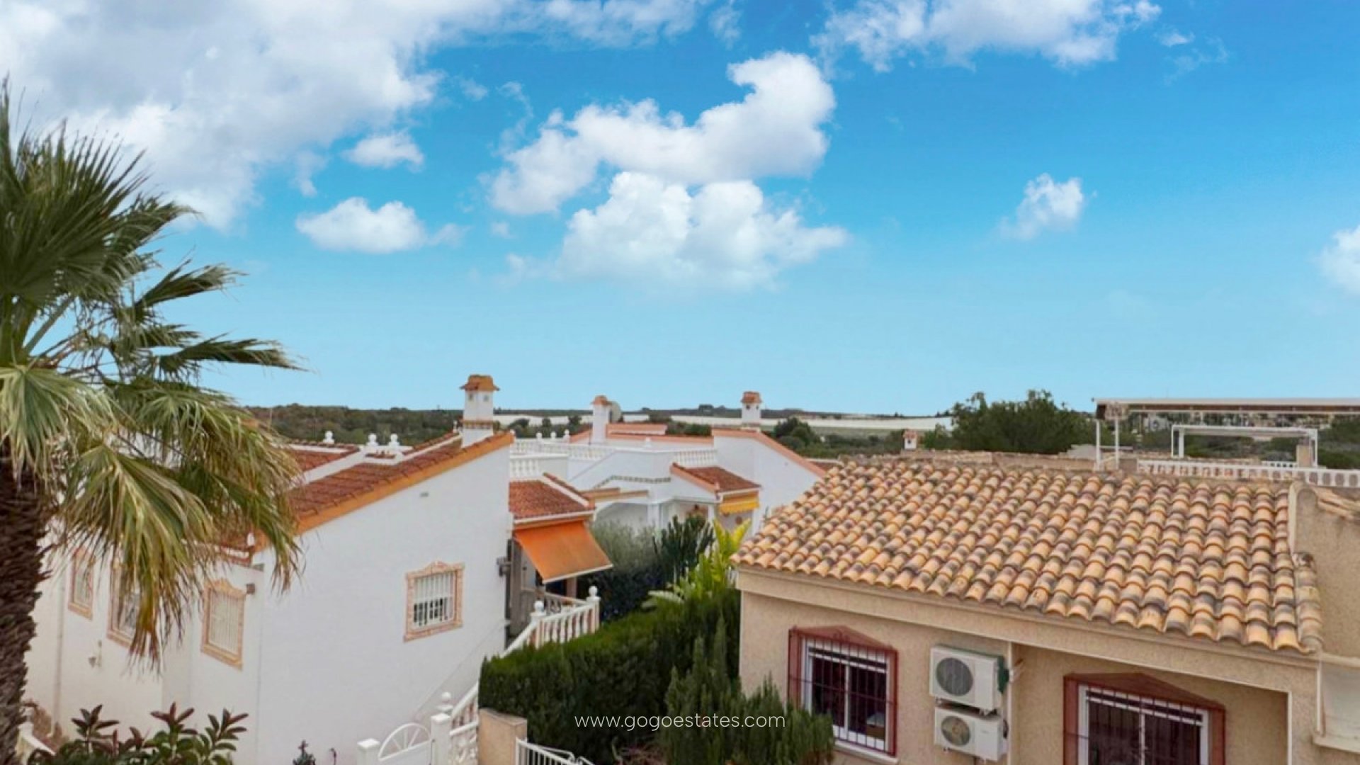 Located at the end of a cul de sac on the popular Montemar urbanisation in Algorfa is this three bedroom detached villa. At the front of the property is a large covered terrace with external stairs onto the roof solarium. This space has plenty of run to relax and entertain, and to take in the views. Internally you have a spacious living area to the front with fireplace in a corner. Separate kitchen off with utility area. There are two double bedrooms, both with fitted wardrobes along with a smaller bedroom, again with wardrobes. Finally a large family bathroom. Externally there are gardens all around the property along with access to an underbuild of approx 18 square metres, ideal for storage. The villa is part of a well-maintained community that offers a range of amenities, including a communal swimming pool and shared landscaped areas, perfect for leisure and socialising. This property is an excellent opportunity for those seeking a serene lifestyle in a welcoming neighbourhood.
