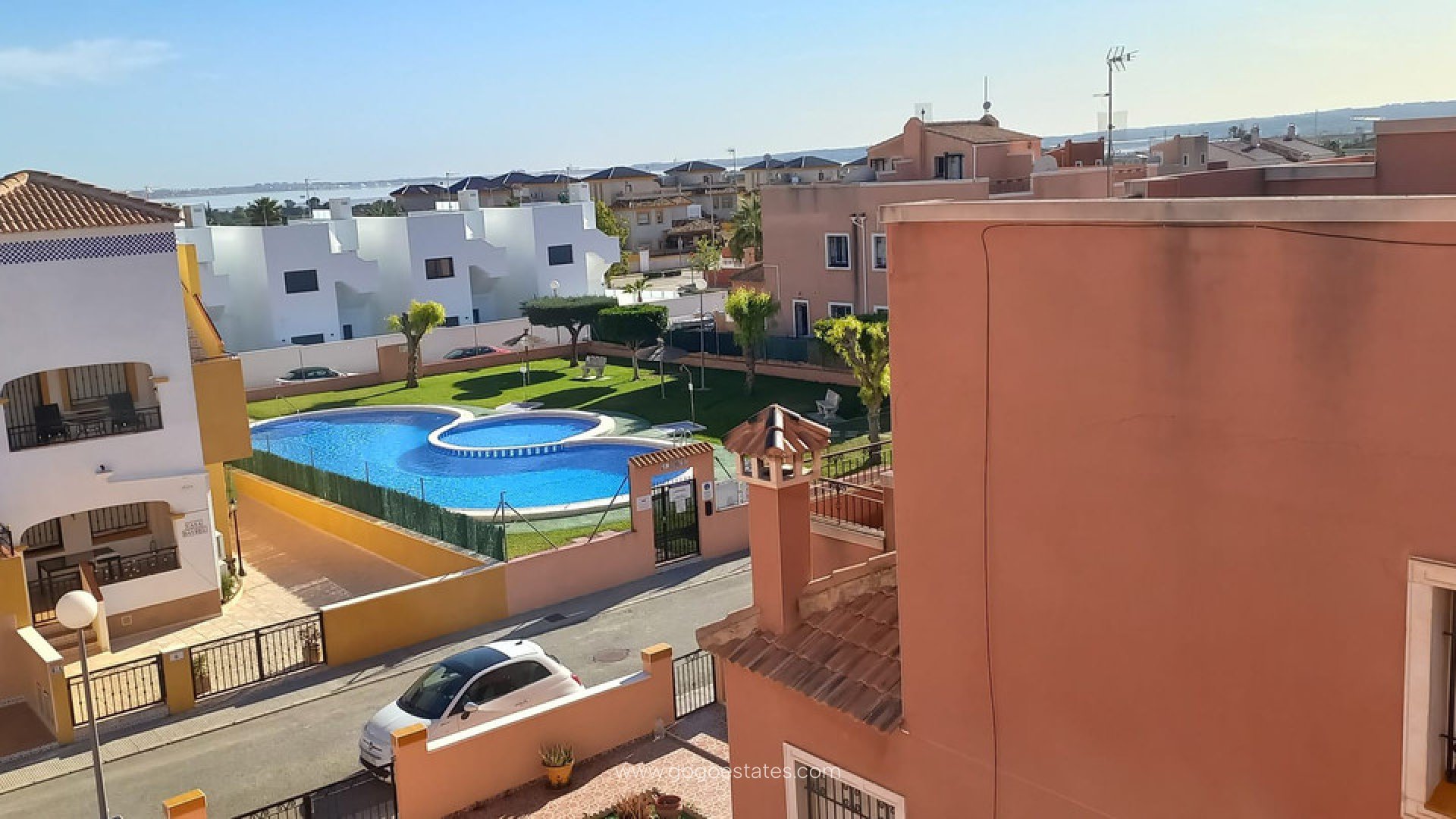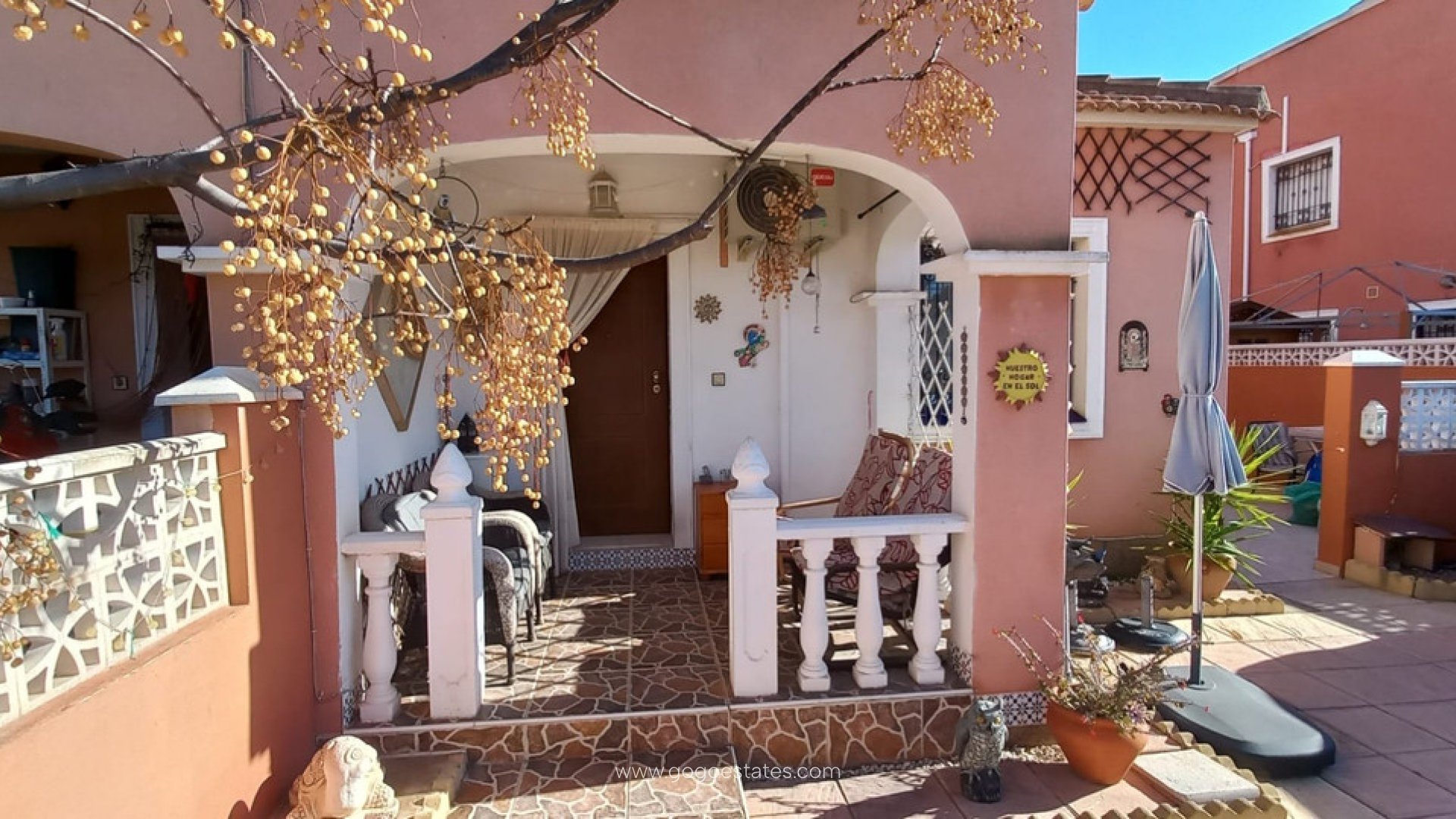 This three bed, two bath quad house is located on the popular La Herrada urbanisation close to Los Montesinos. This house has 88,49m2 built and a living area of 74,33m2. It is distributed in two floors: ground floor, with living-dining room, independent kitchen with access to the garden, one bedroom and a complete bathroom; first floor, with two bedrooms, terrace and complete bathroom. It is in good condition. The property has air conditioning, fitted kitchen with some electrical appliances, and fitted wardrobes in the bedrooms. From the solarium there is a beautiful view of the Natural Park of Las Lagunas de La Mata and Torrevieja. The exterior of this property also has parking space and access door for vehicles. This property is part of an urbanization with communal green areas and swimming pool open all year round. La Herrada also has its own supermarket, bars and restaurants. Only 1.5km away you will find Los Montesinos, where you will find all the main services and leisure facilities.