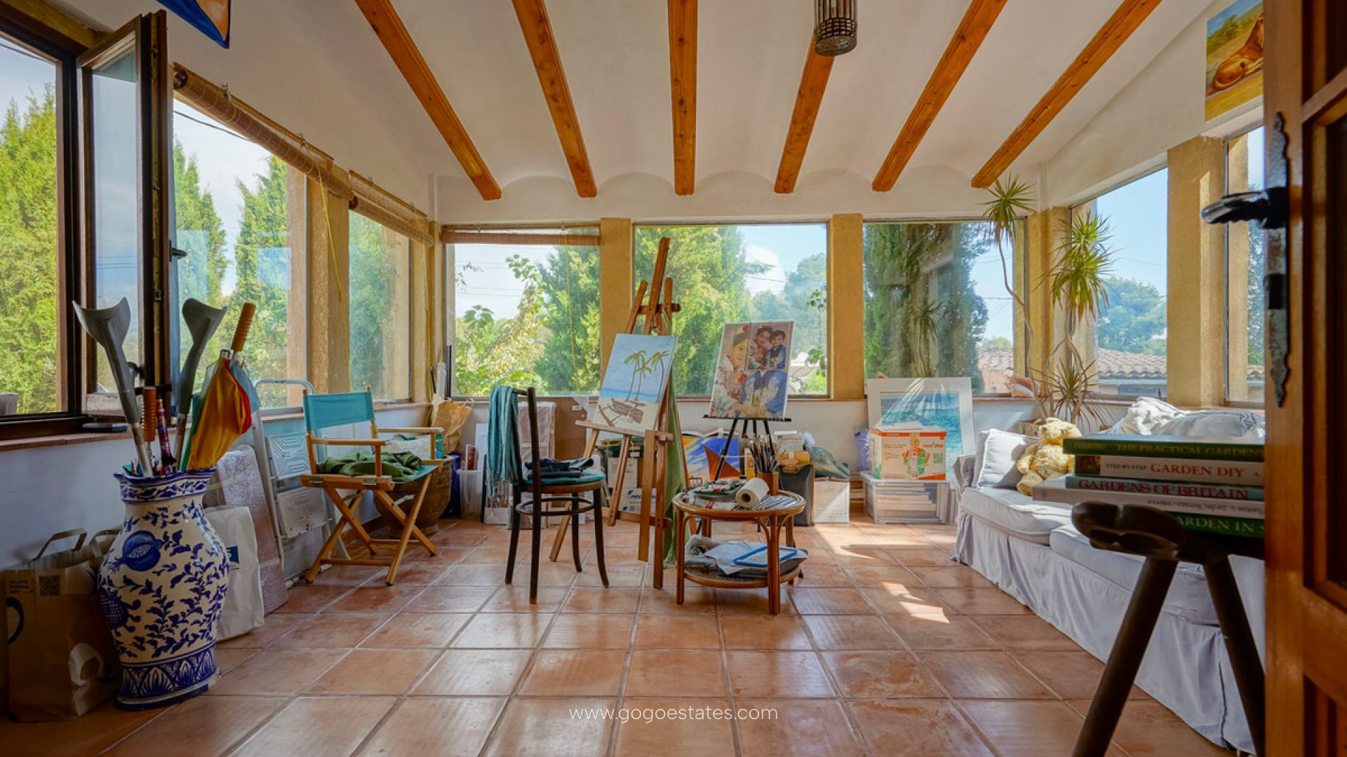 Traditional villa with Moroccan finishes located in the Montgó Natural Park. This villa is ideal for people who are looking for a quiet and peaceful environment, but still want to be a short distance from facilities. Due to its location in the Montgó Natural Park, you are in a very quiet area just a 5-minute drive from both Javea and Denia. The house consists of a lounge with large windows where you can enjoy the beautiful views of the Montgó, a living room with a fireplace, a dining room, a kitchen with a gas stove and an electric oven, a laundry room, two bedrooms, both with dressing rooms and mirrored wardrobes and a bathroom. The dining room gives access to a patio where there is a third bedroom. From the patio there is also a staircase that leads to the roof terrace. At the back of the villa is a guest apartment consisting of a living-dining room, a kitchen, a double bedroom and a bathroom. The apartment has a private entrance and private terrace, ideal for family or guests. There is also a garage with an adjacent workshop (which can be converted into a 5th bedroom) and a carport with space for two cars. On the east side of the villa is a 9x5 swimming pool with a surrounding terrace and a large covered dining area with seating for 10 around a Moroccan mosaic-tiled table. Gravel paths wind to the far corner of the plot where there is a fish pond and a bench. The villa has air conditioning in the master bedroom, gas heating, double glazing, an insulated roof, terracota floors, an electric gate and exterior lighting. Moreover, the entire plot is fenced. For hiking enthusiasts, hiking trails through the forest leave right from the villa leading to the nature reserve and to a viewpoint from where you can overlook the entire bay of Jávea. The entire plot is fenced and on the east side of the villa you look out onto a dense forest which guarantees complete privacy by the pool. A true paradise for nature lovers!