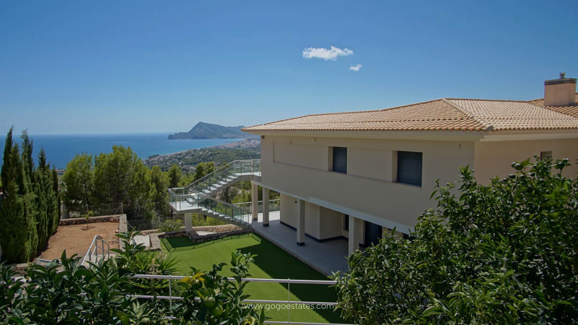 This beautiful breathtaking luxurious modern villa is located in the Sierra de Altea and stands out for the spacious feeling of the huge living space and the incredible views of the bay of Altea, Albir and Benidorm. The villa is built on a plot of 1680m2 of which 1120m2 is built with 680m2 usable and distributed over 2.5 floors. On the top floor there is an immense living space of 190m2 with an open kitchen of 80m2 giving a feeling of immense vastness, in addition a laundry room 16m2 and toilet. On the same floor there is also the master bedroom 32m2 with a walk-in closet of 12m2, an ensuite bathroom of 22m2 with bathtub and shower. The bedroom has direct access to the terrace of 240m2 where we find a space for the jacuzzi, the large outdoor pool of 10mx4m with breathtaking views and an outdoor kitchen 16m2 to enjoy the Mediterranean climate combined with total luxury! On the bottom floor we find a living room of 30m2, 4 double bedrooms and 2 bathrooms, a game room with table tennis, cinema, wine cellar, cold room and a very large garage for 5 large cars. Outside we have an artificial lawn, fruit trees, views, 4 parking spaces next to the entrance of the house. This immense villa has total privacy in an exclusive environment and at the same time close to the cozy town of Altea La Vella. At 5 minutes from the picturesque Altea. A 15-minute drive from ports, several golf courses, the beach and cozy bars and restaurants etc. ....