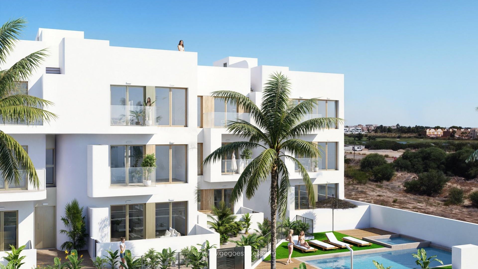 New Build Residential Complex in Los Alcázares on the Frontline of Serena Golf Exclusive Living on the Costa Cálida Discover this new residential development in Los Alcázares, perfectly located on the frontline of Serena Golf and just 1.3 km from the beaches of the Mar Menor. Nestled in the heart of the Costa Cálida, this project combines modern architecture, comfort, and exceptional surroundings. With excellent road connections, the complex is only 30 km from Murcia Airport (25 minutes) and 90 km from Alicante Airport (55 minutes), offering easy access to Cartagena, Murcia, and the Costa Blanca. Contemporary Homes with Exceptional Design The residential complex includes 18 elegant apartments and 7 exclusive villas, each designed to maximize space, light, and functionality. Residents will enjoy breathtaking views of the golf course and, from the upper floors, the sparkling waters of the Mar Menor. Choose from: Apartments with 2 or 3 bedrooms and 2 bathrooms, all with dual orientation and two terraces for all-day sunlight. Ground-floor apartments with private gardens. Middle-floor units with large terraces. Penthouses with two terraces, private solarium, and panoramic views. Detached villas on the frontline of golf, with 3 bedrooms, 2 bathrooms, basement, solarium, and private pool. Premium Features and Amenities Every home is equipped with high-quality finishes and modern comforts, including: Parking space and storage room Aerothermal hot water system Pre-installed ducted air conditioning Electric shutters and full lighting package Fully fitted bathrooms with furniture and shower screens Communal swimming pool and landscaped gardens Elevator in the apartment blocks Perfect Location for Golf and Beach Lovers Situated in a privileged enclave, the development is surrounded by the peaceful greenery of Serena Golf and lies just a short walk from the warm, shallow waters of the Mar Menor. This unique area offers year-round opportunities for swimming, sailing, paddleboarding, and other water sports, making it ideal for both relaxation and activity. Key distances: Beach (Mar Menor): 1.3 km Serena Golf: Adjacent to the complex Los Alcázares town center: 2 km Cartagena: 22 km Murcia city: 40 km Murcia Airport: 30 km (25 minutes) Alicante Airport: 90 km (55 minutes) Secure Your Mediterranean Lifestyle This development in Los Alcázares offers the perfect combination of beach, golf, and modern living. Whether as a permanent residence, holiday retreat, or investment, it provides everything needed for an authentic Mediterranean lifestyle. Contact us today to arrange a visit and secure your new home on the Costa Cálida.