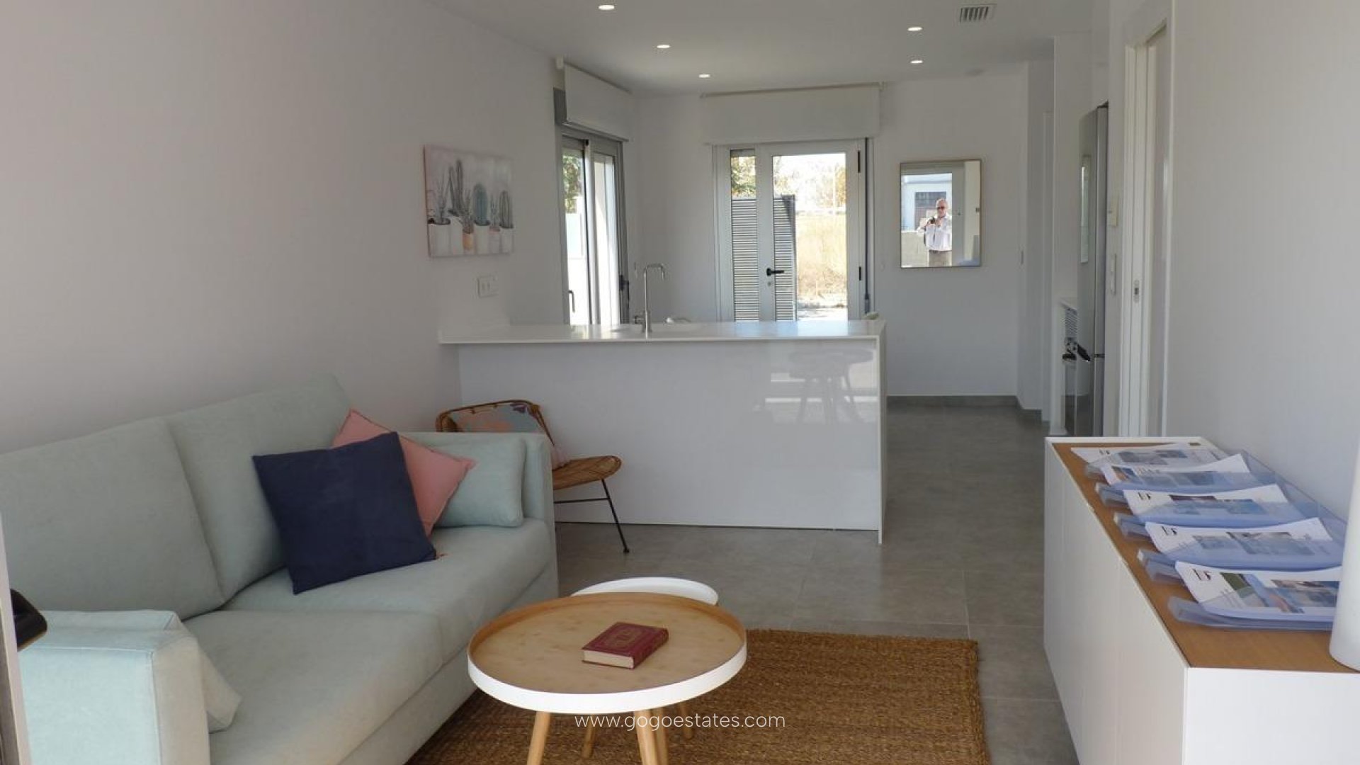NEW BUILD RESIDENTIAL OF BUNGALOW APARTMENTS IN PILAR DE LA HORADADA New Build residential of modern bungalow apartments in Pilar de la Horadada. New Build bungalows has 2 bedrooms, 2 bathrooms, open plan kitchen with spacious living room, fitted wardrobes, terrace. Ground floor bungalows with private garden and top floor bungalows with private solarium All properties have a private parking space and storage. Pilar de la Horadada is a typical Spanish village in the most southern part of the Costa Blanca. The large main street has supermarkets, lots of shops, restaurants and bars and some lovely squares. The beautiful beaches of Torre de la Horadada and Mil Palmeras with fine sand promenade is just 5 minutes away. The airports of Corvera (Murcia) and Alicante are respectively 40 and 55 minutes away