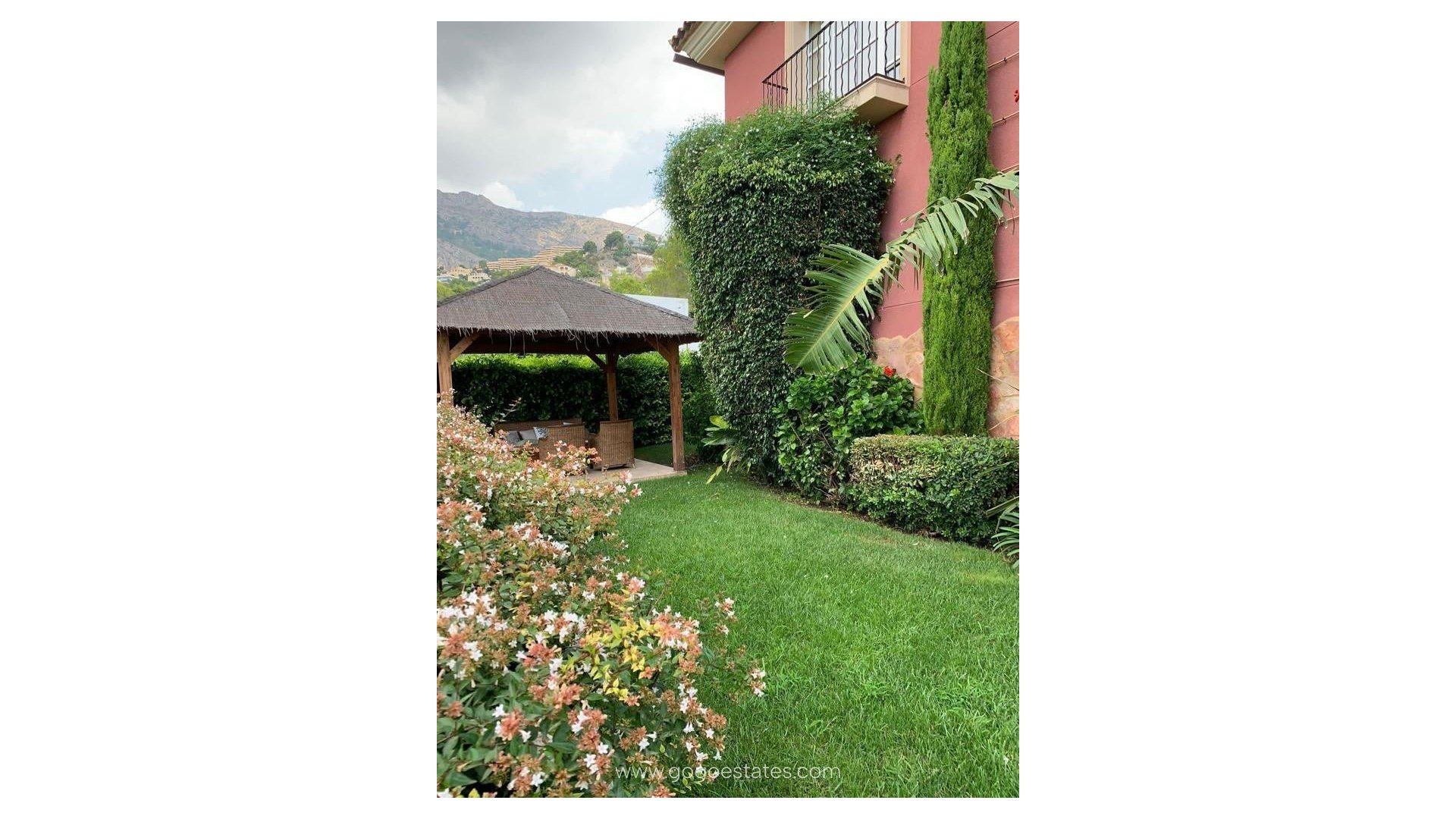 A Mediterranean villa located just a few minutes drive from the beach, supermarkets and restaurants. A very quiet urbanisation with sea views and surrounded by pine and palm forest.The villa is surrounded with a garden, has a salt water swimming pool, covered and uncovered terrace and parking for at least 4 cars.On the main floor there is a master bedroom with bathroom en suite, another bedroom with its own bathroom, a guest toilet, a living room of 50m2, a separate kitchen and a pantry. On the ground floor there is another bedroom, an independent bathroom, a dressing room, and a multifunctional room. The villa has air conditioning, central heating with radiators, underfloor heating and double glazed windows.