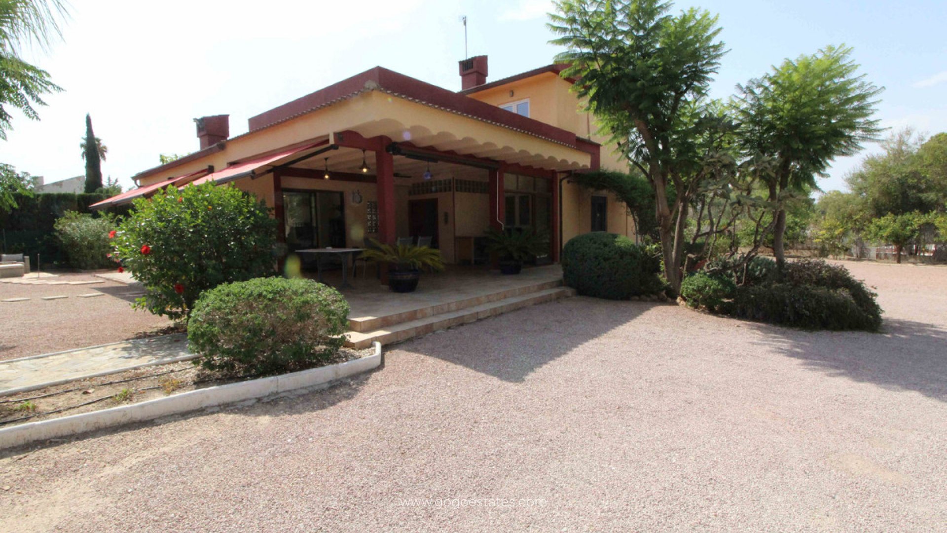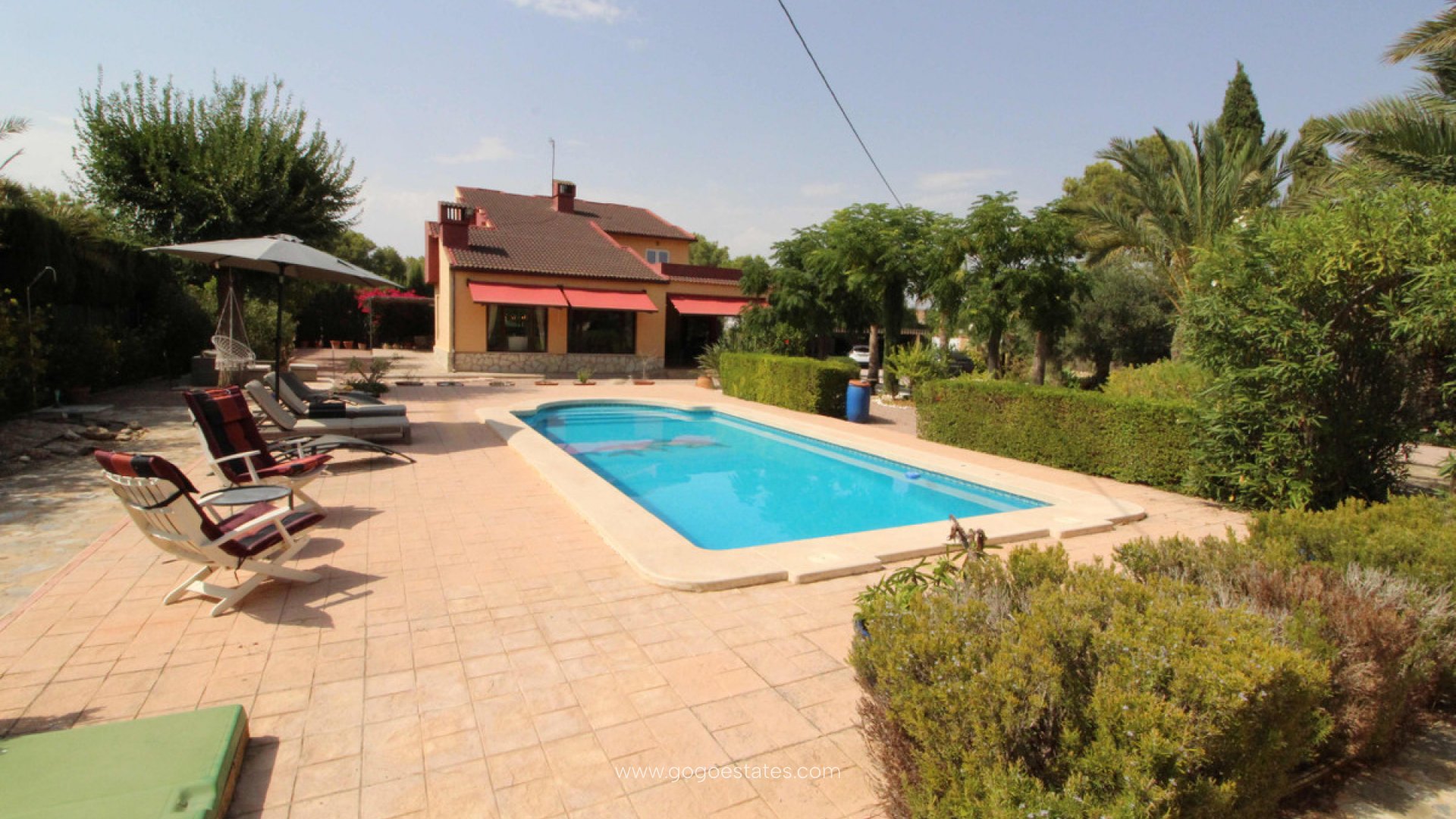 A great opportunity to live in a good-sized 6-bedroom 2-bathroom villa on a large plot of over 1800m2 and within a 12-minute drive (8km) to the beaches and port of Santa Pola. This property stands out for its large and well cared for garden with a number of fruit trees including oranges, lemons, figs, and pomegranates, private pool, 3 outbuildings including one next to the pool with a bathroom, car port, large terrace with BBQ and seating/dining area, ornate Moorish style fountain, seating areas, hammock and different varieties of palm trees and plants. The property itself is of fairly modern design with a good quality build and architectural design of a traditional Finca of the area. The interior has a contemporary layout which flows nicely from the entrance on the main terrace you walk into the lounge with log burner insert in the fireplace and air conditioning, enough comfortable seating for a large family and then further back closer to the kitchen is the dining area. The kitchen is separate and includes all appliances and a utility room with a door leading out to the terrace. On this floor down the hallway there are 2 double bedrooms and a bathroom with shower/tub. The stairs leading upstairs from the lounge lead to 4 more bedrooms including the master bedroom and another family bathroom with walk in shower. From the master there is access to a large solarium overlooking the garden. One of the bedrooms is set up as a small gym but can also be used as an office. All bedroom have AC units and built in wardrobes. The property comes fully furnished and has a number of extras such as electric shutters, double glazed windows, electric entrance gate for the driveway, intercom, pool and garden lighting, paella stove, storage shed and irrigation for the trees and plants. The location would suit anyone wanting space (build size and plots of this size are rare so close to the coast) and close proximity to the airport (15-minute drive), Alicante city (yacht club, fine dining, commercial shopping centres, Santa Barbara castle, museums, train station, bars and restaurants etc) 20-minute drive, Elche city 18-minute drive or the beach in 12 minutes. The N332 coastal road in 7 minutes or the A70 Motorway is 15 minutes. If you are also looking for golf Alenda is 15 minutes, or El Plantio Golf resort is a 20-minute drive. The area is quiet with neighbouring properties so if it is peace and tranquillity, you are after on a big mature plot with ample space and yet well connected this is the property for you.