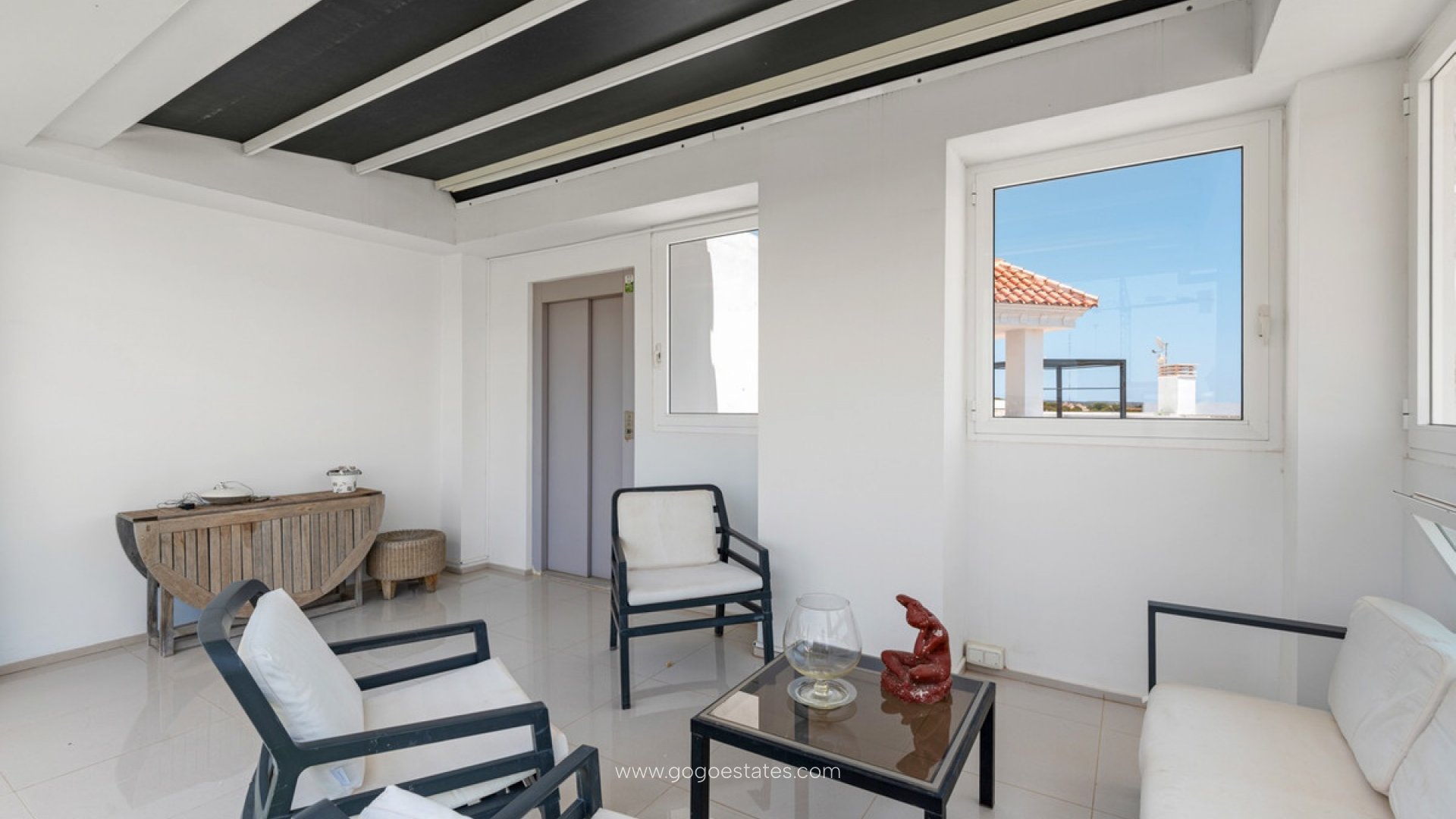 Located in one of the most exclusive developments in the area, this magnificent penthouse offers comfort, privacy, and top-quality finishes. The property features a private lift connecting both floors, ideal for people with reduced mobility. On the main floor, there is a spacious and bright living-dining room with access to a glazed terrace — perfect for enjoying year-round views of the communal pool or cozy meals in a warm atmosphere. The open-plan kitchen is fully equipped with high-end appliances, ideal for cooking lovers. It includes two comfortable bedrooms with built-in wardrobes and two modern bathrooms with walk-in showers, one of them en suite. The solarium, accessible via the private lift or an exterior staircase, offers a large space to relax and sunbathe, featuring a pergola with windows, a storage room, and stunning views of La Mata Natural Park. The residential complex, consisting of just 12 homes, offers a peaceful and secure environment with a communal pool, landscaped areas, and a parking space. It's conveniently surrounded by supermarkets, leisure zones, and close to the Consum shopping area in Ciudad Quesada. A unique opportunity to enjoy the Mediterranean sun in a privileged setting. Come and discover your new home!