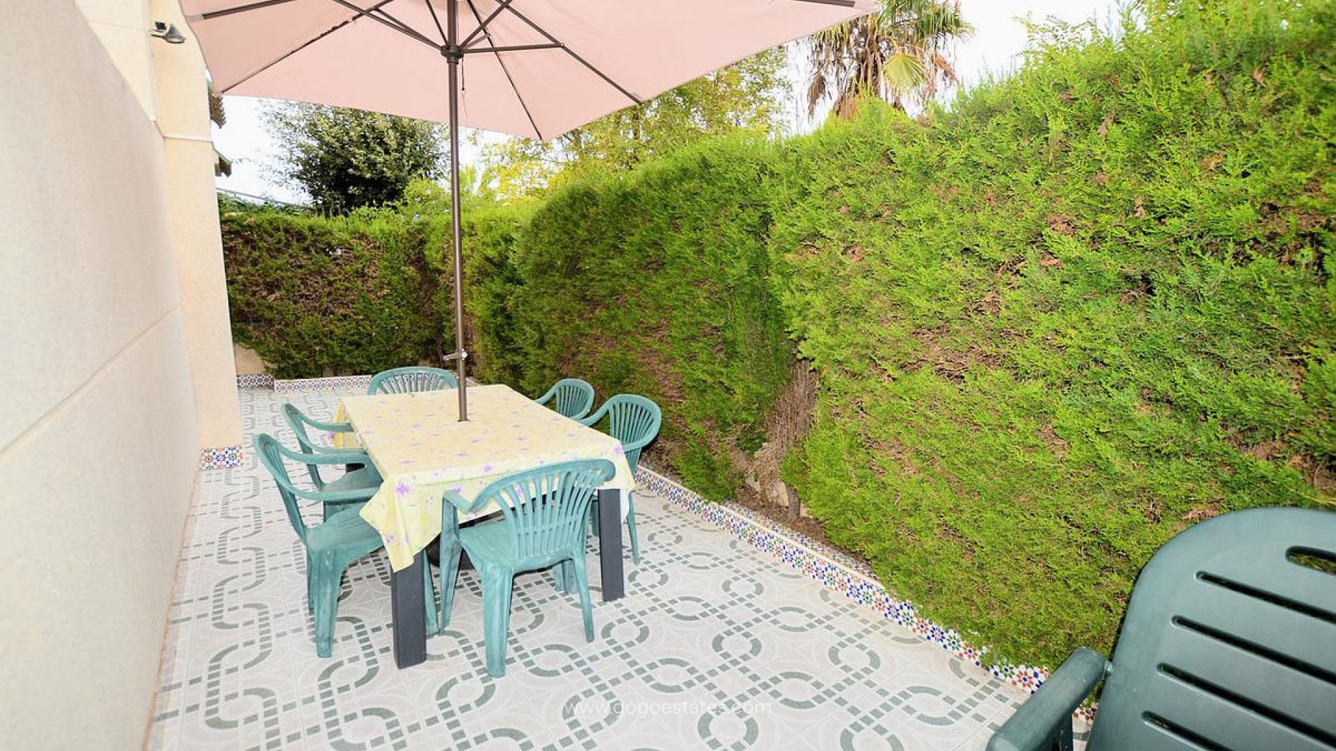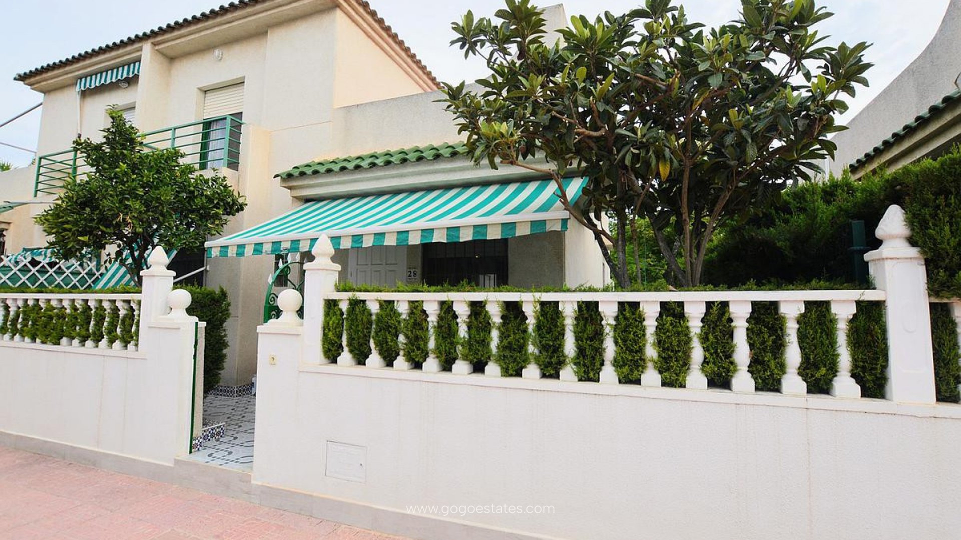 We present to you this Semi Detached Villa located within a gated community in Punta Prima. The property consists of 3 bedrooms, 1 bathroom, living/dining area and a fully fitted kitchen. The property benefits from terraced areas, roof solarium with views of the gardens, ceiling fans and offers a large communal swimming pool. Punta Prima is a Spanish seaside tourist resort located on the southern Costa Blanca within 30 minutes of two international airports, Murcia and Alicante. The beaches are some of the cleanest around and have been awarded the blue flag status. Punta Prima also has a Commercial Centre with a supermarket,and numerous restaurants of international cuisine. There are three golf courses in the area as well as water sports, fishing, sailing to be enjoyed. A visit to the local market to buy your fruits and vegetables, shoes, bags and clothes can be made on Saturdays at Playa Flamenca. For those more energetic you can reach Torrevieja by foot, a mere thirty minute stroll along the coast or there is an hourly bus service to take you there.