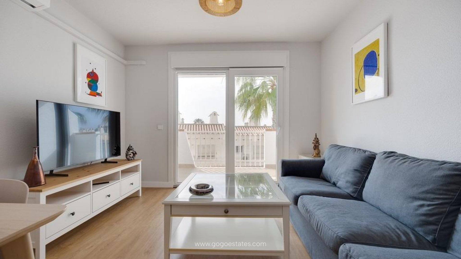 We present this modern, fully renovated apartment. Located in one of the most well-known residential areas of Dehesa de Campoamor, in the Aguamarina area, just 300 meters from the beach. Very bright, the apartment consists of two bedrooms, one bathroom, a separate kitchen, and a large terrace overlooking the green areas of the complex. Ideal for enjoying a vacation or living year-round.~Fully furnished, with brand new furniture. The separate kitchen has new appliances. It has air conditioning in all rooms and parquet floors, providing warmth and comfort year-round.~The south-facing terrace is perfect for watching the sunrise over the sea or relaxing in the afternoon with the sea breeze.~Located in a quiet and exclusive area, surrounded by nature and Mediterranean vegetation, with all services within walking distance: cafes, restaurants, supermarkets, shops, and a modern marina, providing comfort and quality of life.~
