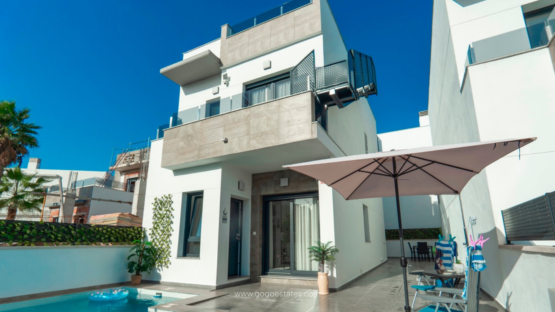 NEW - built 2025 - detached Villa with Private Pool and Solarium with Salt Lake Views in La Florida, Torrevieja FANTASTIC OPPORTUNITY TO GET A GREAT DEAL AS THIS SAME PROPERTY (WITH NO EXTRAS) IS AVAILABLE DIRECT FROM THE BUILDER FOR SIGNIFICANTLY MORE MONEY. Only purchased from new by the current owners in March 2025. This elegant home pairs contemporary design with effortless outdoor living — private pool, generous terraces and a 45.7 m² solarium with stunning salt lake views — all within easy reach of shops, beaches and local amenities. Ideal as a permanent home, holiday retreat or investment. Key Features Furnished3 Double Bedrooms | 3 BathroomsPrivate Pool, Outdoor Shower and Multiple TerracesSolarium 45.7 m² with Salt Lake and Partial Mountain ViewsModern Open-Plan Kitchen and Living Room with Pool AccessOff-Road Parking, Pedestrian Gate and Car GateMaster and Second Bedroom with Ensuites and Built-In WardrobesModern Glass-Balustrade Staircase and Steel Pergola on Solarium Property Description Immaculate detached villa in La Florida, Torrevieja. Designed for indoor-outdoor enjoyment, the bright open-plan living area flows through patio doors directly to the pool terrace, creating a seamless connection between the lounge and sun-soaked outdoor spaces. The modern kitchen complements the social layout and provides everything you need for relaxed daily living or entertaining. On the ground floor you will find a double bedroom and a stylish family bathroom with walk-in shower — perfect for guests or ground-floor sleeping. A striking staircase with glass balustrades leads to the upper level where two large double bedrooms await. The master bedroom (12.4 m²) features two built-in wardrobes, patio doors to a private terrace and a luxurious ensuite with a multi-jet shower. The second double bedroom (12.5 m²) also benefits from built-in wardrobes, a sleek ensuite and its own private terrace. From the upstairs terrace a separate stairway takes you to the villa's showpiece: a 45.7 m² solarium with a modern steel pergola and commanding views over the Torrevieja salt lakes and surrounding hills. Whether you want a peaceful spot for sunset drinks, an alfresco dining area, or a shaded rooftop lounge, the solarium offers exceptional flexibility and panoramic appeal. Location & Lifestyle Situated in the popular residential area of La Florida, this villa offers an enviable blend of tranquillity and convenience. You are minutes from local shops, cafés and supermarkets, with easy access to the popular Zenia Boulevard shopping centre and the beaches of Orihuela Costa. Torrevieja's amenities, including restaurants, health centres and leisure facilities, are within a short drive while Alicante and Murcia airports are reachable in around 30–45 minutes. The nearby salt lakes and coastal trails provide superb outdoor options for walking and cycling, making this an excellent location for families, sunseekers and investors alike. Additional Details Integrated air conditioning and electric shutters throughoutModern construction with contemporary finishesModern build completed March 2025Energy efficient appliances and low maintenance exteriorEnergy performance B Your next step Arrange your private viewing today. This detached villa with private pool and sensational solarium views will not remain available for long.