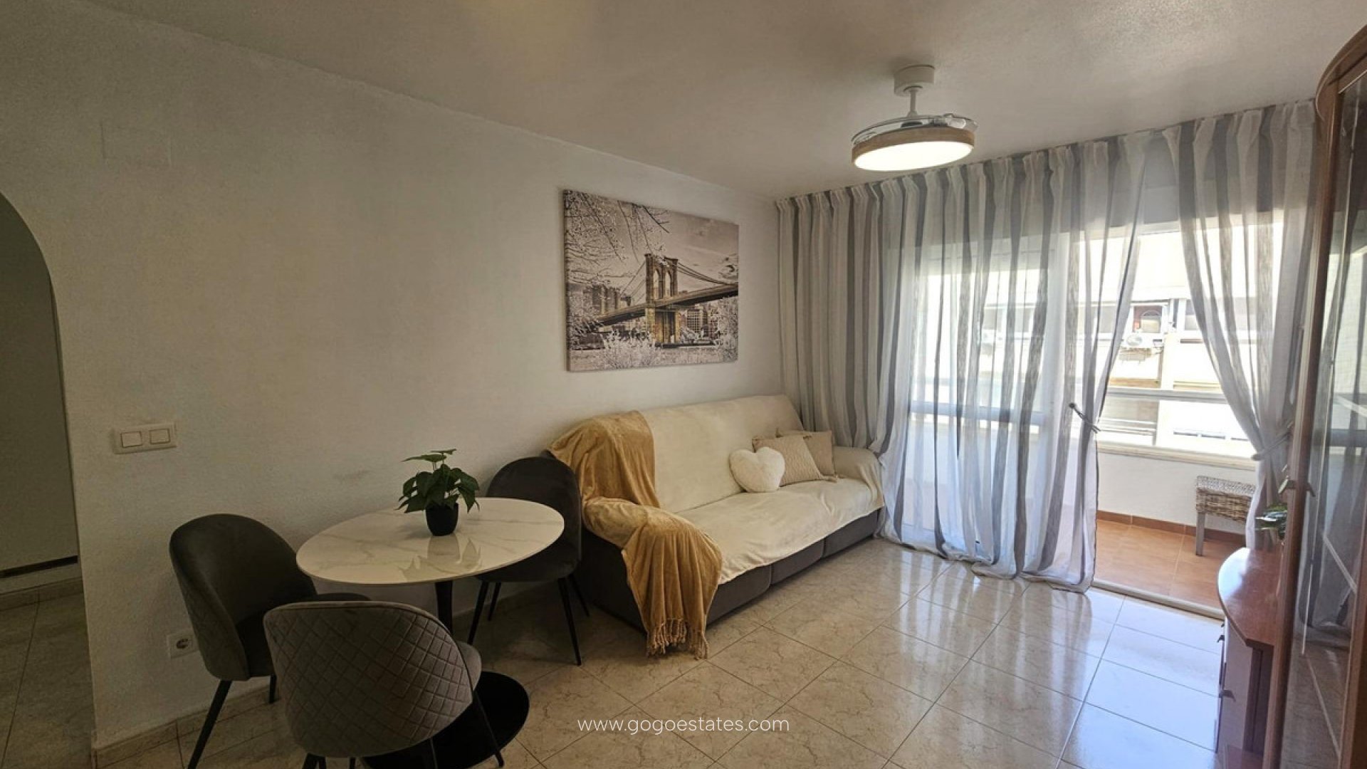 Refurbished one-bedroom flat with sea views in Torrevieja This bright one-bedroom flat is located on the fourth floor of a well-maintained gated community. It has been completely renovated and is ready to move into. Its modern and functional design makes the most of every corner, creating a cosy atmosphere that invites you to relax and enjoy yourself. The property has a large terrace offering wonderful sea views, the perfect place to have breakfast in the sun or relax at the end of the day with the sea breeze. The residential complex offers all the amenities: communal swimming pool, landscaped areas where you can enjoy the outdoors, and a playground ideal for families. In addition, the flat includes a parking space in the price, an added value that guarantees comfort and security. LOCATION: Aguas Nuevas is a quiet neighbourhood, located in the north of Torrevieja, very sought after for its proximity to numerous shops and restaurants, while remaining very close to the different beaches and main roads. There are shopping centres such as the Parquemar shopping centre (1 km away), the Habaneras shopping centre (3 km away) and the La Zenia Boulevard (11 km away) and health centres such as the La Mata health centre (1 km away) or Torrevieja I La Loma (3 km away). The nearest hospital is Quirónsalud Torrevieja (1 km away) and in a few minutes you will find the University Hospital of Torrevieja. It is also close to airports such as Alicante Airport (35 km) and the International Airport of the Region of Murcia (43 km). DISTANCE TO THE SEA: 1000m Should you have any question do not hesitate to contact us!