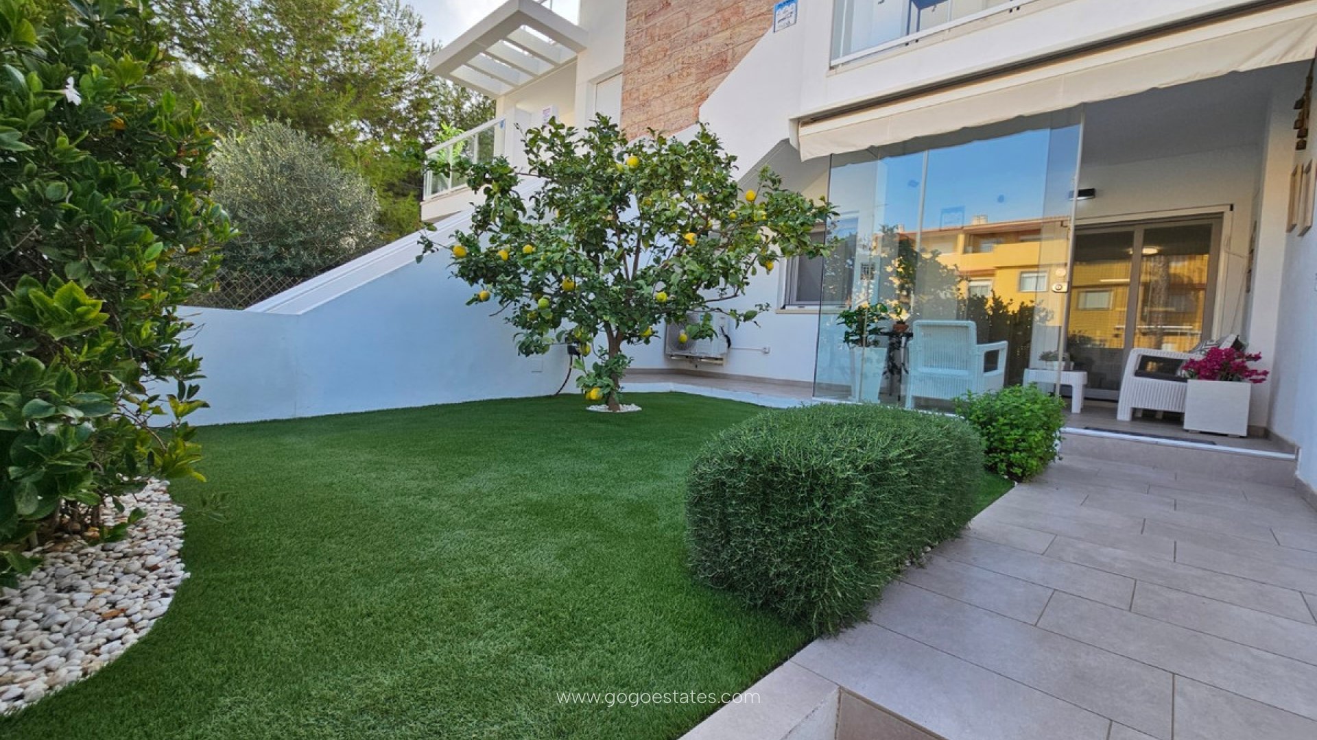 IMMACULATE 2 BED 2 BATH GROUND FLOOR BUNGALOWProud to present to you a truly immaculate ground floor bungalow located in San Pedro del Pinatar, Murcia. As the current owners travelled a lot it was barely used and therefor it looks as good as new. Sold with high quality furniture and top brand appliances.The front garden of 30M² features artificial grass, fruit trees, plants and automatic irrigation system. The 10M² terrace has been completely glazed in extending the living area creating a pleasant environment to enjoy outside dinner or morning coffee. The terrace also feature a sun awning.Inside the property you are welcomed in a cosy lounge/dining room with sliding doors that boast a lot of natural light. The U shaped kitchen is fully fitted and includes high end appliances and drinkwater filter system. From the kitchen you have access to the back patio which has been converted in a covered chill out zone. Here you can also find the laundry zone and aerotermic heater.The master bedroom includes a fitted wardrobe and en-suite bathroom and comprises an electric lifted bed with remote control and flat screen tv. The second bedroom is currently used as tv room and comes with a sofa-bed for visitors and build-in closet. From the hallway you have access to the second bathroom. Electric heating has been added to both bathrooms as well as an electric vaporizing system.The central airconditioning and electric blinds can be controlled with an app or remote controls to adapt the temperature to your personal likesUnderground carpark and storage unit are included in the price. The community pool is just around the corner. The property is close to all sort of amenities such as bars, restaurants, supermarkets, town square, pharmacy, international schools, skatepark etc. The lovely beaches and boulevards of the Mar Menor are only 2 km away, whereas the Mediterranean can be reached in less then 10 minutes by car. The natural Salinas de San Pedro with the lovely flamencos, the mud baths and the port are the same distance, making this property the perfect home base for both permanent living and as a holiday home. Murcia airport can be reached in 35 minutes and Alicante airport in about 55 minutes by car.The property is sold fully furnished, ready to move in!