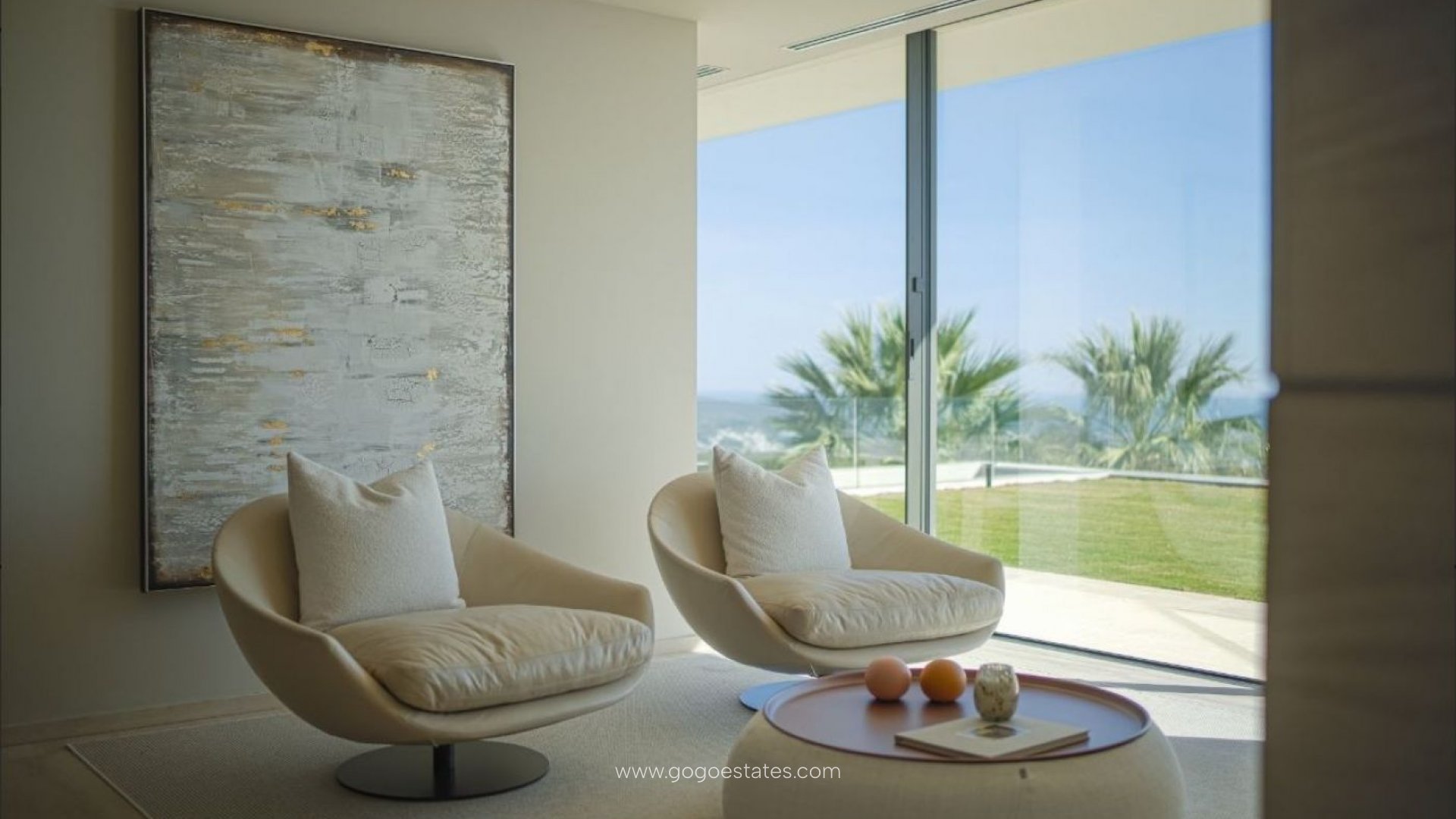 Welcome to a light and pure look villa in La Reserva, inspired by the vibrant mediterranean nature that surrounds us and designed to meet all your hopes and dreams for life. With excellent craftsmanship, durable materials and tailor-made design.rnrnA masterpiece by Manuel Ruiz Moriche, the architect who has won the hearts of international clients.rnrnThis villa has the best panoramic views of Sotogrande, Gibraltar, Africa and the Mediterranean Sea. A villa designed to be enjoyed at any time of the year. With natural materials of the highest standard, modern sophistication makes its appearance in every corner of the Villa.rnrnWith an area of 1.400 SQM which is expandable, it is the only property available with a view in La Reserva de Sotogrande. The living landscape interacts dynamically with the structures in the garden, nature leads the way, suggesting movement and growth, and constantly redesigning the constantly redesigning the exterior space as new plants appear.rnThe native species of southern Andalusia are the perfect way to let nature express itself. Olive trees, cypress, cork oak, lavender, rosemary and mastic all help this happen.rnrnSustainability, design, quality, nature, light and views come together to create an experience at the highest level.~