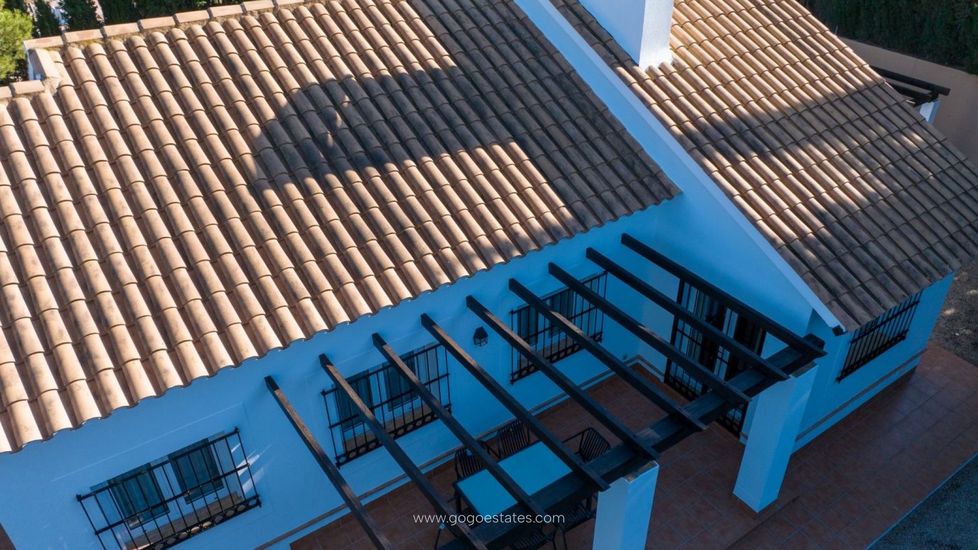 Fantastic! 3-bed 2-bathroom Chalet Linum 3E, with a traditional Mediterranean style architecture, this model includes a large living room, a spacious porch, a rooftop terrace, as well as a terrace and a lateral pergola.~Los Altos de las Palas is a development that features interior doors with rustic Spanish style panelled pine wood, 35mm thick, and traditional black iron handles. ~Built-in wardrobe fronts also use rustic style pine wood hinged doors, with a wooden shelf for suitcases and clothes hanging rail. Decorative wooden beams can be found in the porches and living rooms, depending on the dwelling type.~The exterior façade enclosures of the buildings feature thermos clay block construction that is 29cm thick, finished with single-layer mortar in various colours. The interior partition walls have hollow brick construction. The exterior surfaces are rendered with single-layer mortar with a rough finish, while the interior surfaces are finished with scratch finish gypsum plaster. False ceilings in the bathrooms and toilets are finished with plaster panels.~The sloping roofs of the buildings are covered with curved aged tiles, with thermal insulation on the roof slab, except on porches. Flat roofs are covered with curved aged tiles, also with thermal insulation on the roof slab, except on porches. Flat roofs and terraces are waterproofed and finished with anti-slip floor tiling.~The interior flooring of the buildings is finished with natural earthward clay imitation tiles measuring 31x31cm, with a skirting on the same material. Exterior flooring, such as pavements, porches, clothes drying areas, and solarium, are finished with anti-slip earthenware tiles measuring 31x31cm and have a skirting of the same material.~Bathrooms are tiled with ceramic tiles up to a maximum height of 1.30m and are finished with decorative border tiles. The baths and showers are tiled up to the ceiling, and a marble finish separating partition is fitted between the shower and toilet. Kitchens are also tiled with ceramic tiles up to the ceiling.~The entrance door of each dwelling features rustic style panelled pine wood with a traditional black iron handle and security lock. Outdoor joinery uses white lacquered aluminium profiles, either hinged or sliding, depending on the plan. Double glazing with a 4+6+4 separation is used, while roller blinds are installed on doors and aluminium windows, except in bathrooms.~Kitchens in each dwelling will be fitted with cupboards, granite worktop, electrical appliances, and sink. The white WC elements in vitrified porcelain come with chromed single tap fittings. Hot water with an electrical heater-accumulator, 150l, is also provided. The shower comes with inside shower-tray formation finished with gresite.~Each dwelling is equipped with an electrical installation with a high-level protection panel, switches, light connection points, and socket outlets in all rooms. Pre-installation of ducted air conditioning systems is included. Telephone sockets are located in the living room-kitchen and bedrooms of each dwelling in compliance with the regulations. The entrance intercom is also provided.~Infrastructure provision is included for all types of cable signals. A terrestrial radio/television connection is installed in the kitchen-living room and bedrooms of each dwelling, following regulations. Private parking areas are included inside the plot, while public parking spaces are available on the streets of the housing development.~Private gardens feature a soil filter and gravel covering, one palm tree, two pine trees, two trees, and two plant holders. Semi-detached houses come with a community pool, green areas, flowers, Mediterranean bushes, and a variety of trees, as well as showers and changing rooms. Flat roofs and terraces are waterproofed and finished with anti-slip floor tiling.~Call us for a visit!!!~*This property is sold unfurnished~Build Size: 217m2~Price: €236,000~