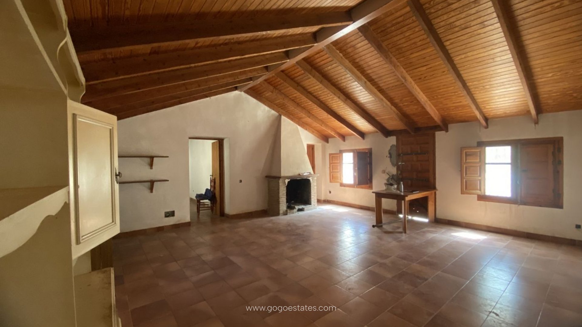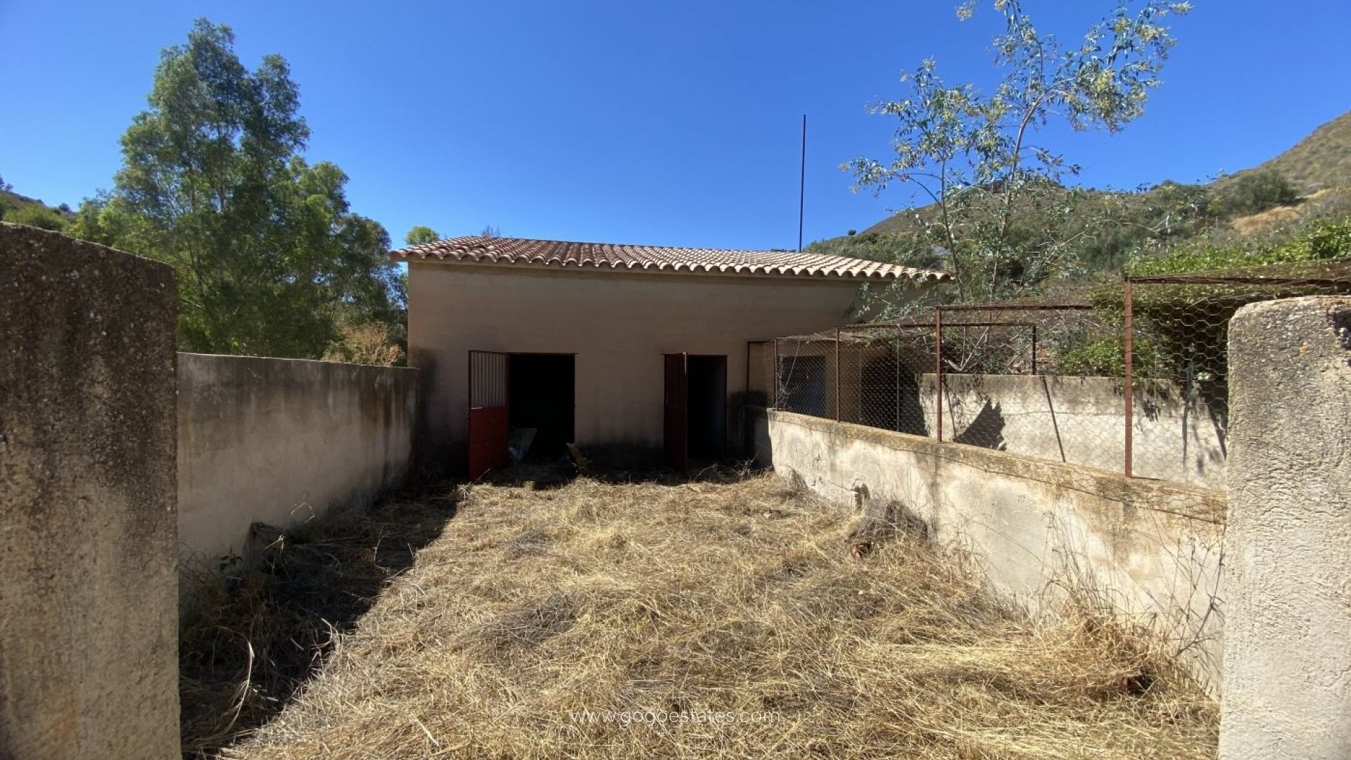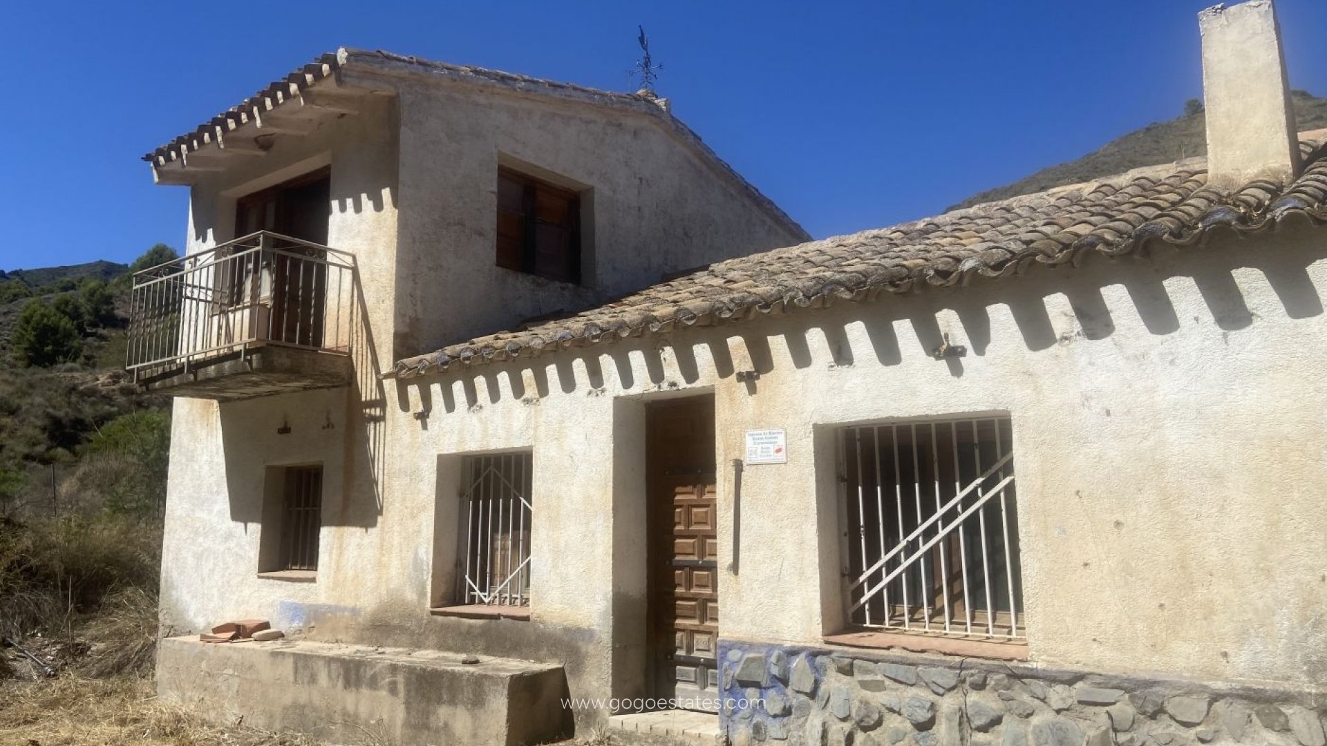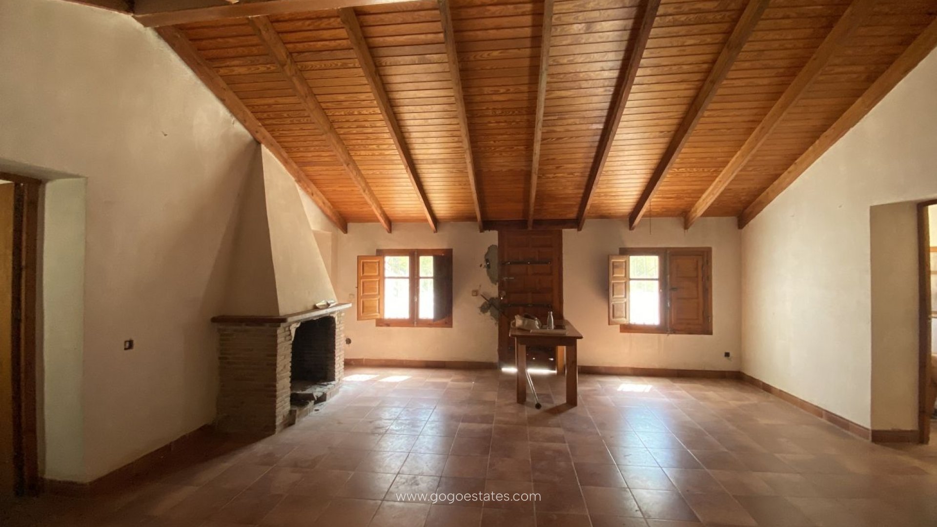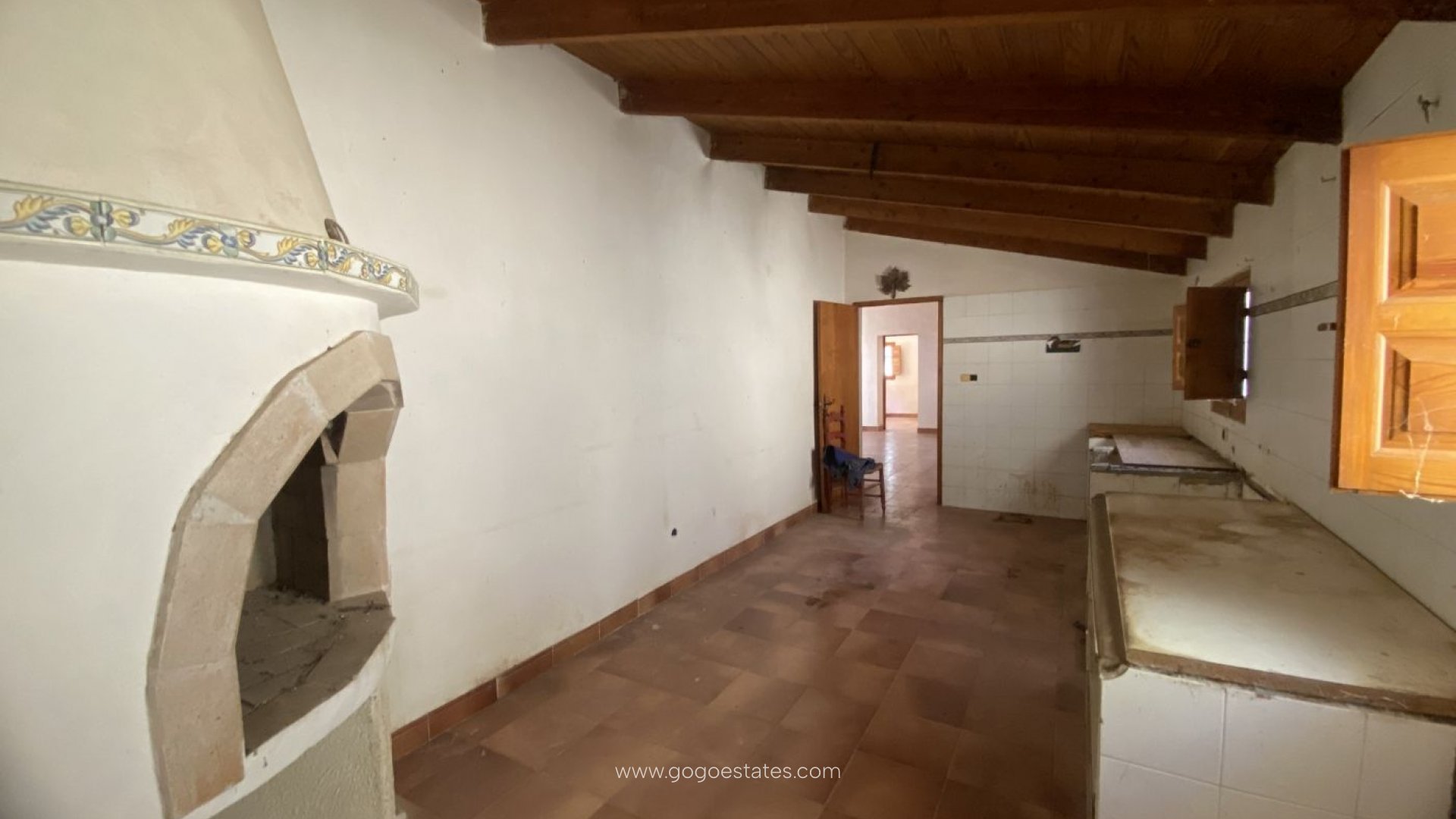 Peaceful rustic finca with a large country house with multiple options when renovated.~~The plot is over 8000m2 and the house is almost 300m2~~There is room for up to 5-6 bedrooms, large living and dining room with fireplace,~an spacious lovely kitchen with a traditional firewood oven also used as a fireplace, garage, barns and stable.~~Lovely views of the area surrounded by mature trees from the local flora.~~It is located in the countryside, close to the road from Morata to Lorca within 5 minutes driving of the nearest village. Twenty minutes driving from the lovely beaches of Bolnuevo, Percheles and Puntas de Calnegre.~~Ideal for country and farm living lovers.~