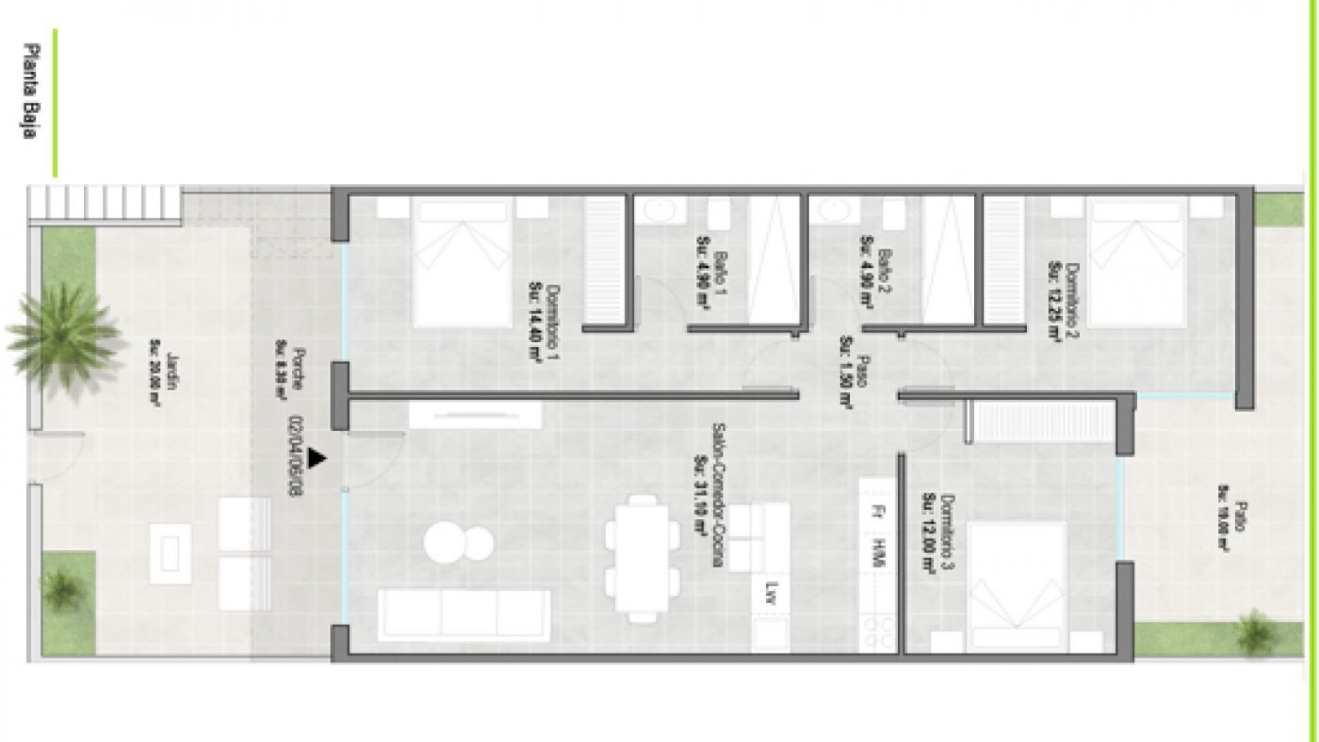 The bungalows are built with the highest qualities, have a community pool, terrace with Summer kitchen and parking space. ~~These stunning bungalows in Murcia offer luxurious living immersed by nature.~~Ground floor bungalows have 90m2 of built surface, they also enjoy both a patio and private garden with up to 20m2 each.~~Enjoy breathtaking views from the beautifully designed homes, relax by the pool, and explore local attractions. With its lush surroundings and modern amenities this site offers you the opportunity of experiencing a luxury Mediterranean style of life.~~Enjoy an exclusive, world-class Signature Golf Club, just minutes from the Sierra de Espuña mountain range and its hiking and biking trails, and very close to the best beaches in Mazarrón.~~Residents can move around completely independently, whether during the day or in the quiet of the night, allowing them to fully enjoy their home and community. Thanks to the proximity of quality schools and medical services, parents can be confident that their children can grow and explore their surroundings without restrictions in a healthy and safe environment. ~~Our food court and shops. From cafes to restaurants, our food court offers a wide range of options for all tastes and occasions.~