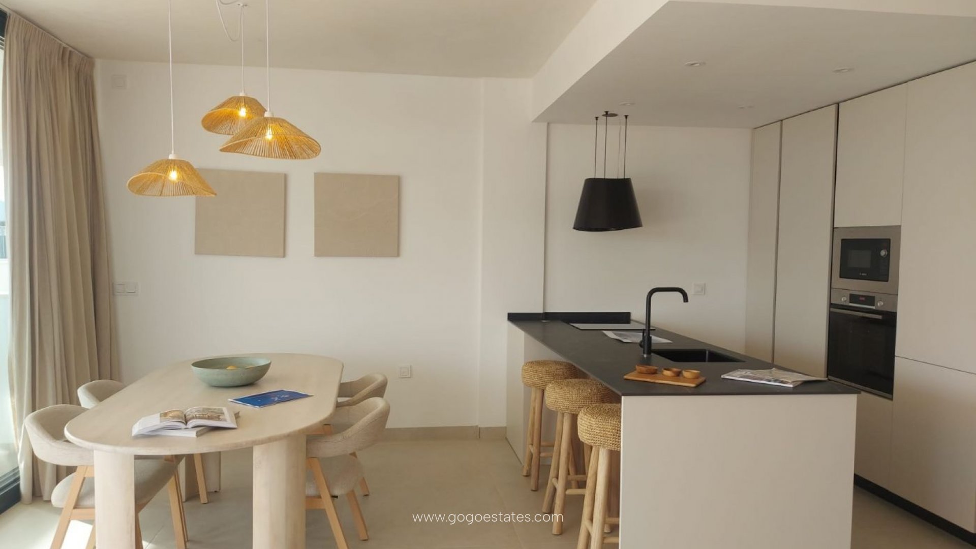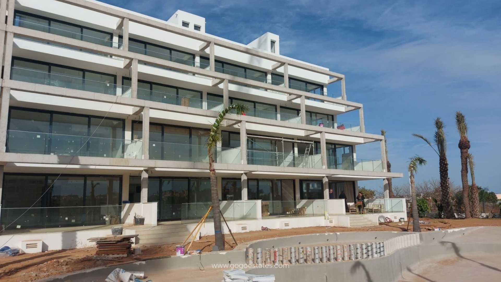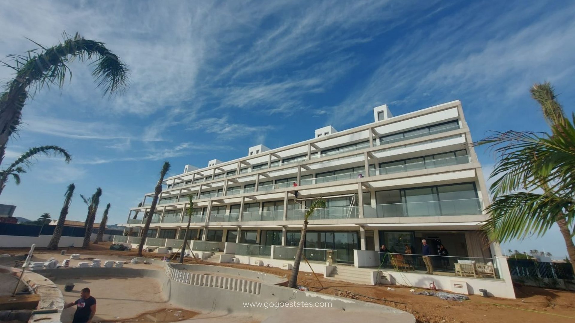 Modern style apartments with 2 or 3 bedrooms and 2 bathrooms beautifully located 500 meters from the beaches of Mar De Cristal. They all have a living room with a modern open kitchen and very large sliding windows that give access to the front terrace. It is located above the pool and from the terrace you have beautiful mountain views. The penthouses have fantastic sea views. The price includes an underground parking space and a storage room.~~In front of the luxurious building there is a communal garden with lawn for sunbathing and a large swimming pool.~The luxury apartments are a short walk from the beaches of Mar De Cristal in a quiet area but close to everything you need for a good vacation or to live there permanently. The beautiful and idyllic fishing village of Cabo de Palos, as well as Los Belones with its many restaurants, are less than 5 minutes away by car. La Manga, with 36 km of beaches, is also a 5-minute drive away. Cartagena's main shopping center is 10 minutes away by car. The city of Cartagena, with its many shops, is a 15-minute drive away. The city of Murcia 30 minutes away.~~Murcia Corvera airport is just 25 minutes away and Alicante airport is 60 minutes away by car.~~Apartments with fantastic views and beautiful nature around.~~2 BEDROOMS 2 BATHROOMS FIRST FLOOR APARTMENTS FROM €245.000rnrn3 BEDROOMS 2 BATHROOMS APARTMENTS FROM €325.000~