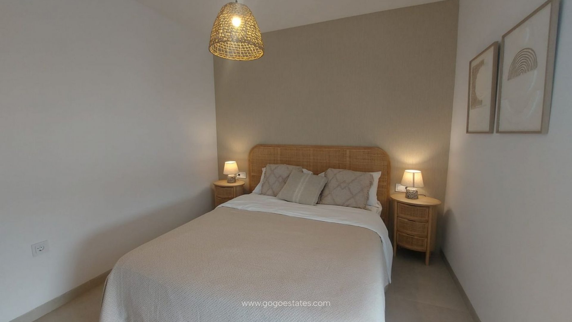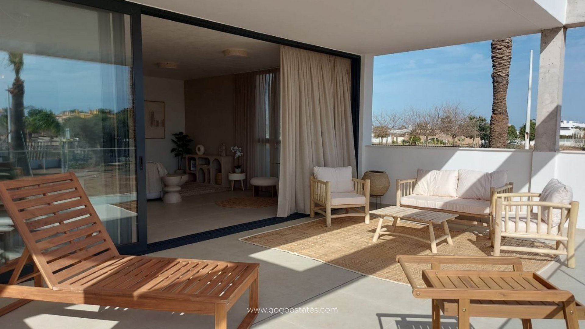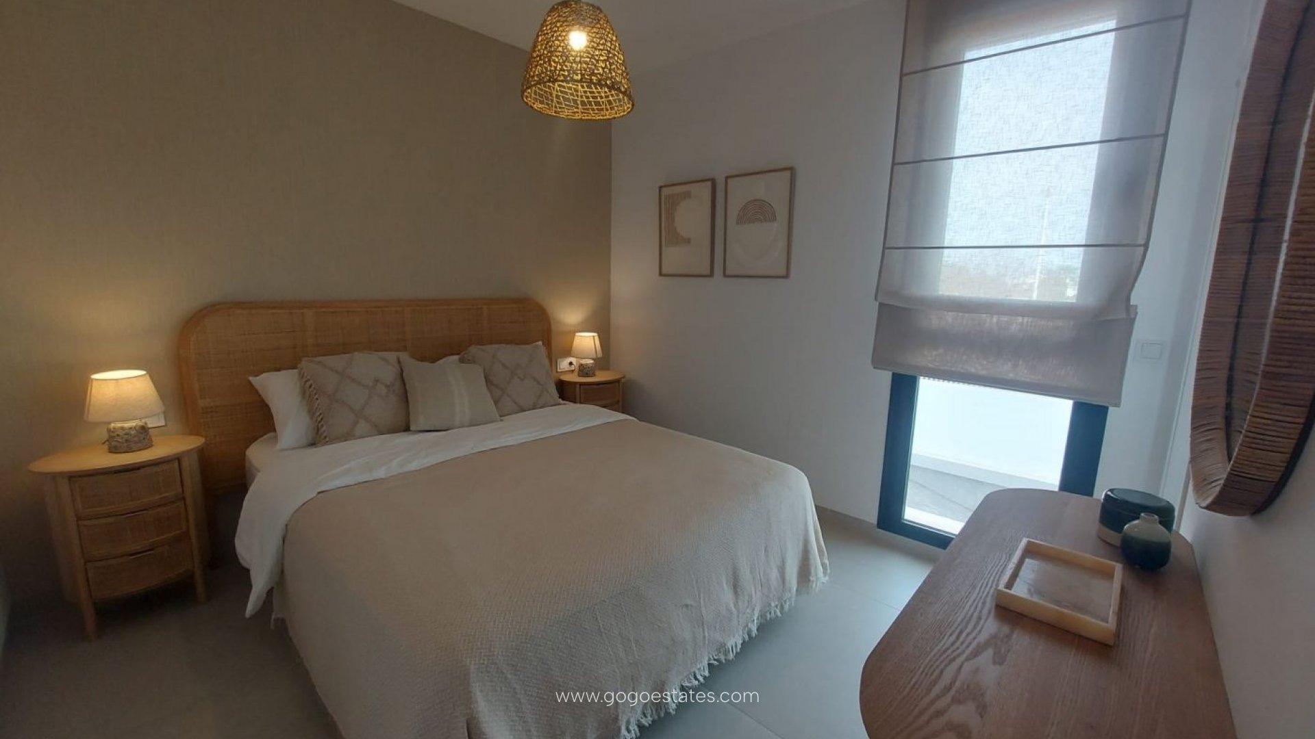 Modern style apartments with 2 or 3 bedrooms and 2 bathrooms beautifully located 500 meters from the beaches of Mar De Cristal. They all have a living room with a modern open kitchen and very large sliding windows that give access to the front terrace. It is located above the pool and from the terrace you have beautiful mountain views. The penthouses have fantastic sea views. The price includes an underground parking space and a storage room.~~In front of the luxurious building there is a communal garden with lawn for sunbathing and a large swimming pool.~The luxury apartments are a short walk from the beaches of Mar De Cristal in a quiet area but close to everything you need for a good vacation or to live there permanently. The beautiful and idyllic fishing village of Cabo de Palos, as well as Los Belones with its many restaurants, are less than 5 minutes away by car. La Manga, with 36 km of beaches, is also a 5-minute drive away. Cartagena's main shopping center is 10 minutes away by car. The city of Cartagena, with its many shops, is a 15-minute drive away. The city of Murcia 30 minutes away.~~Murcia Corvera airport is just 25 minutes away and Alicante airport is 60 minutes away by car.~~Apartments with fantastic views and beautiful nature around.~~2 BEDROOMS 2 BATHROOMS FIRST FLOOR APARTMENTS FROM €245.000rnrn3 BEDROOMS 2 BATHROOMS APARTMENTS FROM €325.000~