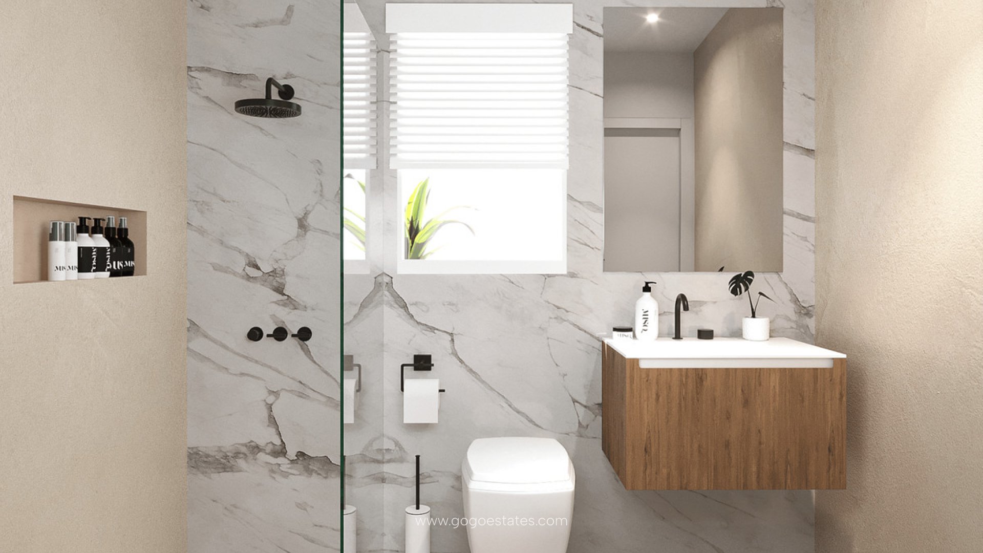 New Development: Prices from 392,000 ? to 392,000 ?. [Beds: 3 - 3] [Baths: 2 - 2] [Built size: 105.00 m2 - 105.00 m2]This is a built on One Level villa with double height ceiling in living room featuring a private swimming pool with a waterfall and a spacious solarium to enjoy the sun all year round.The property offers 3 bedrooms and 2 bathrooms, a fully fitted kitchen including appliances, pre-installation for ducted air conditioning, and a living room designed with a double-height ceiling.~