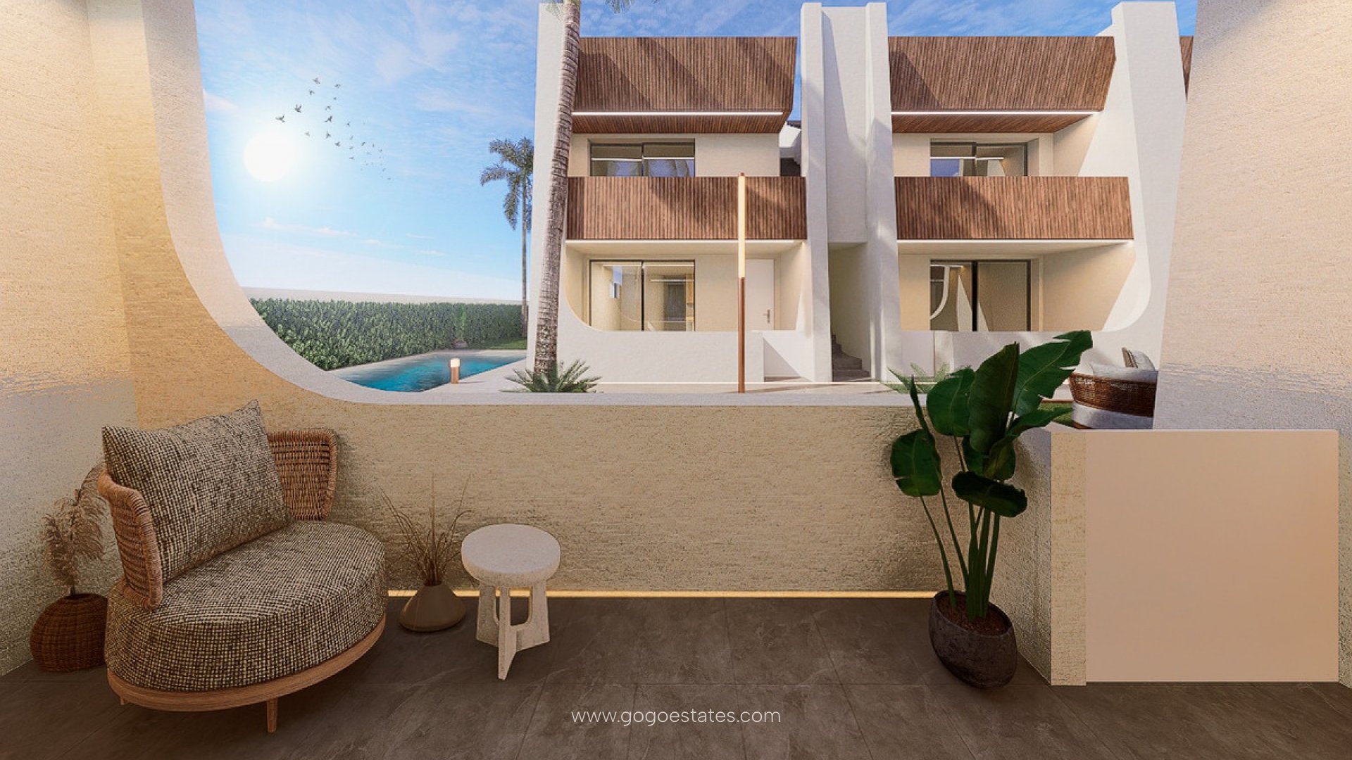 New Development: Prices from 229,950 ? to 279,950 ?. [Beds: 2 - 2] [Baths: 2 - 2] [Built size: 63.00 m2 - 63.00 m2]NOW AVAILABLEChoose from a ground floor model with front terrace or penthouse loft home with front terrace and large private rooftop solarium.Garden / Ground Floor Home: The front door opens into the spacious living zone with dining area set to the side. The fully fitted kitchen is located next to the sliding doors allowing the natural sun light inside. To the side is a family bathroom with basin, toilet and shower and 2 generous sized bedrooms ? the master bedroom having en-suite bathroom.Penthouse Model: A staircase leads you to the top floor area with large tiled private terrace, with entrance door to the property. Like the ground floor models a generous open plan lounge/ dining area with the oversized kitchen ? 2 bedrooms to the side (master with en-suite). Access is gained to the private roof solarium from the rear of the kitchen.NEW PHASE II: Our feature homes include all internal and external LED lighting, pre-installed for a/c, fitted kitchen with induction hob, oven, dishwasher, fridge/freezer and parking space. These new release homes feature a walkway between each structure, with access to the communal garden and large pool area to the front.A select signature style development of only 12 beach homes ? All enjoying a large communal garden area with swimming pool.Winter 2026 for completion.~
