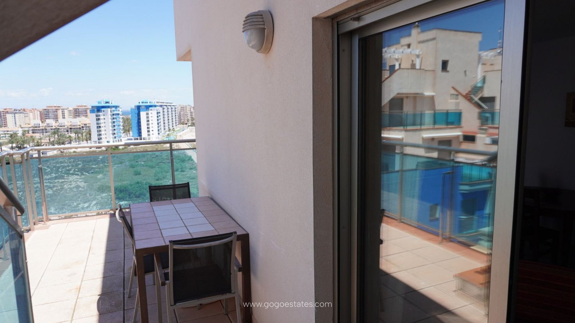 La Manga del Mar Menor Stunning Views 2 bed 2 bath penthouse for sale located in the gated complex of Libertad dos Playas with swimming pool, padel tennis and Gym just 50m to the sandy beach...gt;gt;gt;gt;gt;gt;gt;gt;gt;gt;gt;gt;gt;gt;gt;gt;gt;gt;gt;gt;gt;gt;gt;gt;gt;gt;gt;gt;gt;Top Floor penthouse 2 beds 2 baths with one En suite, independent kitchen and a utility room, lounge with dining area and patio doors to a terrace which is spacious and ample room for a dining table, there is also another terrace off the bedroom and a roof top private solarium, there are wardrobes in both bedrooms aswell as another in the entrance hall, the property is to be sold furnished and has air conditioning. There is one reserved parking space in the underground garage with further parking in the communal car park. There are sea views from every room.Libertad is located between two seas with beaches on both sides, the La Manga bus has a stop 50 meters from the complex which runs the length of La Manga, closeby there is many opportunities to participate in many water sports and the large marina Tomas Maestre is a 25 minute stroll or a short bus trip.~