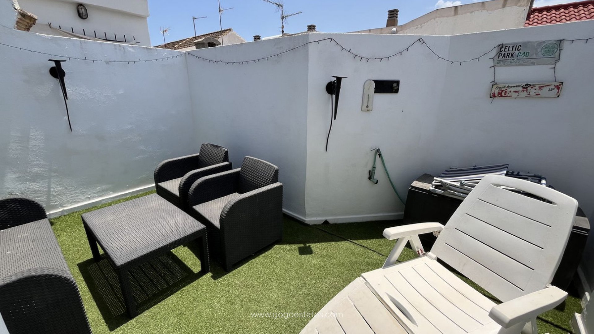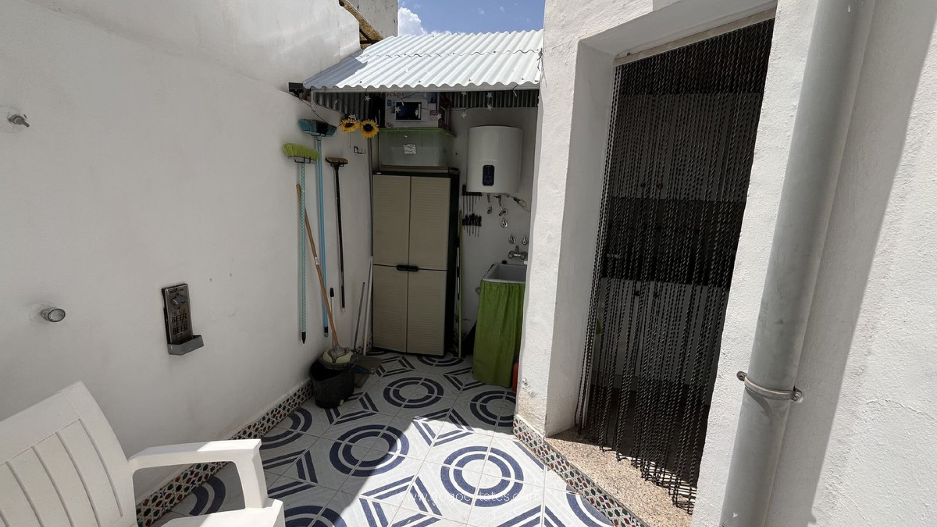 Discover this townhouse located in the sought-after area of Los Alcazares, only 8 mins walk to the beach. This fully furnished home offers a welcoming lounge and dining area, a separate fully equipped kitchen, a guest bedroom, and a bathroom on the ground floor, ideal for hosting friends and family. Venture upstairs to find a spacious double bedroom, wardrobes and additional storage along with a family bathroom complete with a relaxing tub. Enjoy your morning coffee or evening sunset from the front or rear terrace or the rooftop garden space, perfect for sunbathing or additional storage. Just a short stroll away, the vibrant central plaza boasts an array of amenities including supermarkets, shops, cafes, restaurants, and banks. For beach lovers, a stunning 5 km promenade with inviting beaches, lively bars, and exciting water sports is within walking distance. If you fancy a cool swim there is a public pool open during the summer months just a 15 minute walk away.~