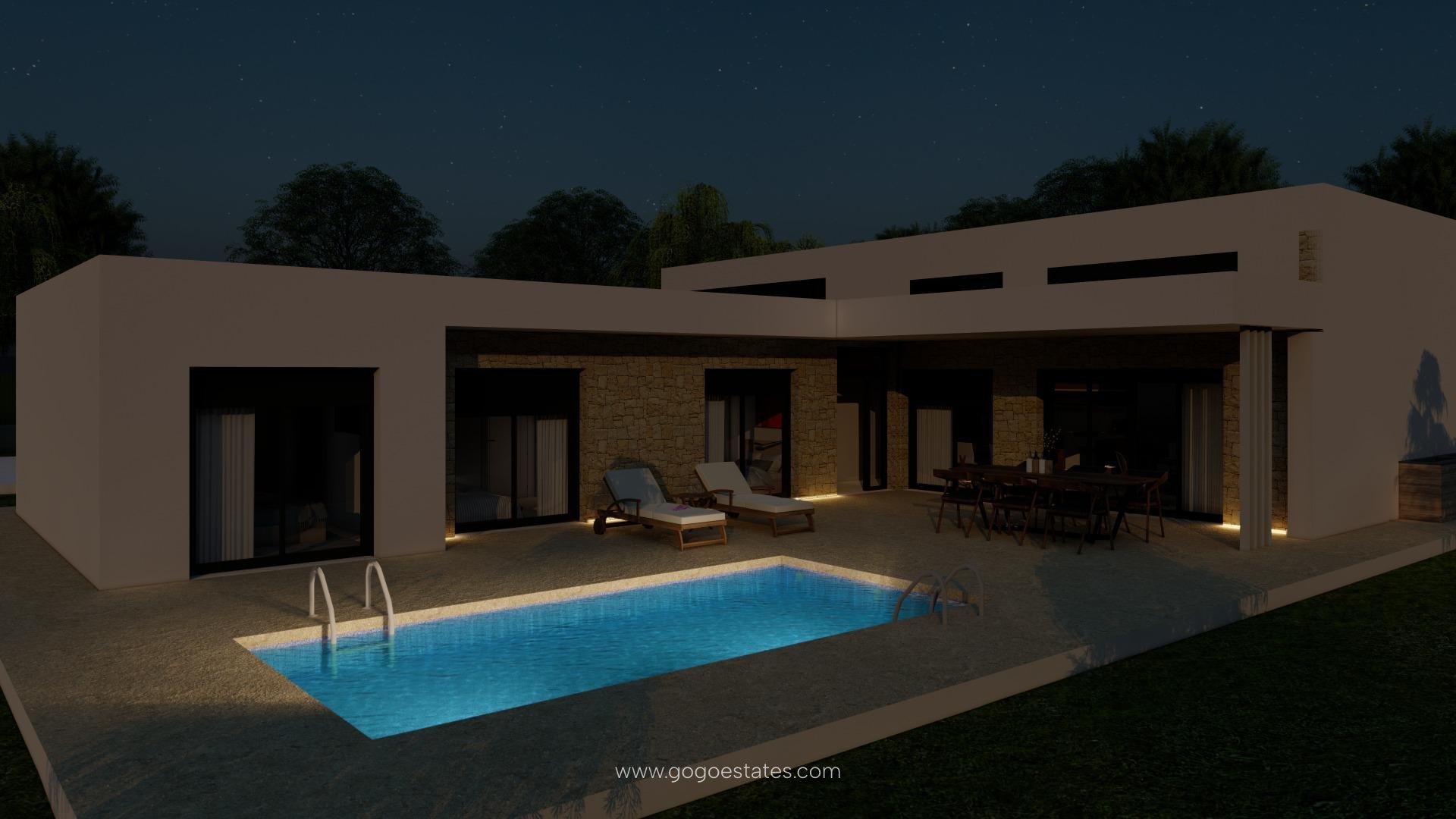 Modern New Build Villa on a Large Rustic Plot in Pinoso Contemporary Living in a Peaceful Rural Setting Discover this stylish new build villa located on a spacious rustic plot of 10.700 m2 on the outskirts of Pinoso, Alicante. Designed for those seeking privacy, tranquility and a close connection to nature, this modern home combines contemporary architecture with the charm of the Spanish countryside. Surrounded by vineyards, almond and olive groves, the property offers a serene lifestyle just a short drive from all local services. Spacious Single Level Villa with Private Pool The villa is distributed on one level and features 3 bedrooms and 2 bathrooms, one of them en suite. The open plan layout follows an L shape design, separating the living area from the sleeping quarters for added comfort and privacy. The day area boasts high ceilings that enhance the sense of space and flood the interior with natural light. Outside, you will enjoy a private terrace and swimming pool, perfect for relaxing and entertaining under the Mediterranean sun. The property also includes a covered parking area for two cars, all set within a large rustic plot that offers endless possibilities for gardening, leisure areas or simply enjoying the surrounding views. Modern Features and Quality Finishes This new build villa comes equipped with ducted air conditioning for year round comfort. The kitchen is fully fitted and equipped with appliances, offering a functional and elegant space for daily living. The modern design, combined with quality materials, ensures a comfortable and low maintenance home ideal for permanent living or a countryside retreat. Location Near Pinoso Town The property is located just outside the town of Pinoso, a charming inland village with a population of under 8000 inhabitants. Known for its relaxed pace of life and authentic Spanish atmosphere, Pinoso offers a wide range of amenities including bars, restaurants, shops, a 24 hour medical center, dentists, primary and secondary schools, a theater and a modern sports complex with outdoor pools, tennis courts, football fields and a gym. The town center of Pinoso is approximately 3 km away. Alicante city is around 55 km, while the white sandy beaches of the Costa Blanca are about 50 km away. Alicante International Airport is approximately 60 km from the property. The region is also close to the border with Murcia, adding further connectivity and lifestyle options. An Authentic Spanish Lifestyle Surrounded by Nature Living in Pinoso means enjoying a traditional rural lifestyle with almost no traffic, open landscapes and a strong sense of community. In February, the surrounding countryside comes alive with blooming almond trees, creating a spectacular natural display. Your Countryside Dream Home Awaits This modern new build villa in Pinoso offers the perfect balance between contemporary comfort and peaceful rural living. Contact us today for more information or to arrange a viewing and take the first step toward your new home in the Spanish countryside.
