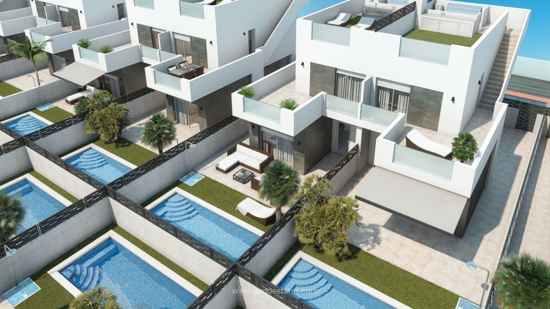 It is a pleasure for me to present you our new product in Marabú Lagoon, we are building 9 Townhouses, from 240.000€ The properties are equipped with 3 bedrooms, 2 bath, American style kitchen, living room, dining area and private garden with access to the community pool. Air condition, fully furnished bathrooms with shower screens, inside and exterior lights, electric shutters, anti-lime scale system, ventilation system and build in kitchen with extractor fan are included in the price. There is the possibility to build a sunroof terrace with access from the balcony in the first floor. The first 3 properties will be ready for delivery in July 2021.