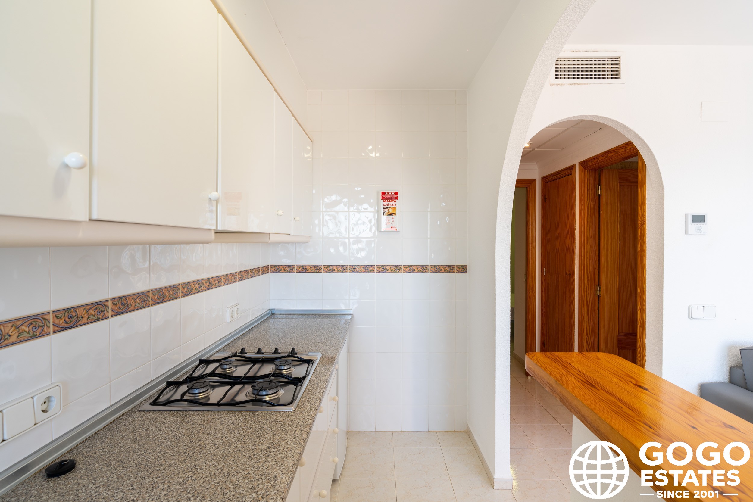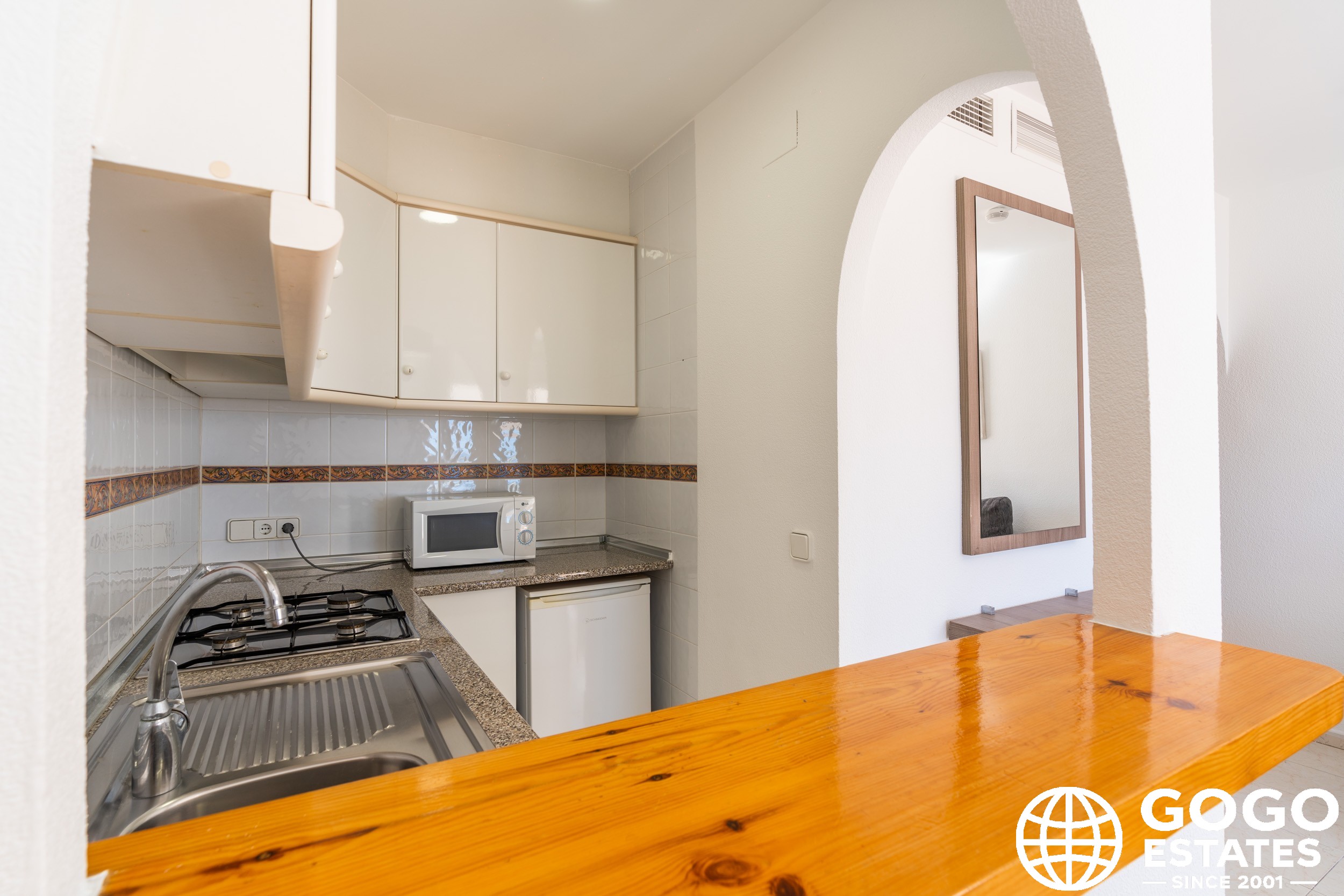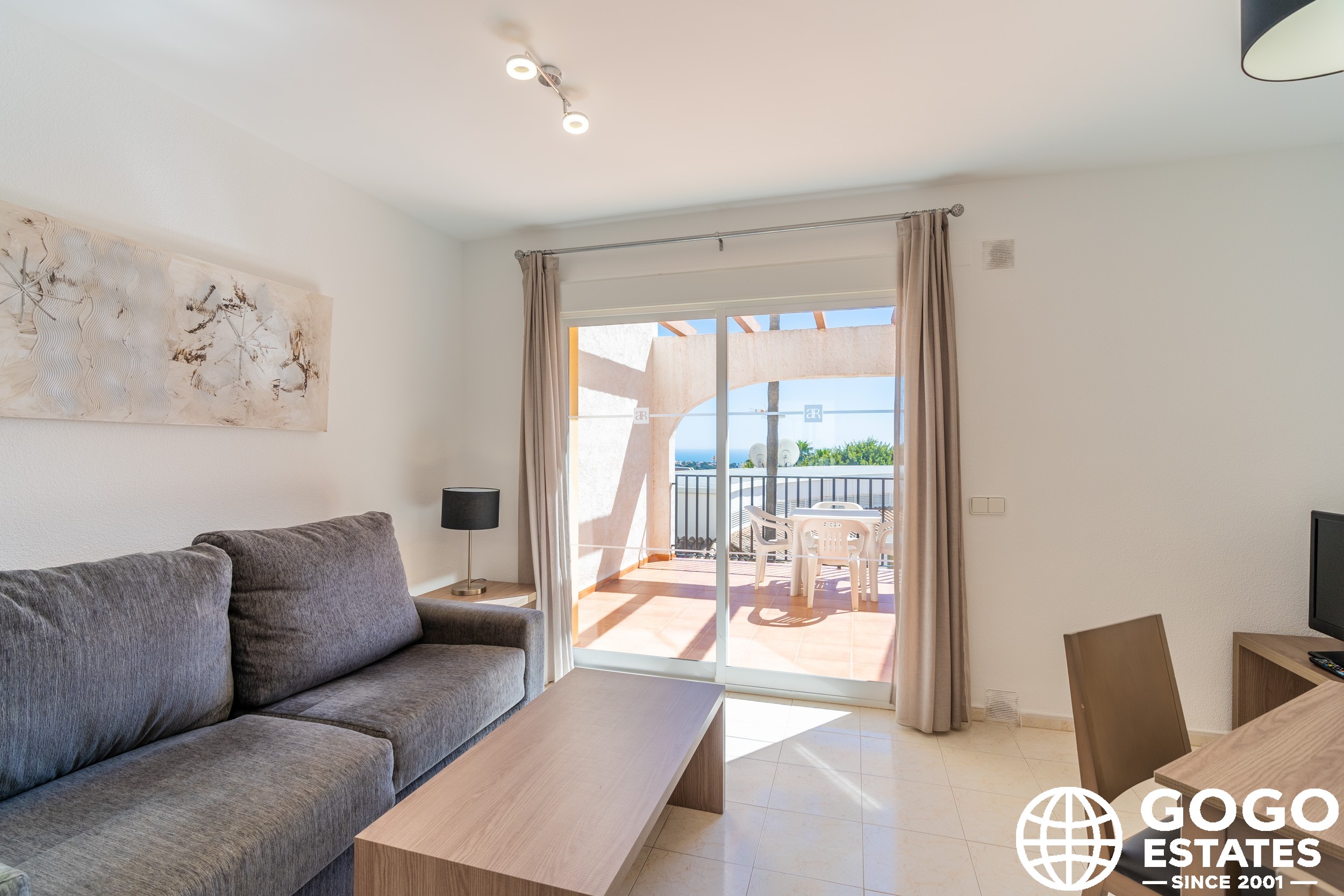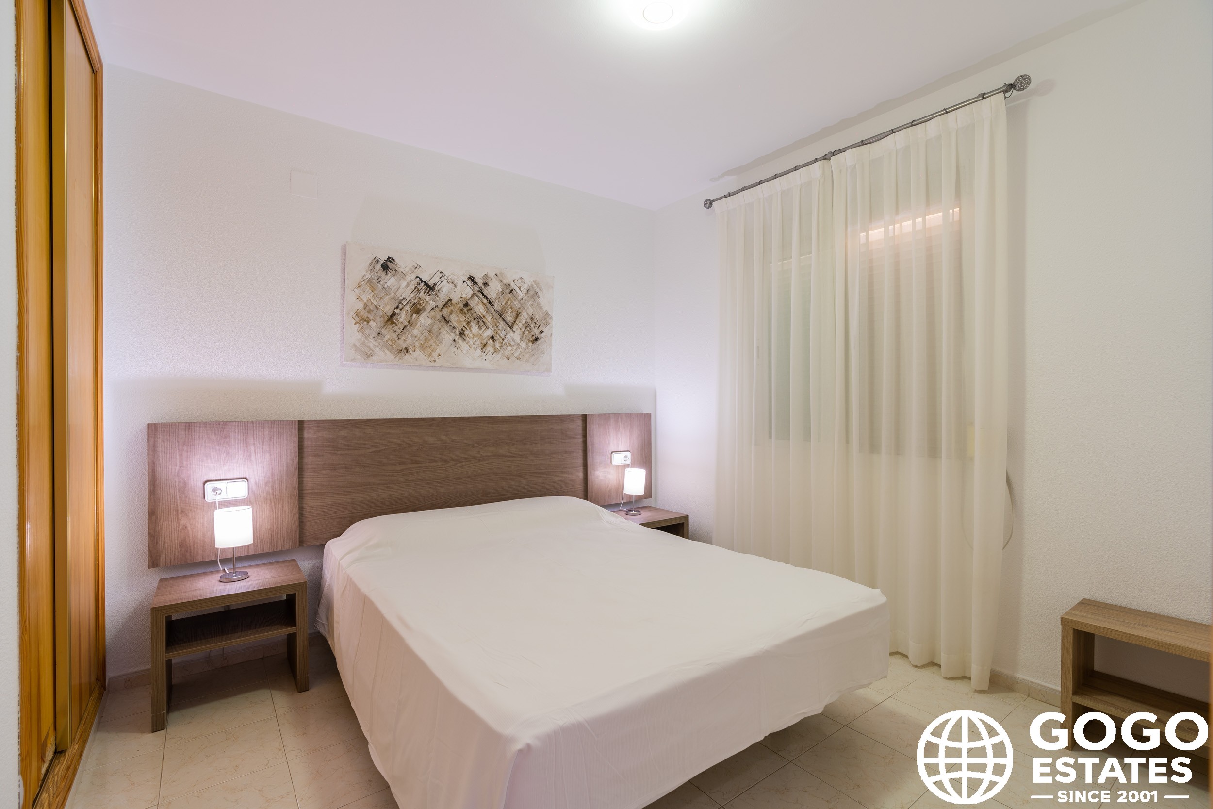 The apartment is part of a residential complex that provides access to landscaped common areas and a community pool. Additional features include air conditioning, built-in wardrobes, and ceramic flooring. The property is sold furnished and with appliances, ensuring a smooth transition to your new home.