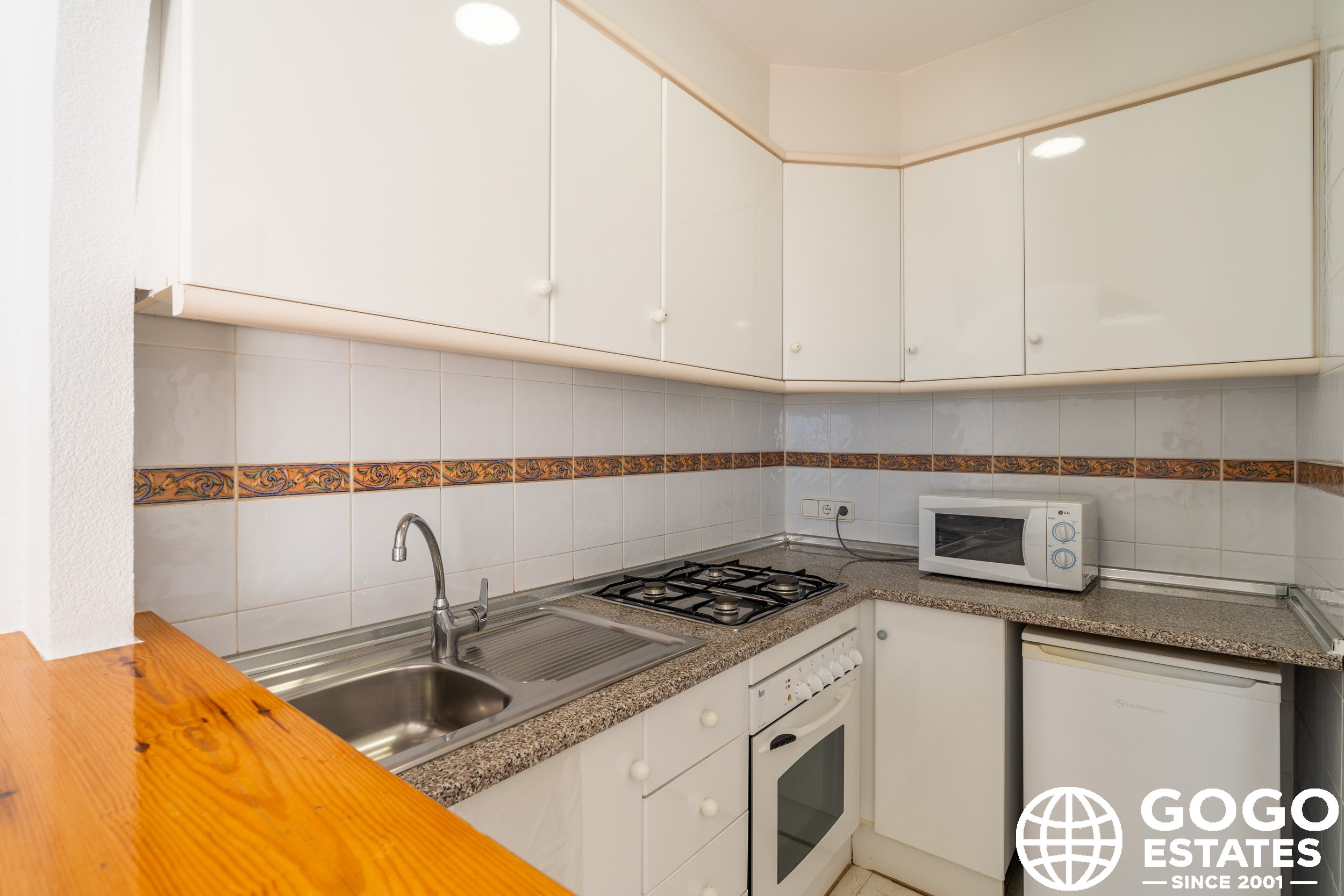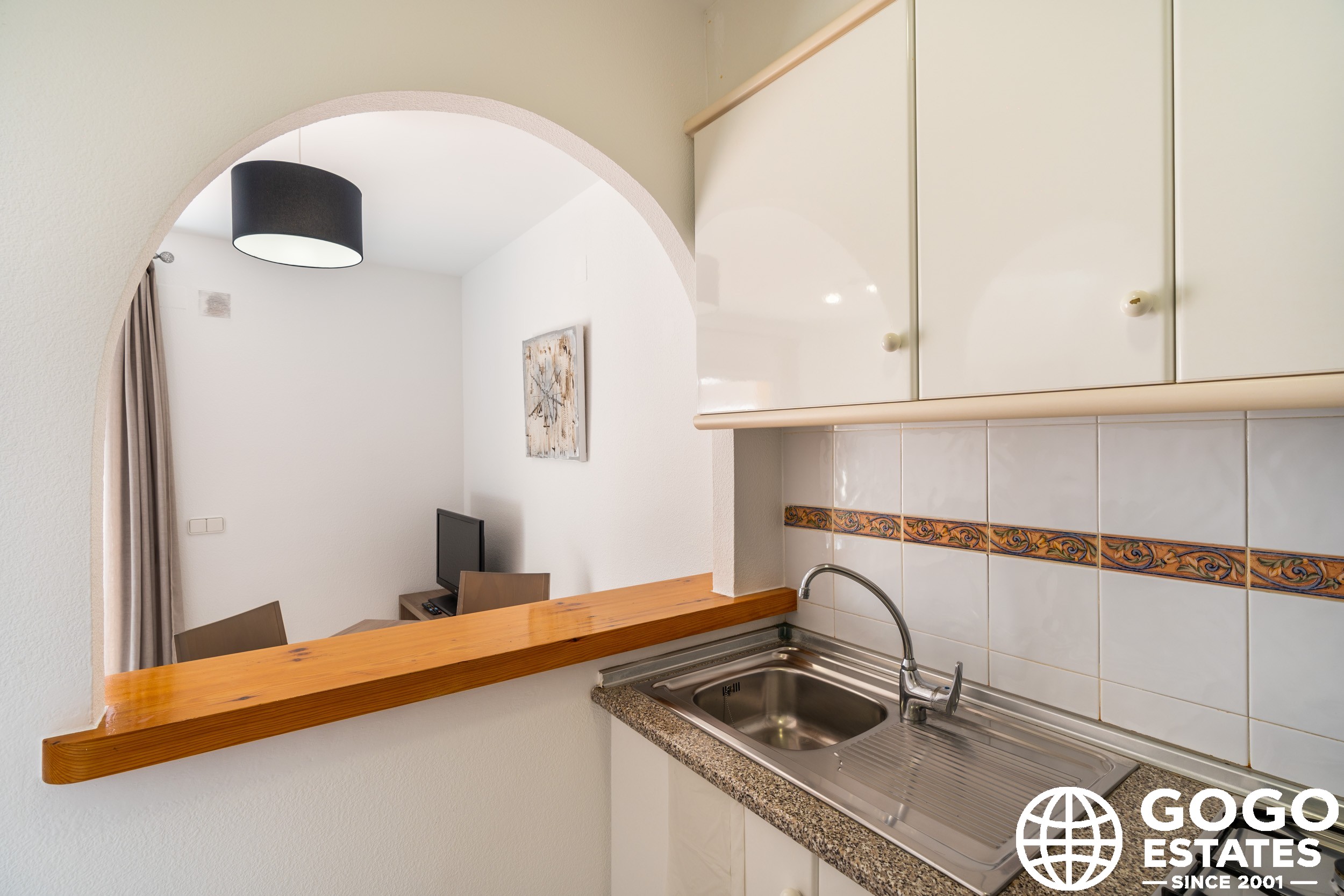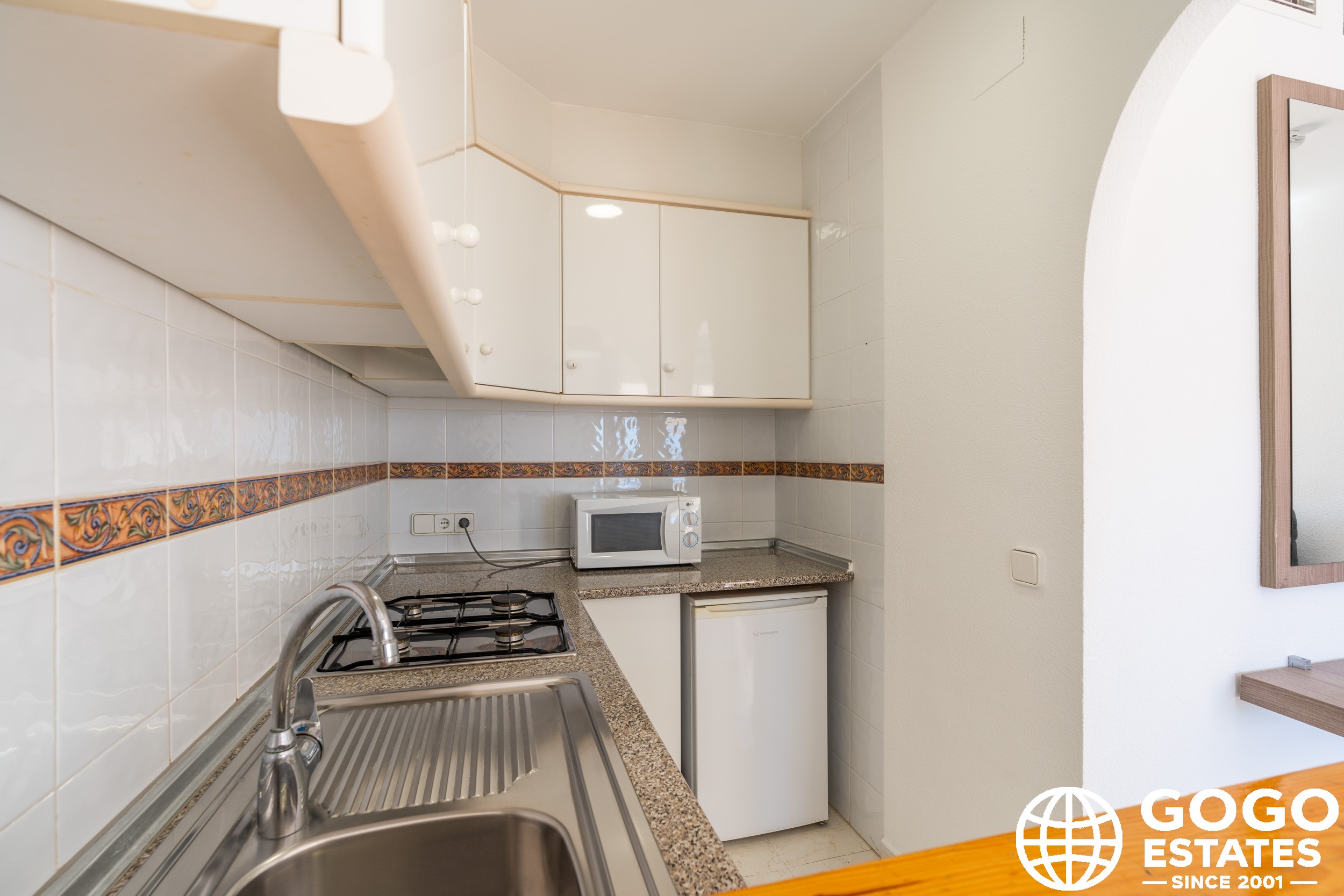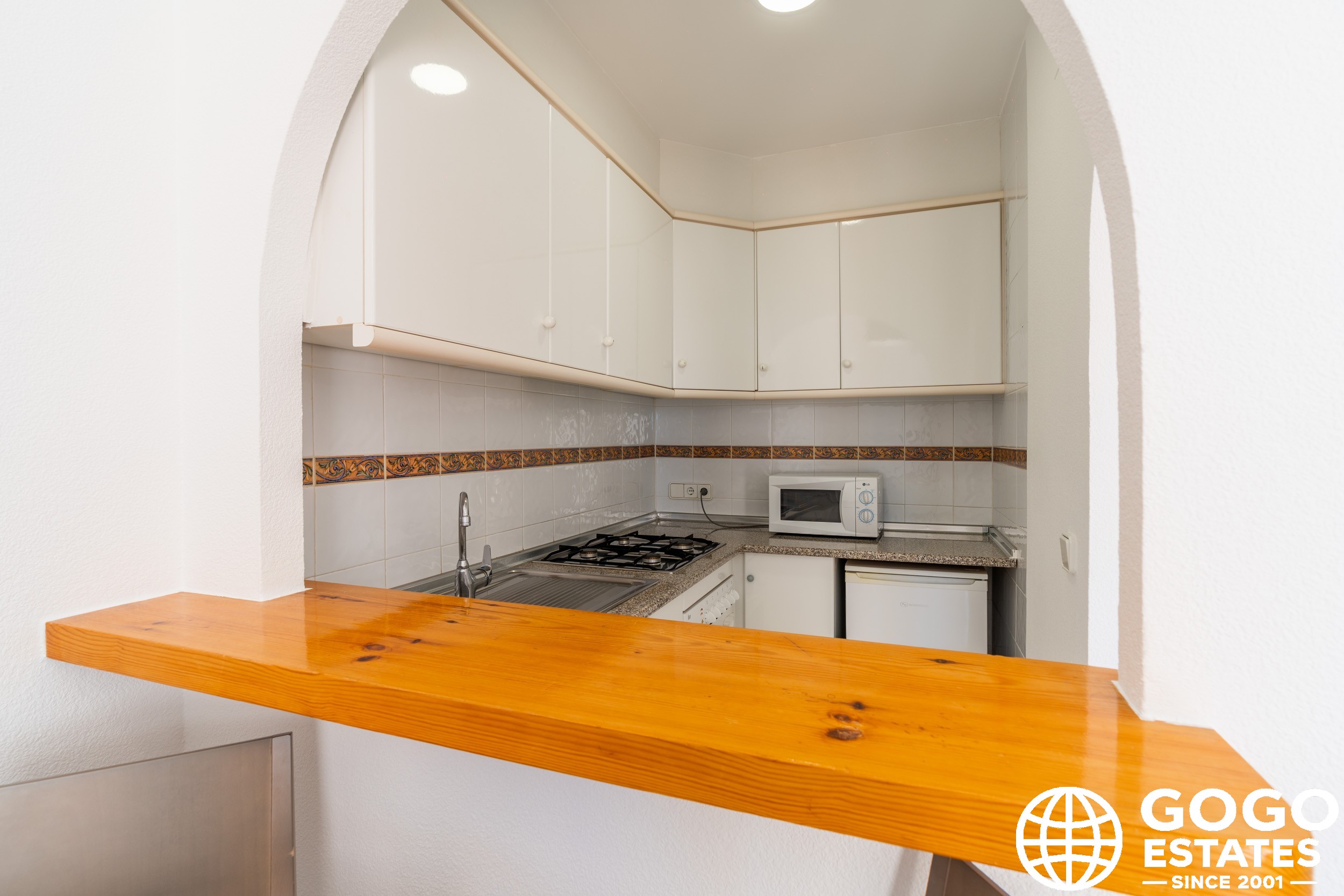 The apartment is part of a residential complex that provides access to landscaped common areas and a community pool. Additional features include air conditioning, built-in wardrobes, and ceramic flooring. The property is sold furnished and with appliances, ensuring a smooth transition to your new home.