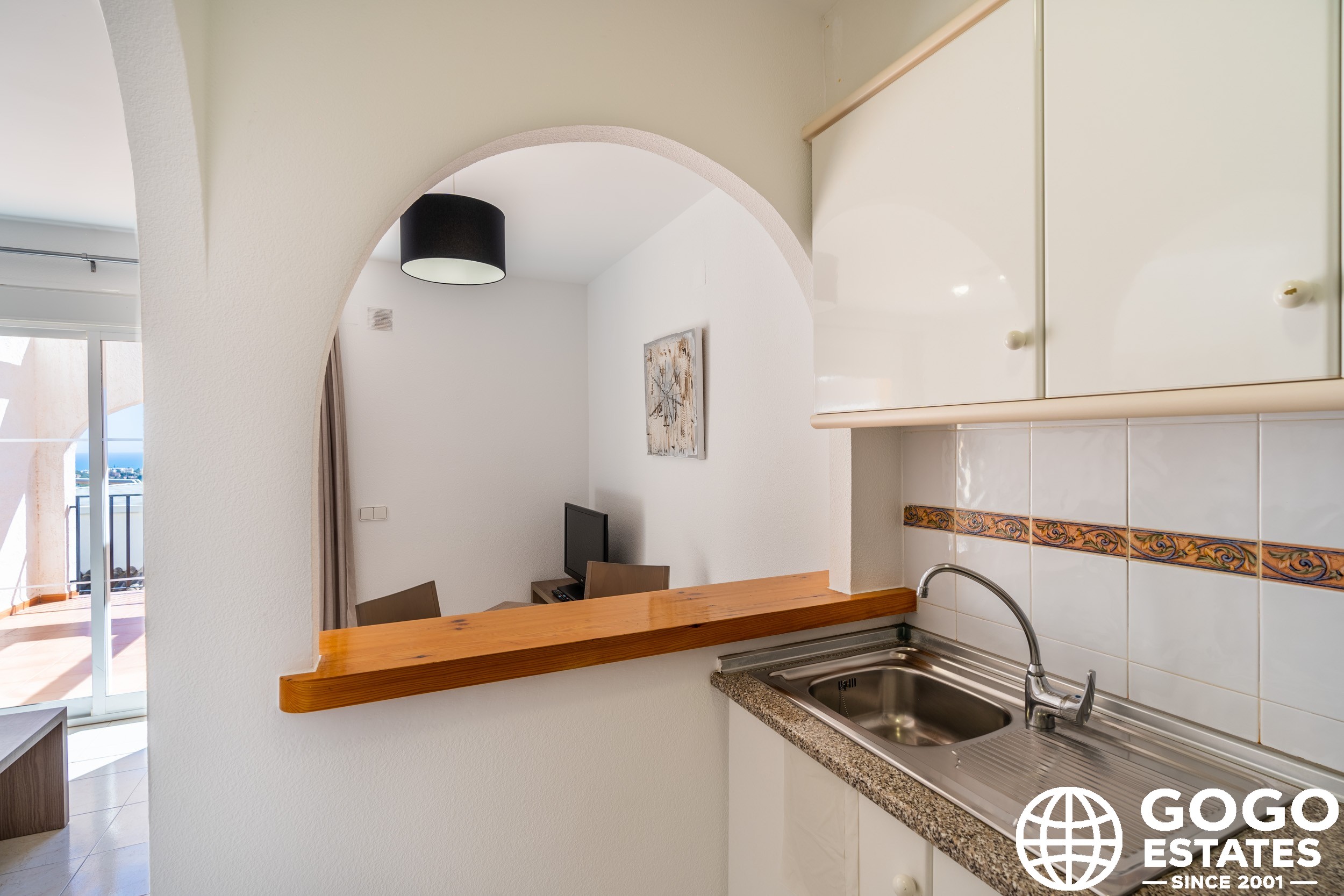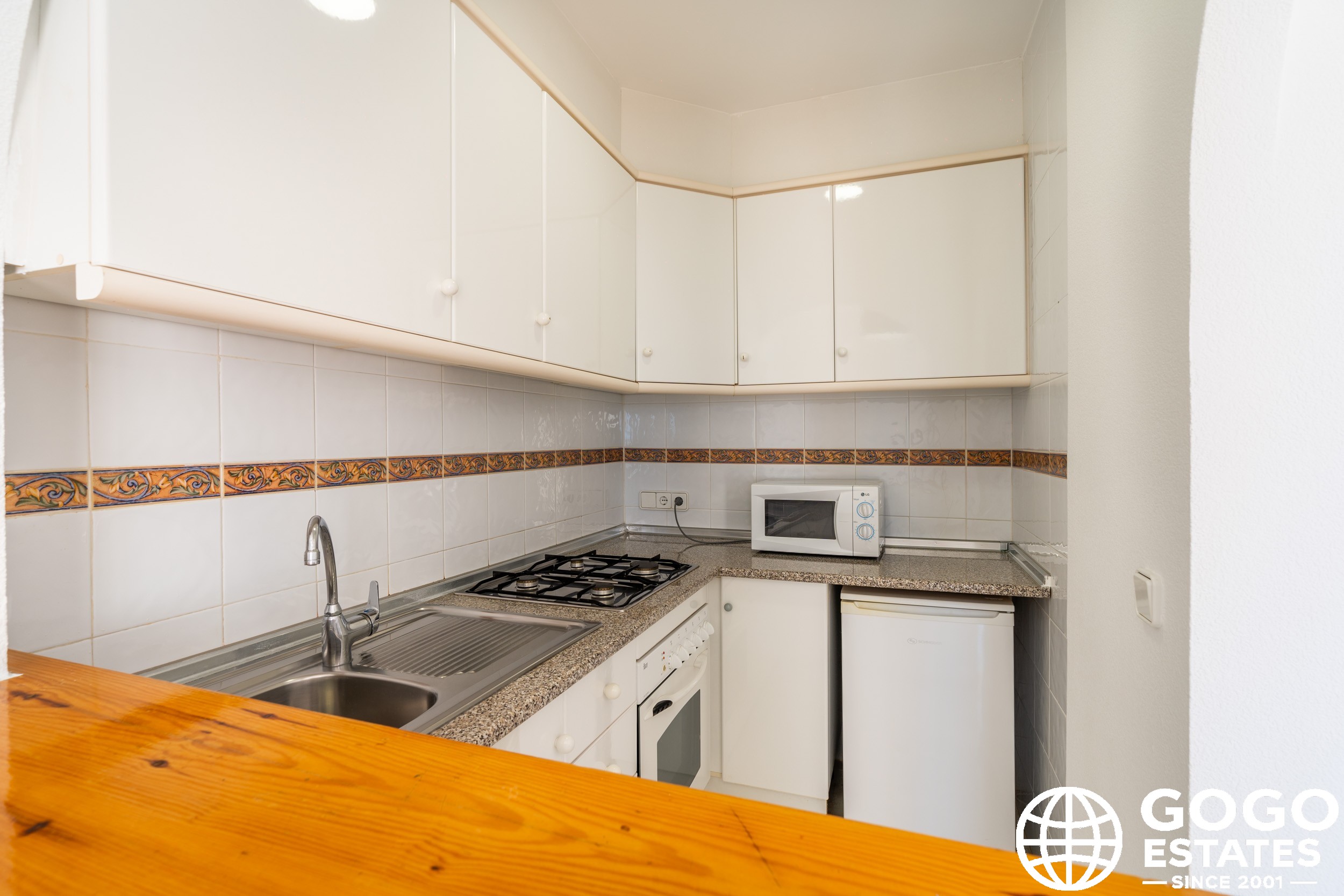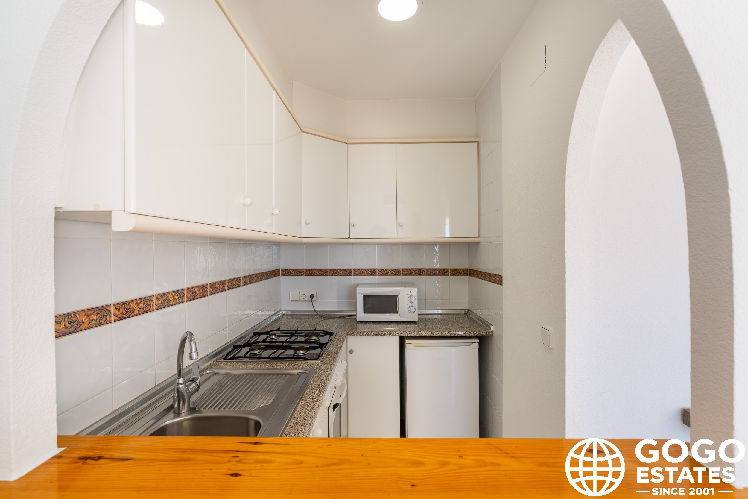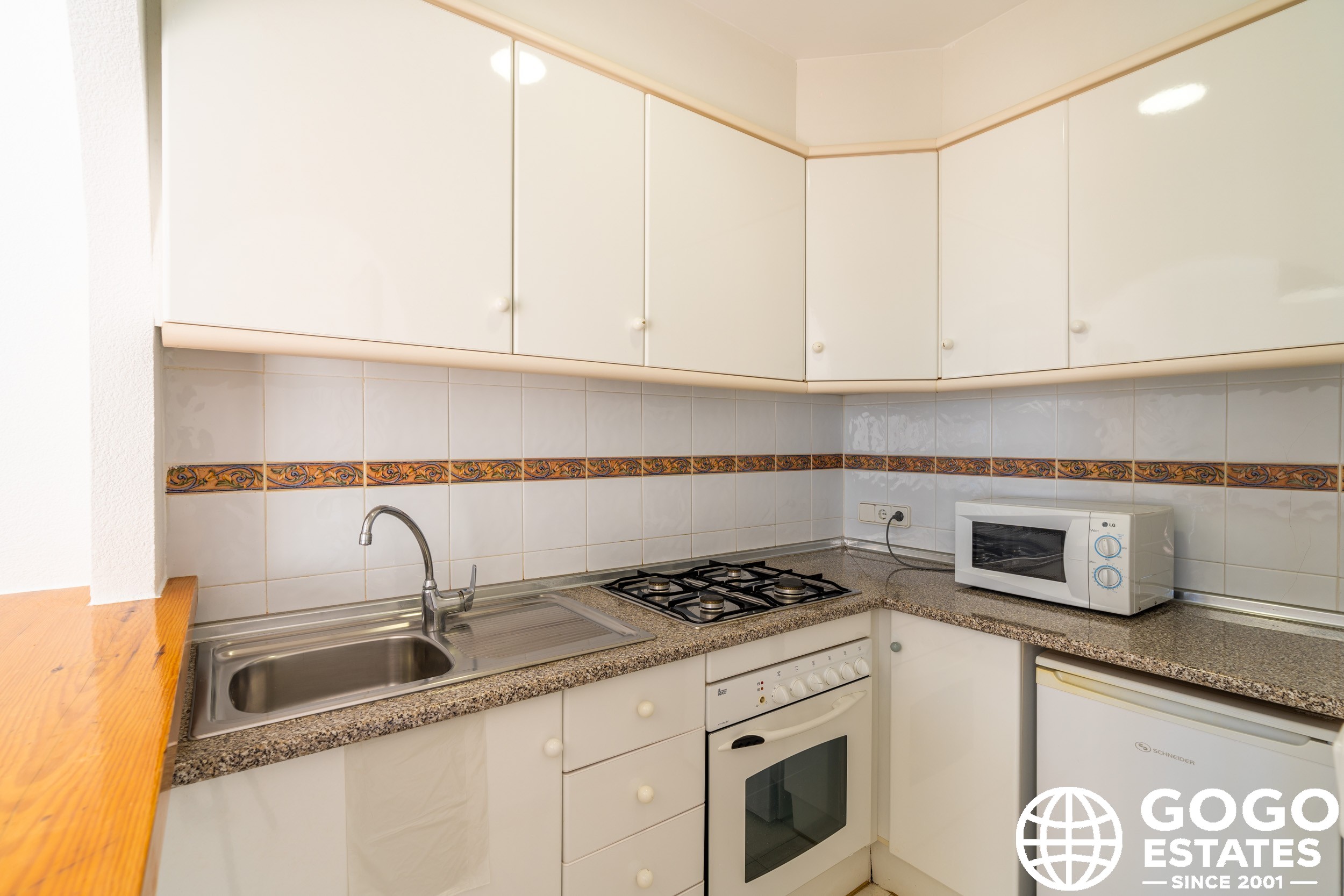 The apartment is part of a residential complex that provides access to landscaped common areas and a community pool. Additional features include air conditioning, built-in wardrobes, and ceramic flooring. The property is sold furnished and with appliances, ensuring a smooth transition to your new home.