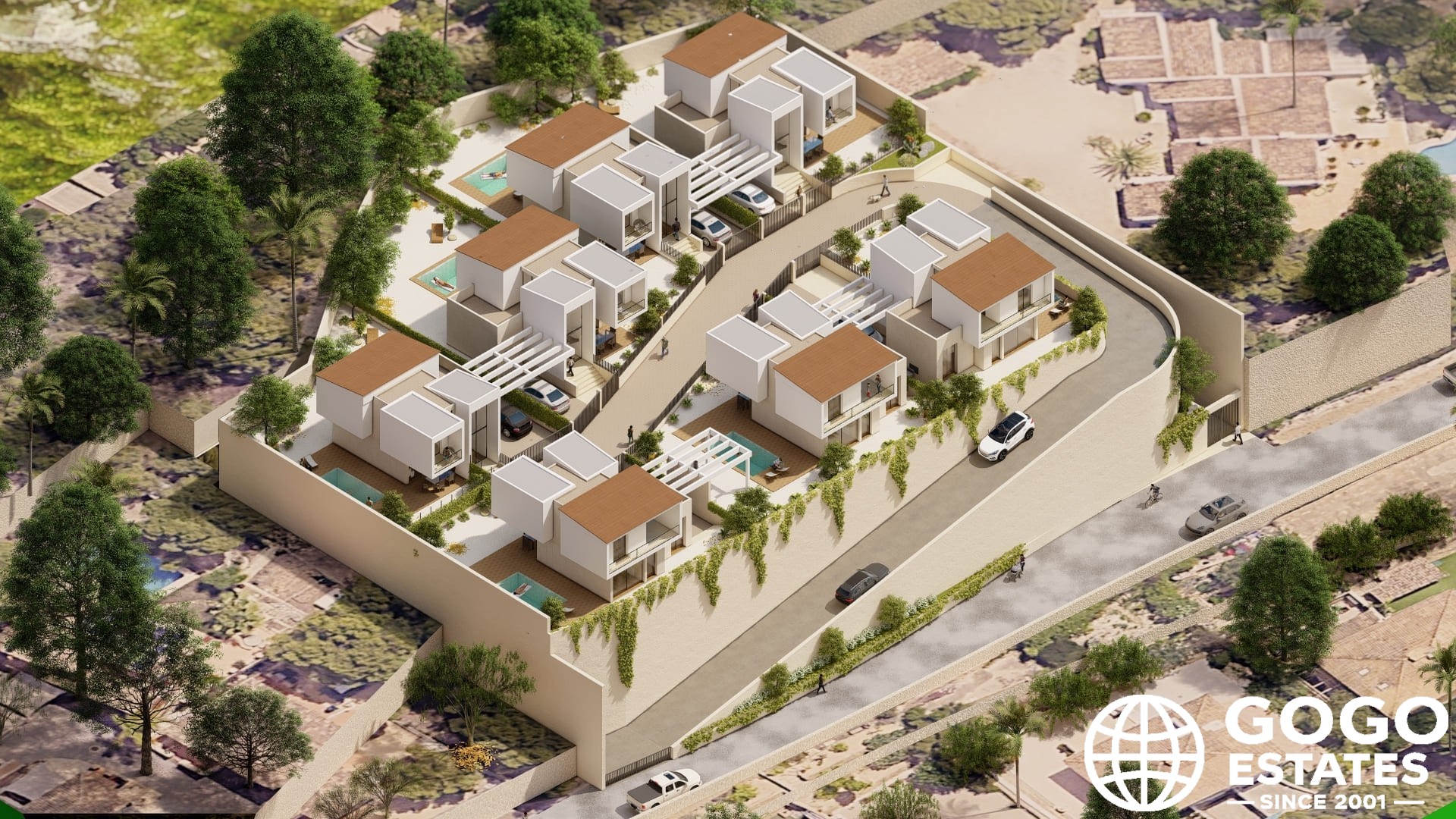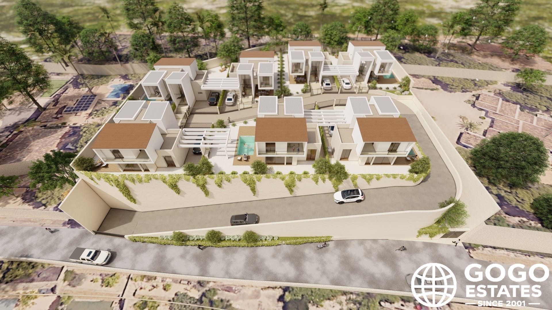 The exteriors are designed for an exceptional outdoor lifestyle. Each property features a private garden and terrace, perfect for relaxation and enjoying the Mediterranean climate. A private pool adds a touch of luxury, allowing residents to refresh and enjoy the sun.