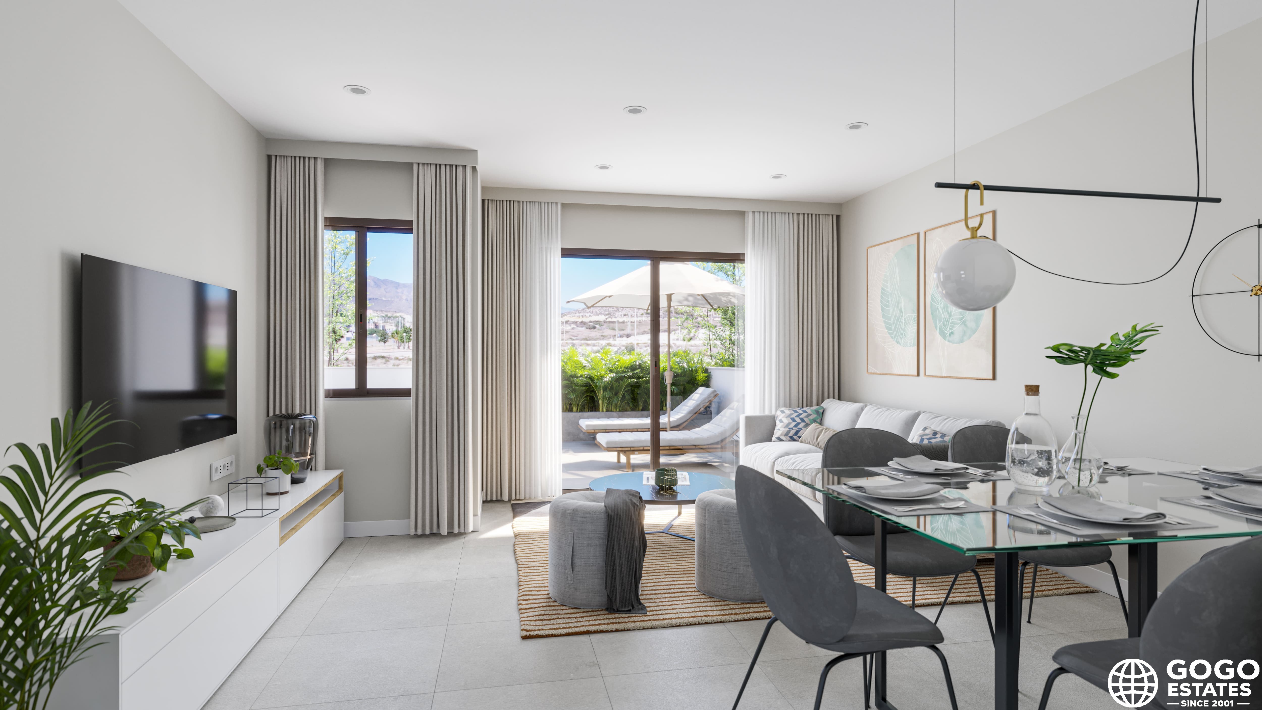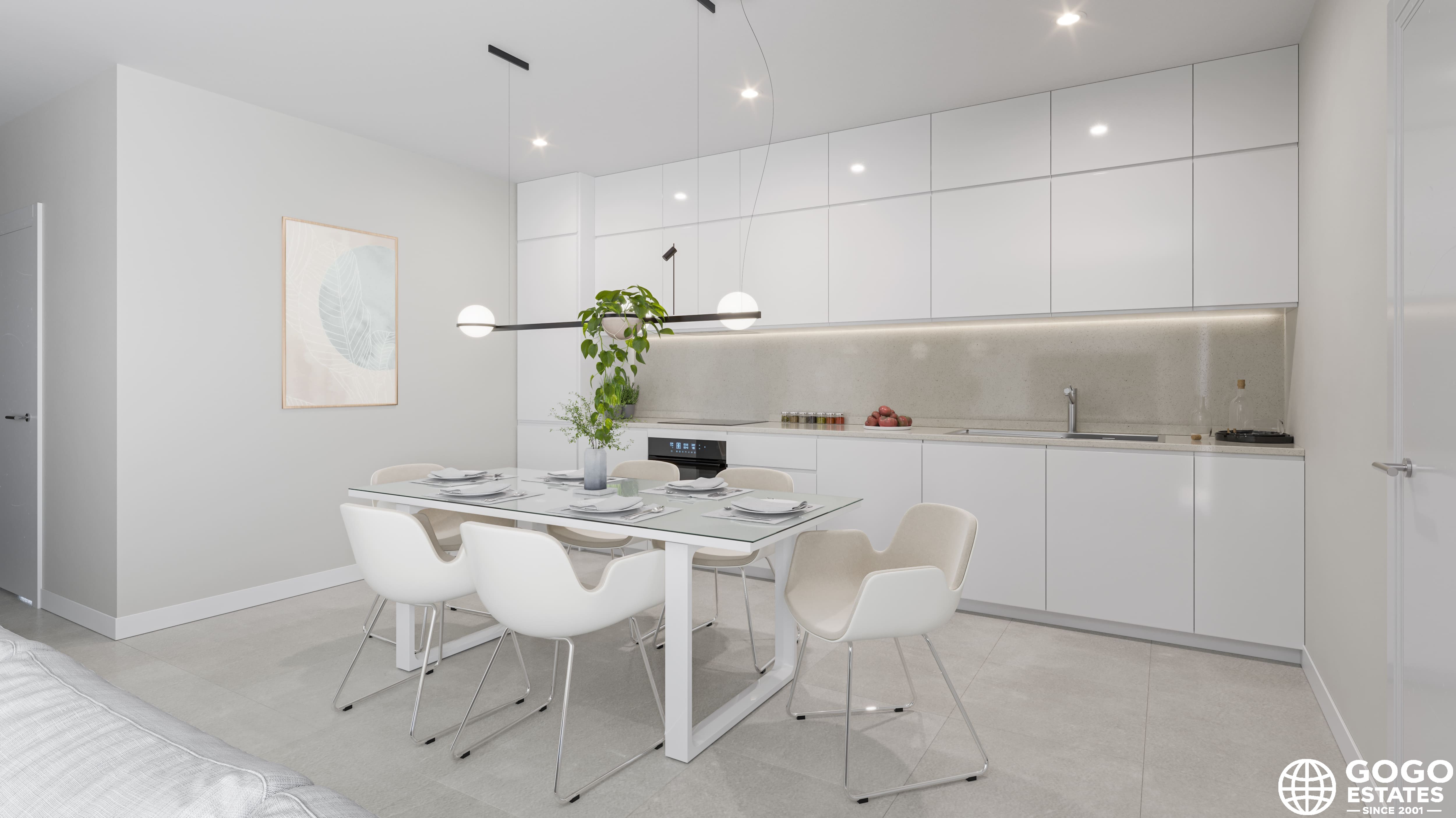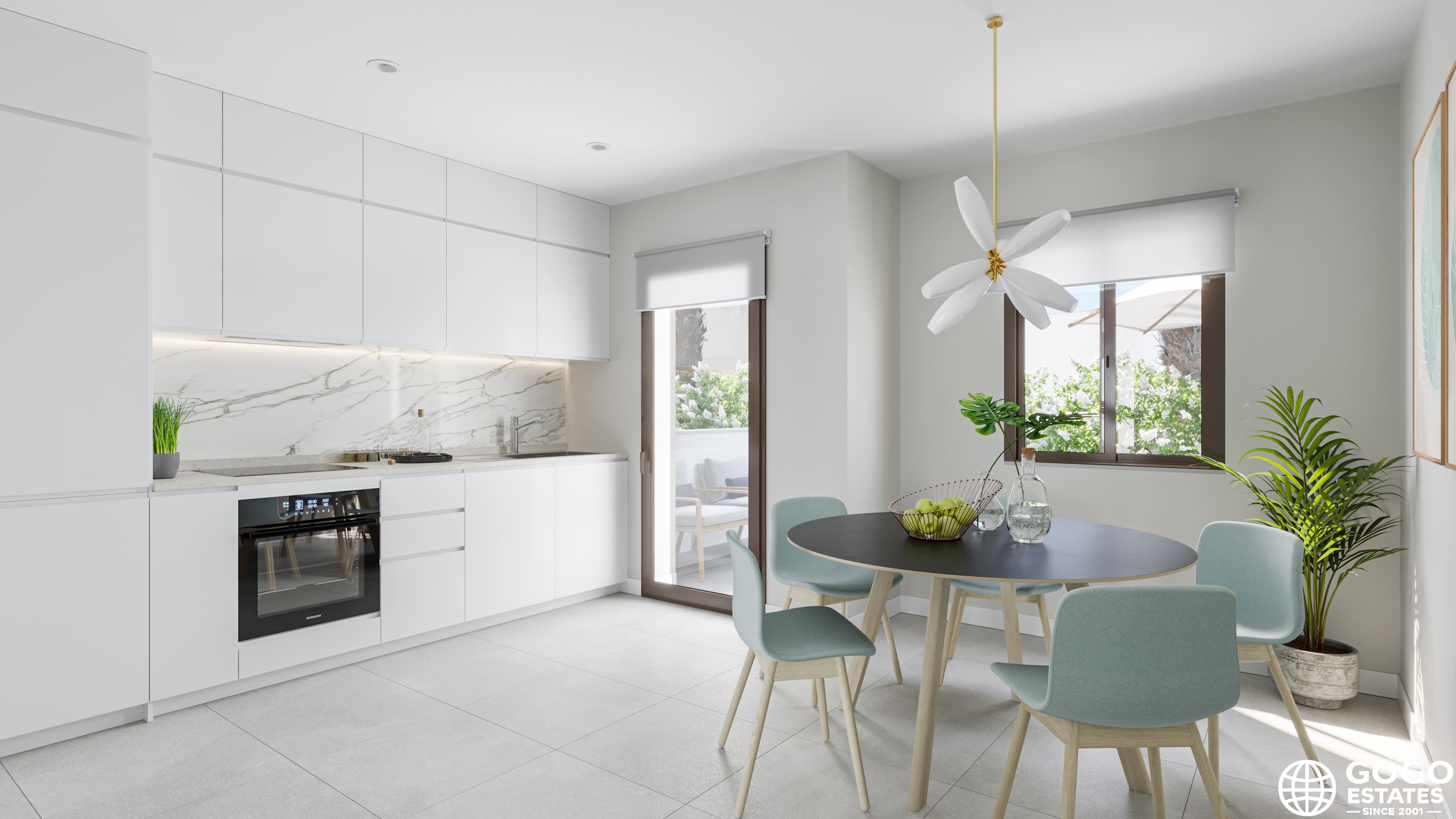 The townhouses feature outdoor spaces that invite relaxation and enjoyment of the Mediterranean climate. Each home has a private terrace, perfect for outdoor dining or simply relaxing in the sun. Additionally, the solarium offers extra space for sunbathing in complete privacy.