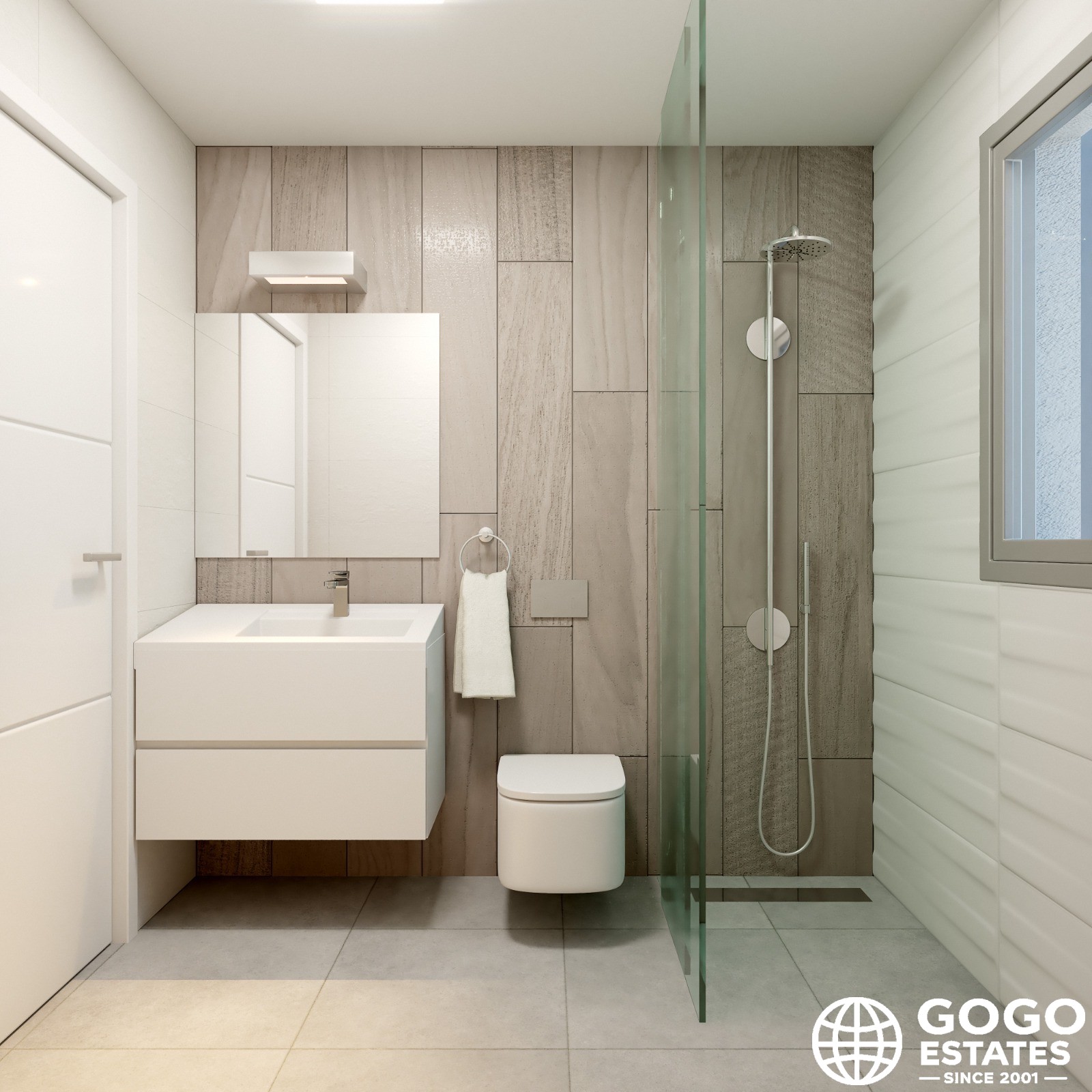The property features a private terrace, ideal for enjoying the Mediterranean climate. Residents have access to communal amenities, including a pool and garden areas, enhancing the living experience.
