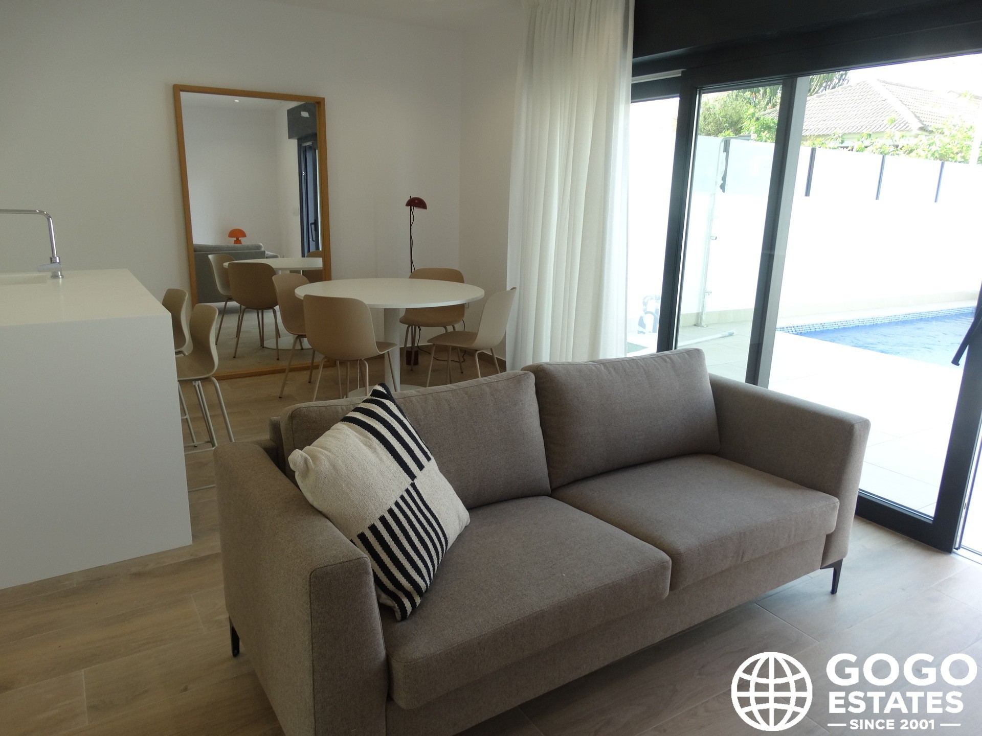The townhouses feature outdoor spaces that invite enjoyment of the Mediterranean climate. Each home has a private garden, perfect for relaxation or outdoor activities. Additionally, the spacious terraces offer an ideal place to enjoy the views and natural surroundings. The solarium, present in each property, provides additional space for sunbathing or simply enjoying the panoramic views.