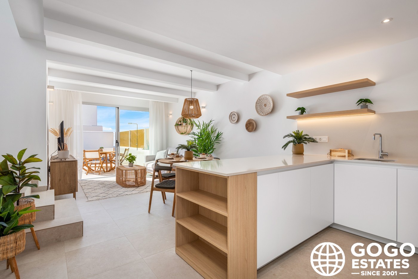 Inside, the homes offer ceramic floors, 3 bedrooms, and the option of 2 or 3 bathrooms. Built-in wardrobes and pre-installed air conditioning ensure comfort. The kitchen comes equipped with appliances, facilitating daily life.