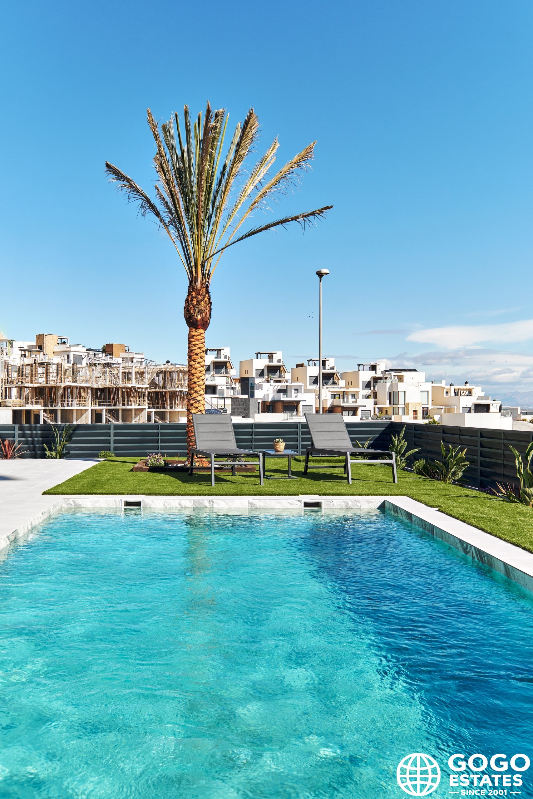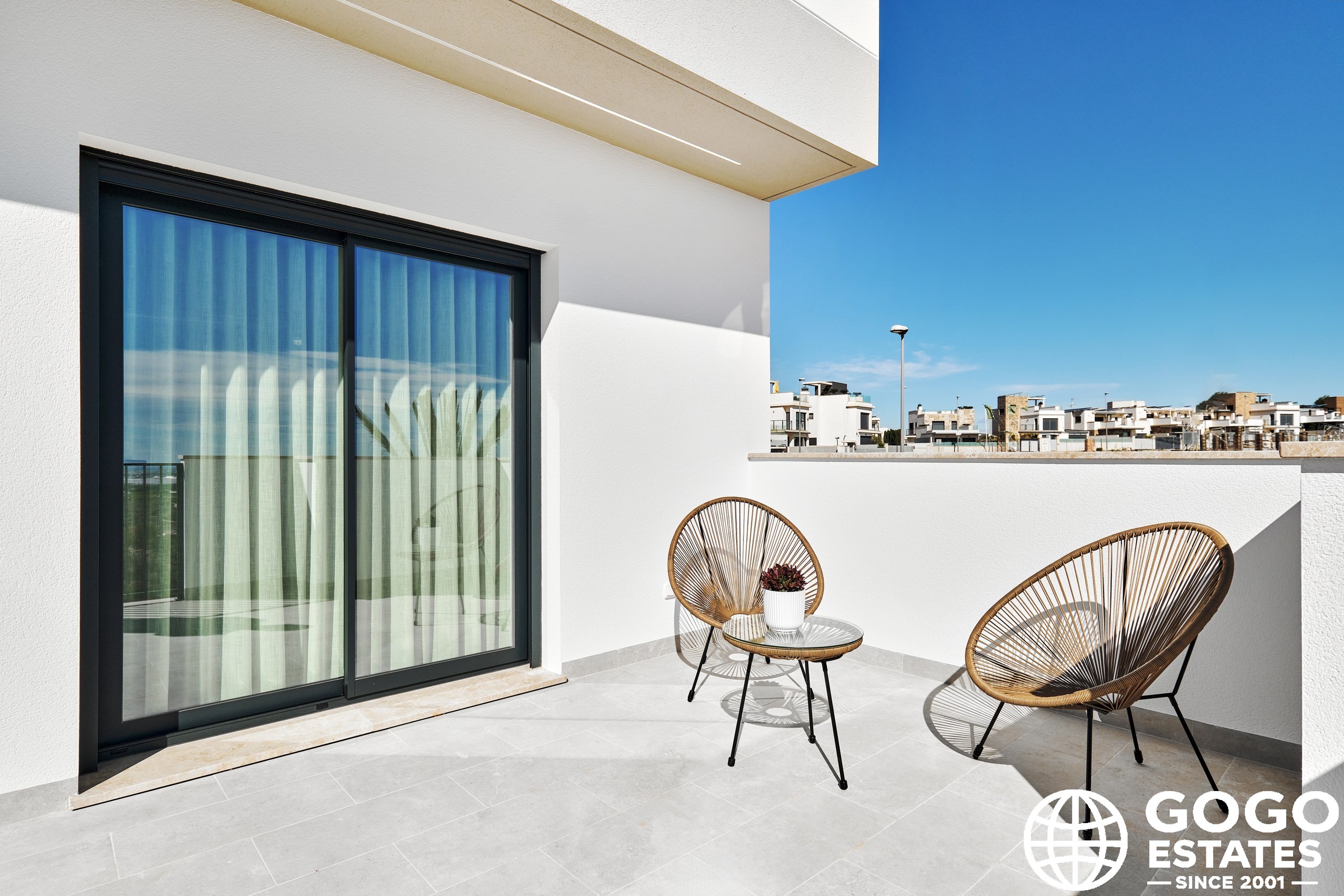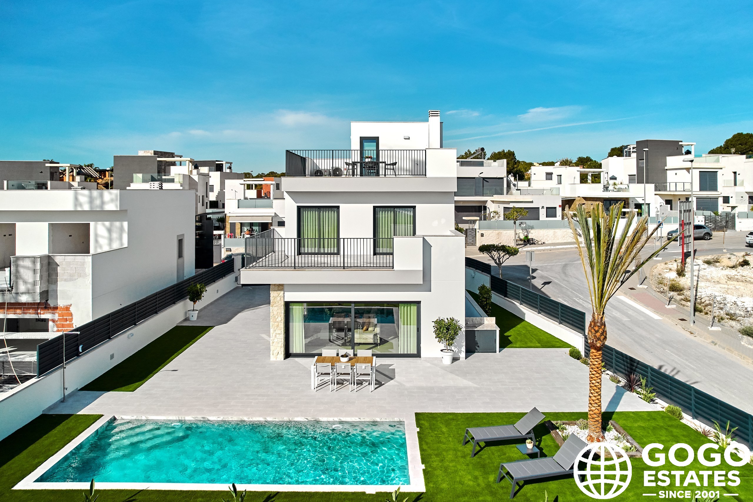 The exterior design of these detached homes is intended to enjoy the Mediterranean climate. Each property features a private pool, perfect for cooling off during warm summer days. Additionally, the terraces offer an ideal space for outdoor relaxation or al fresco dining with sea views.
