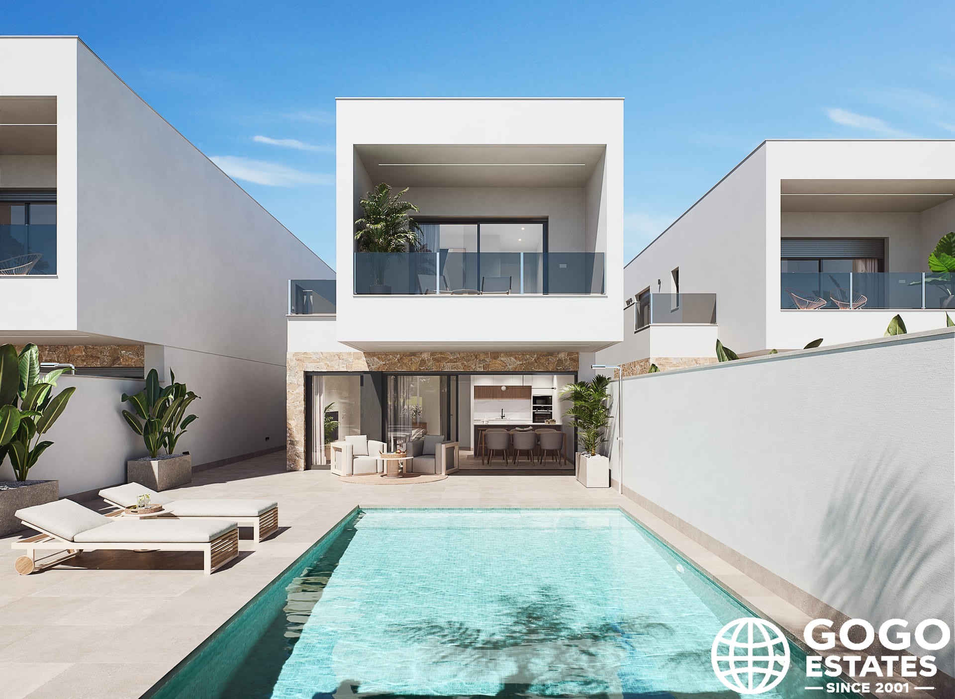 Each home features a private garden, terrace, and solarium, perfect for enjoying the Mediterranean climate. A private pool adds a touch of luxury, ideal for refreshing dips.