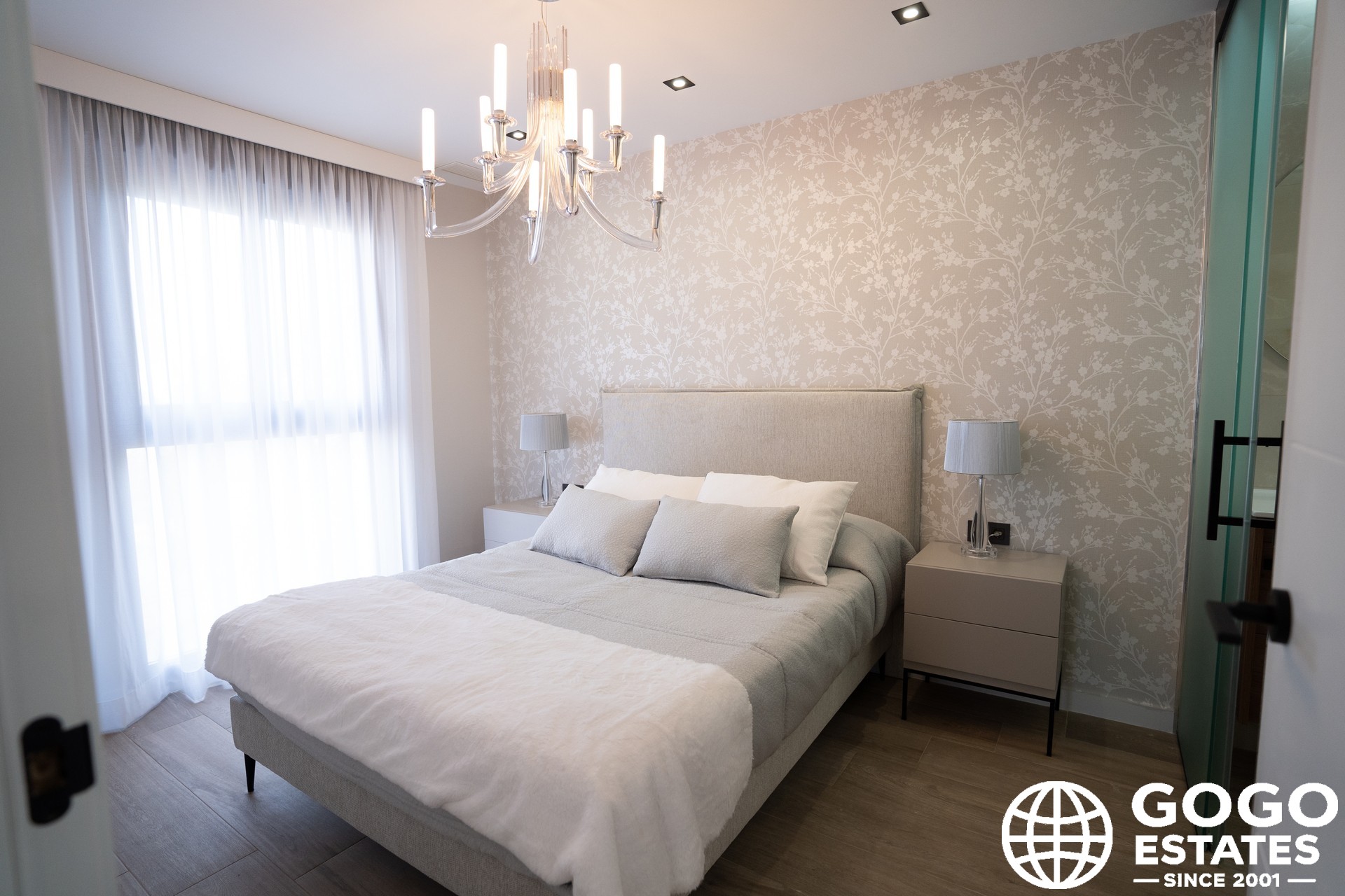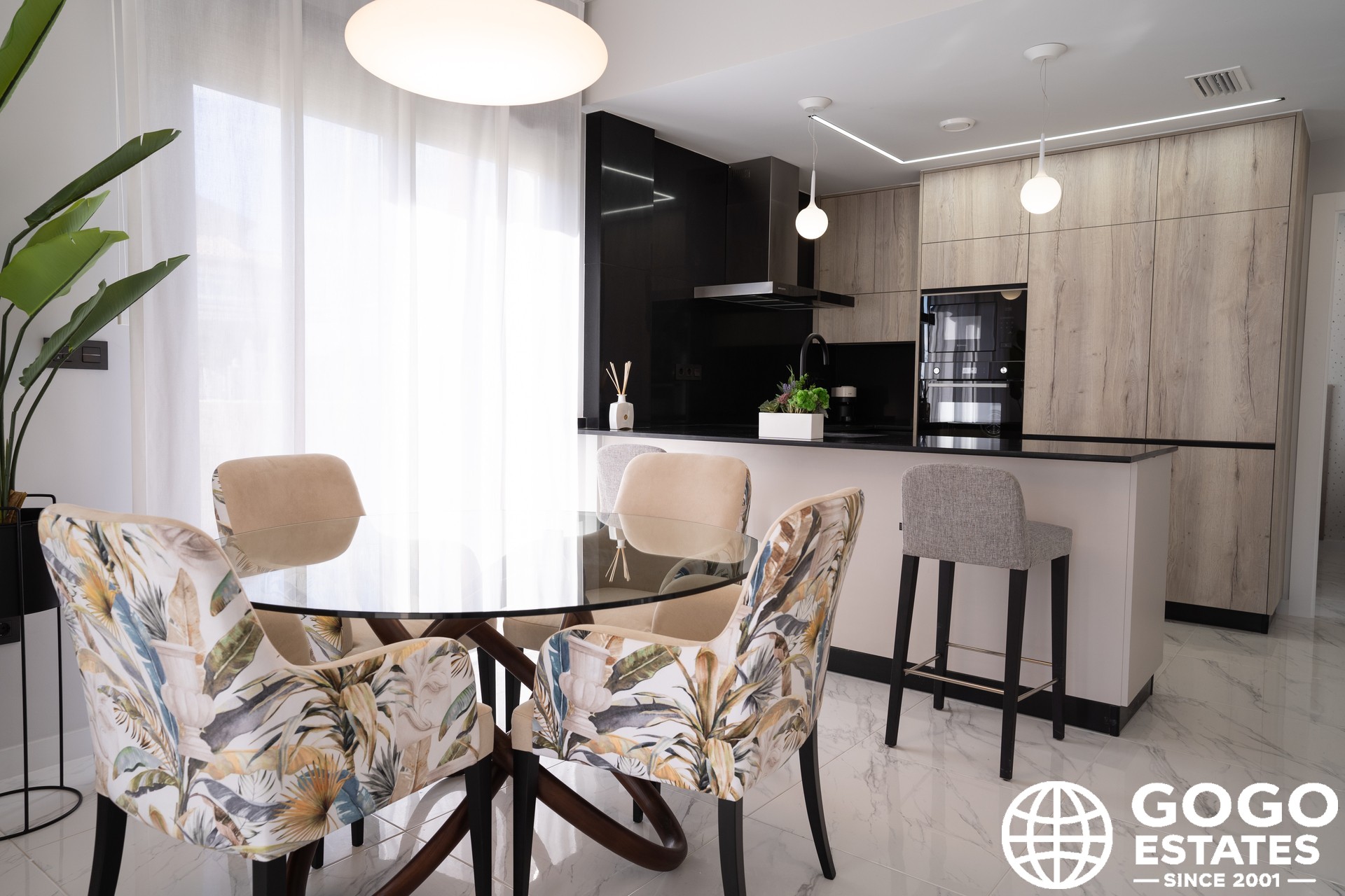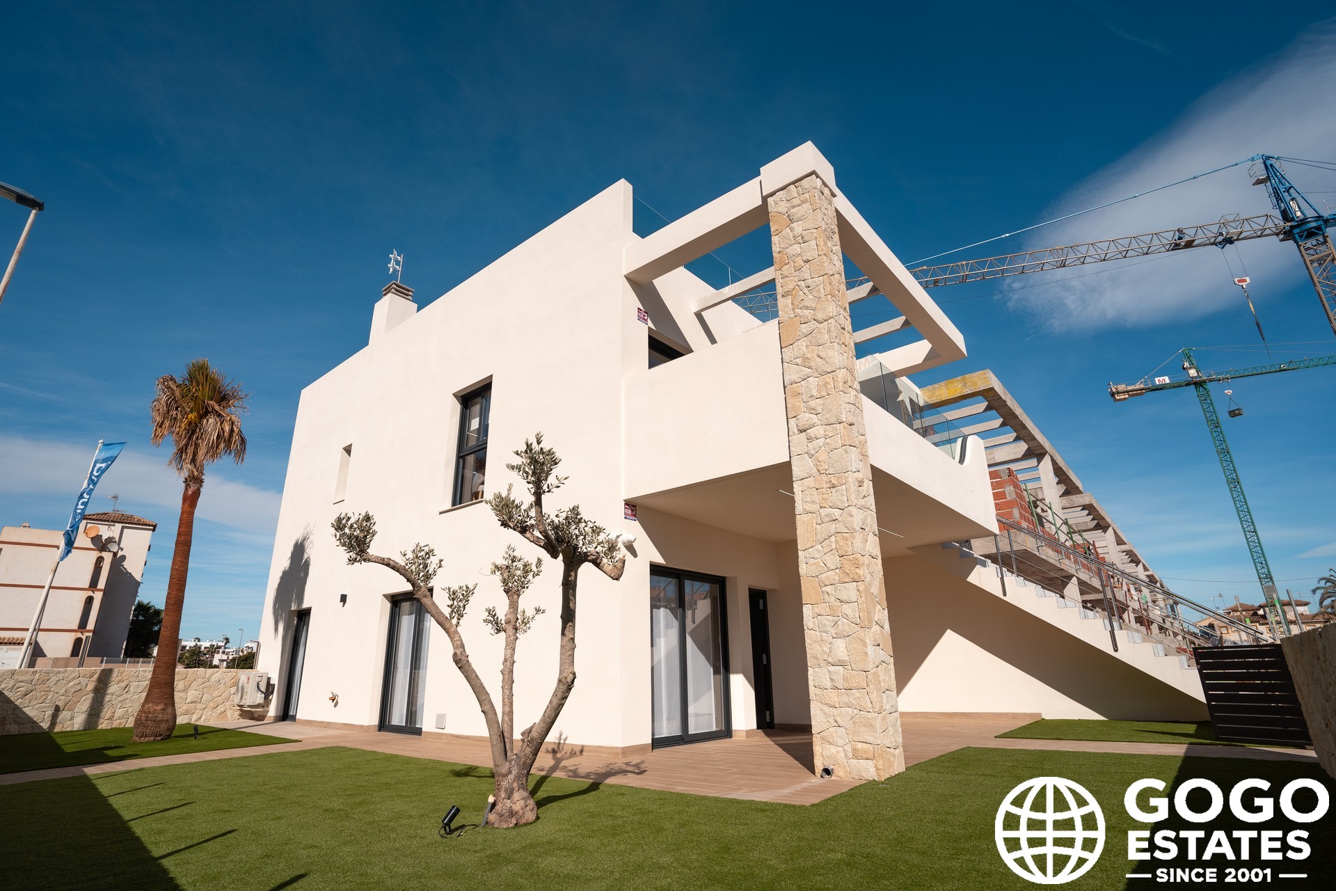 The exteriors are designed to maximize enjoyment of the Mediterranean climate, featuring a private garden and terrace. Additional outdoor space includes a solarium and elegant pergolas.