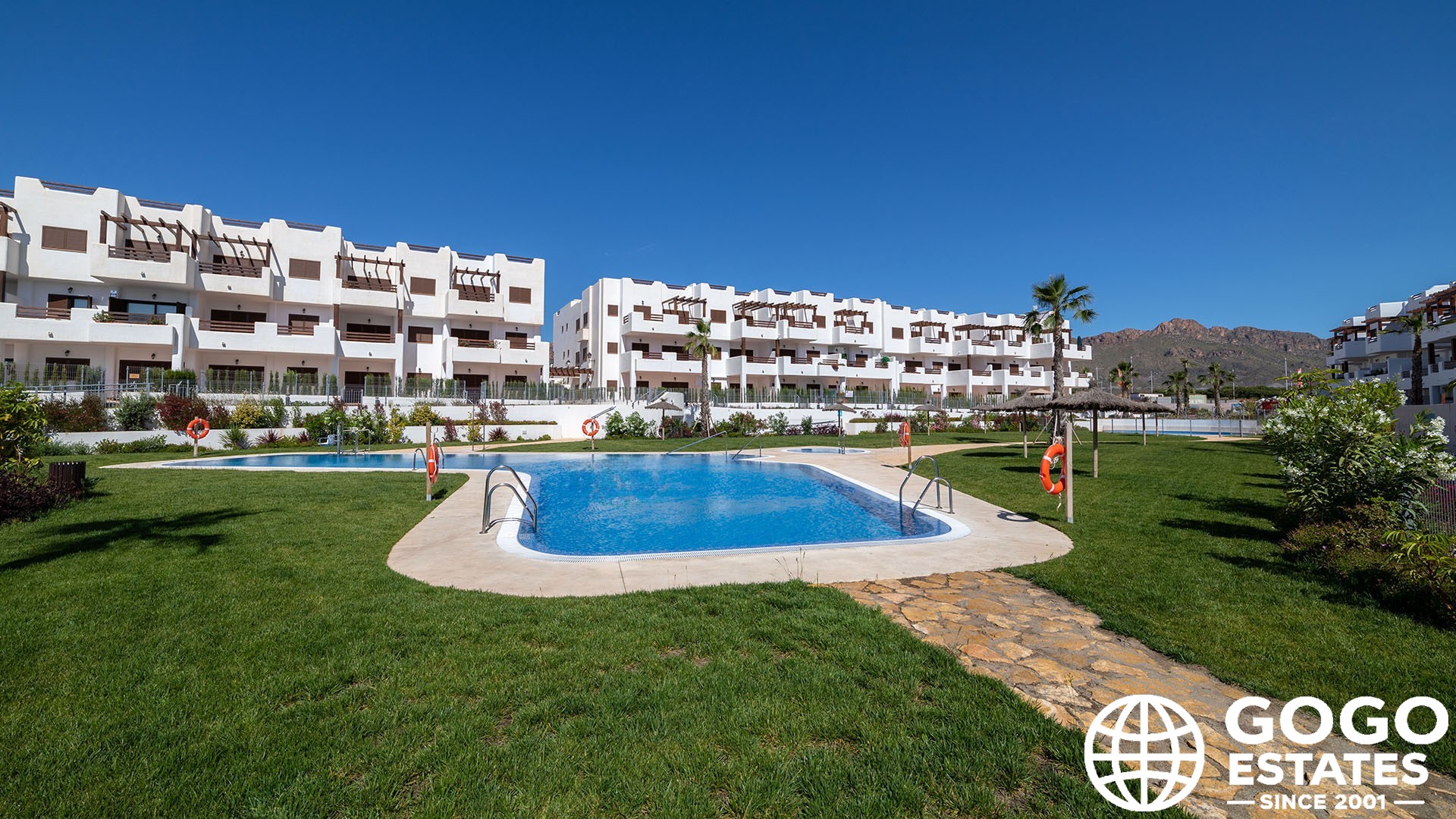 The complex also boasts communal areas, including a pool, landscaped gardens, and a playground, enhancing the quality of life for residents.