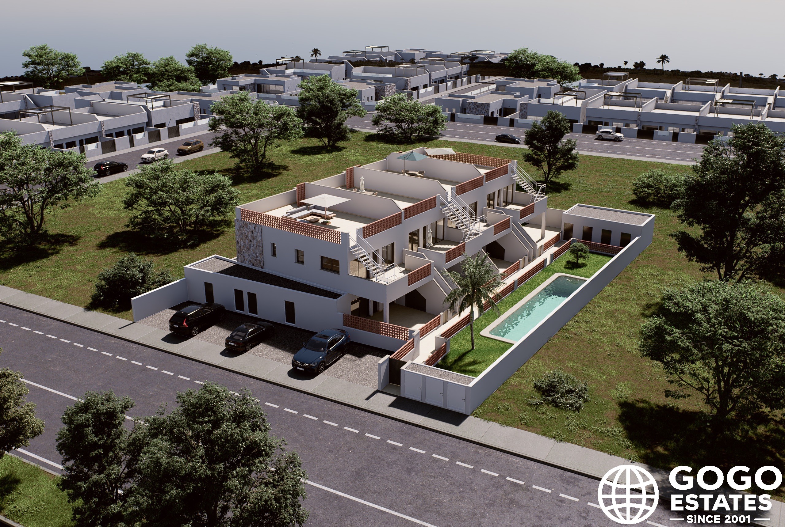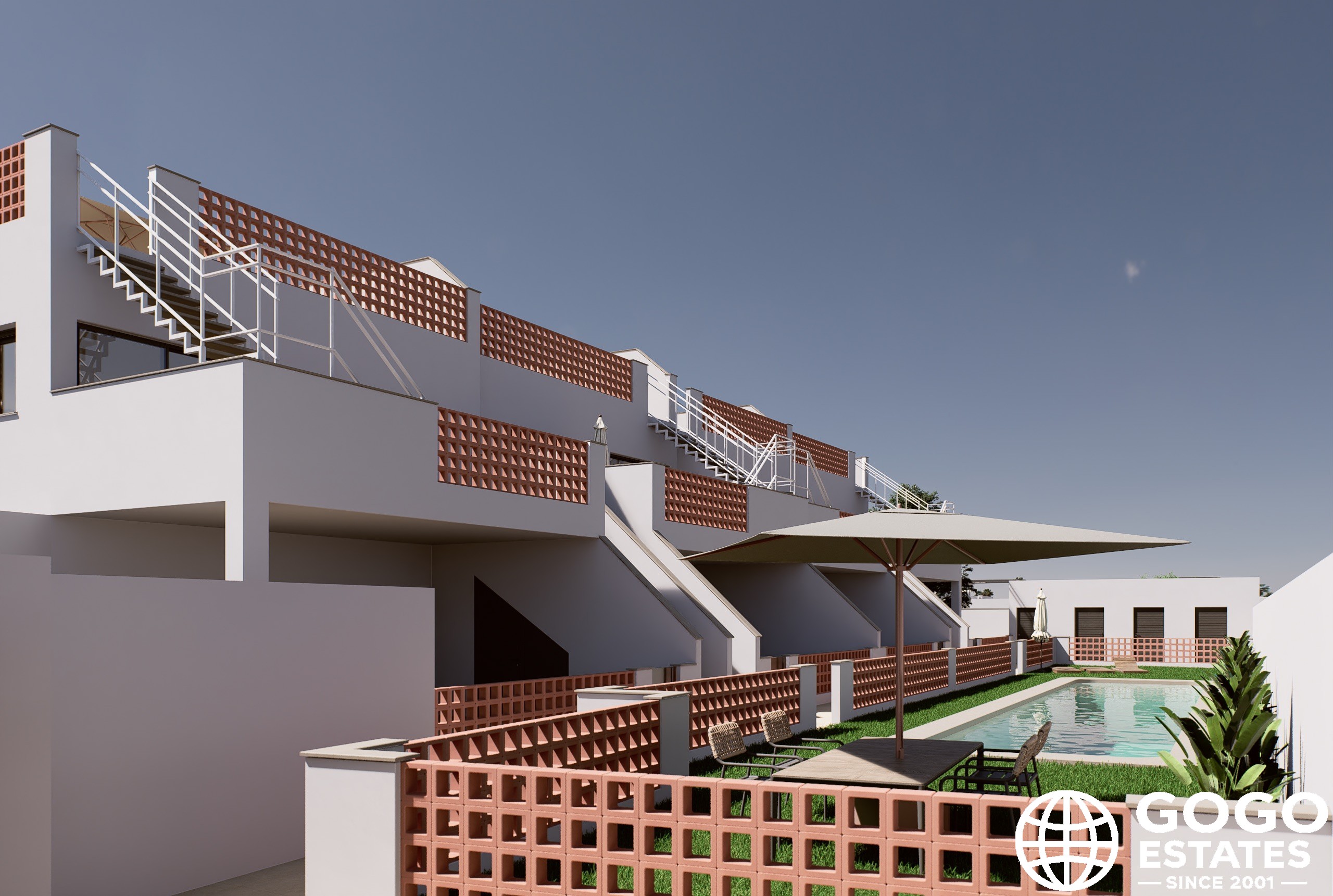 Outdoor areas include a private garden and a spacious terrace, perfect for enjoying the Mediterranean climate. The community also provides a pool and garden areas, enhancing the tranquil environment.