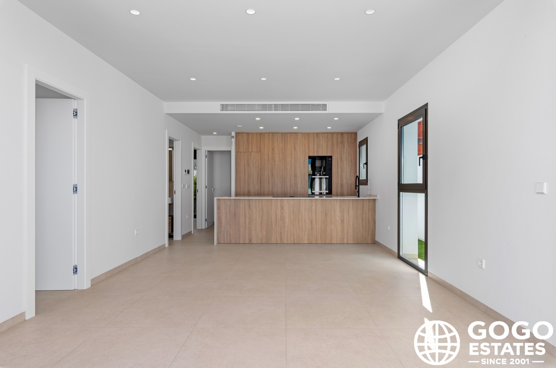 Inside, the bungalow features porcelain tile floors, air conditioning, and high-quality appliances. Built-in wardrobes offer efficient storage, making the home practical and welcoming.
