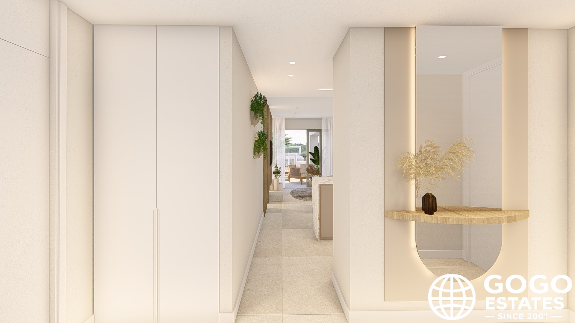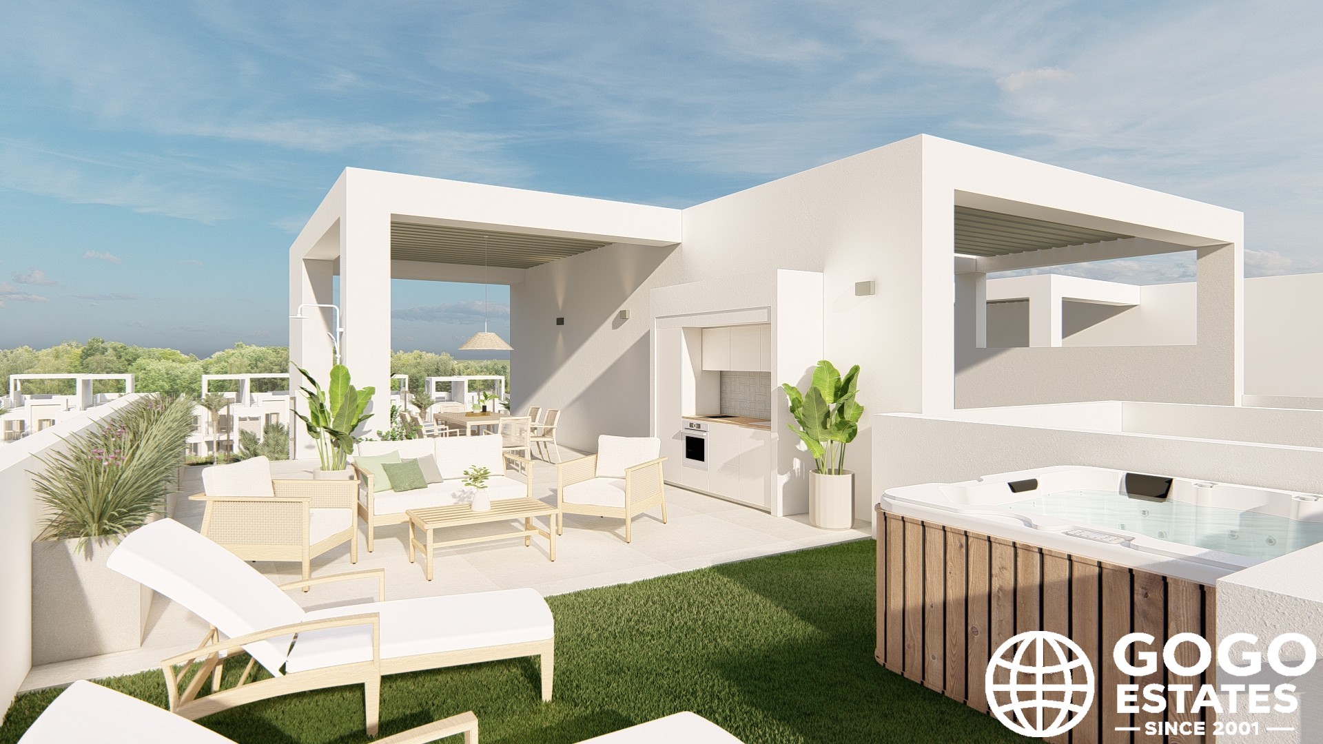 The homes feature outdoor spaces designed to maximize enjoyment of the Mediterranean climate. Each property includes a private garden, perfect for creating a personal oasis or a play area for children. Additionally, the spacious terraces offer an ideal place to relax outdoors, enjoy al fresco dining, or simply take in the surroundings. The presence of a solarium in each home adds an exclusive touch, allowing residents to enjoy panoramic views and sunshine year-round.