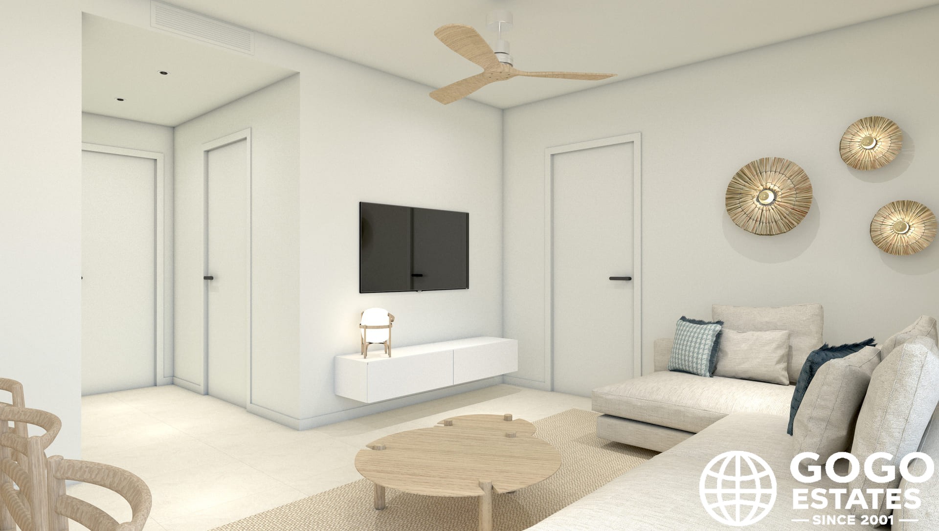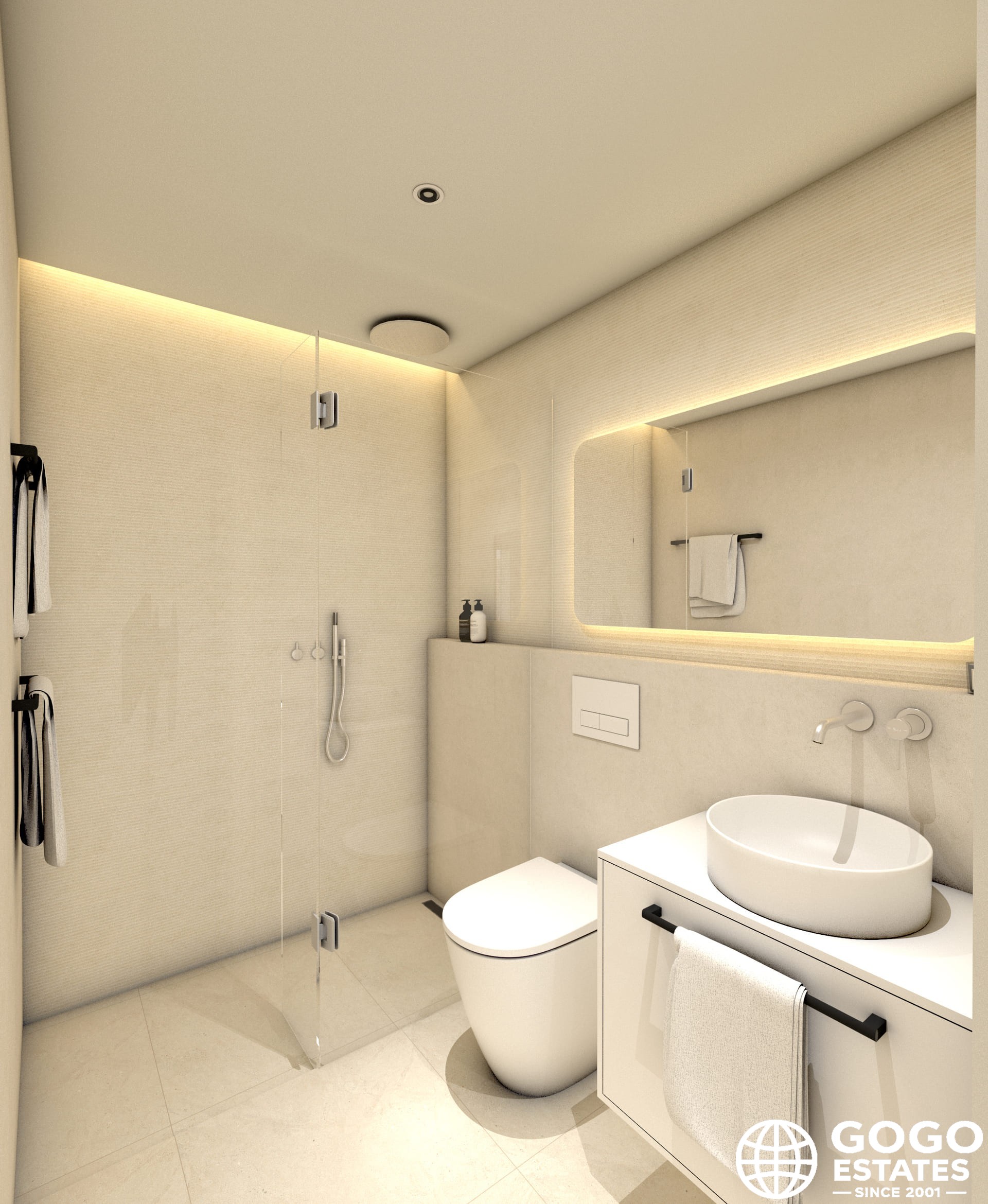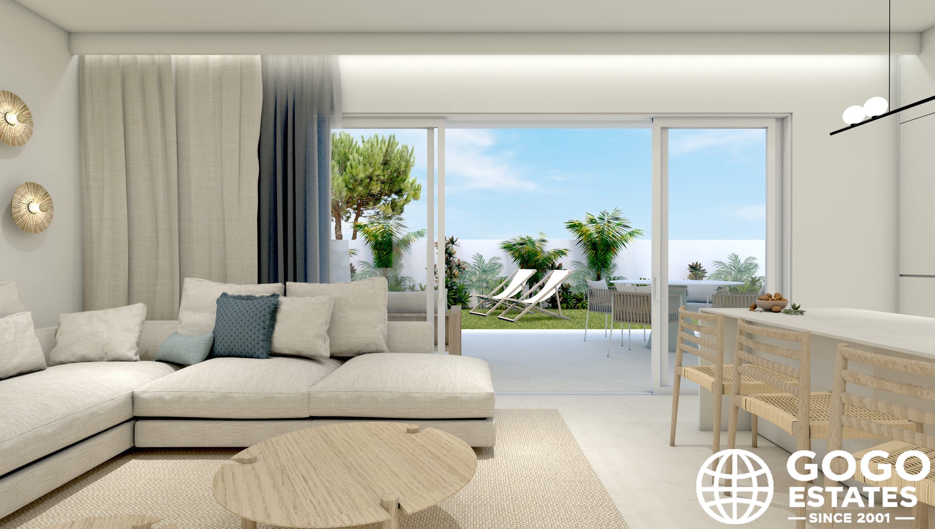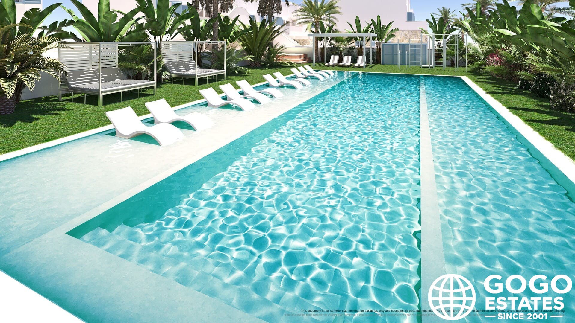 Residents will enjoy the proximity to the sea, just 800 meters away, and convenient access to the airport, located 47 kilometers from the property. The community also offers spacious garden areas and a communal pool, enhancing the outdoor living experience.