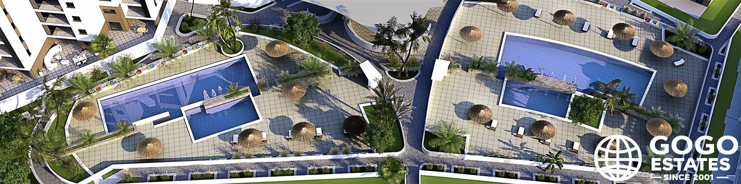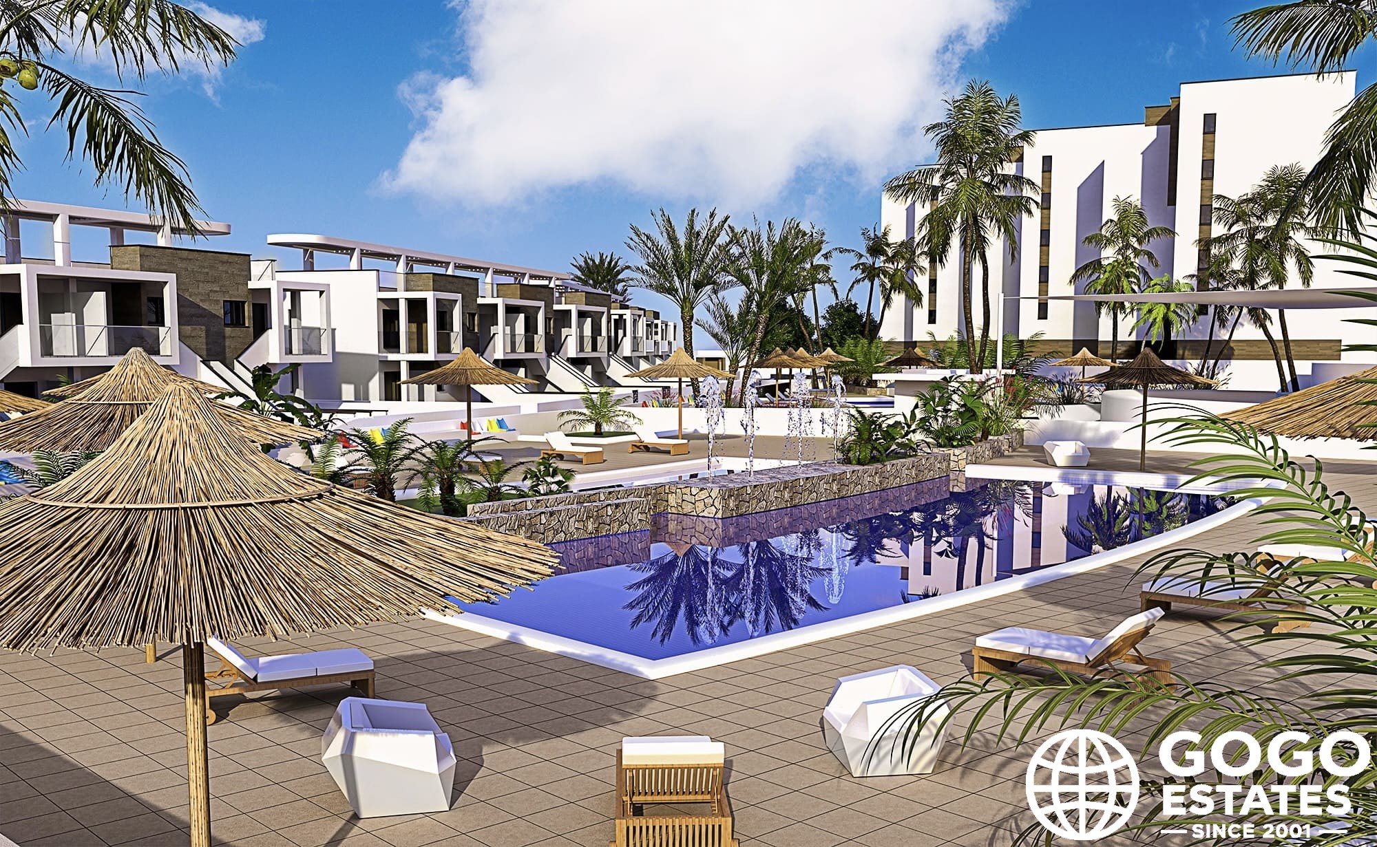 Each bungalow features two bedrooms and two bathrooms, designed for maximum comfort. The interiors include built-in wardrobes and a fully equipped kitchen, ensuring functionality from day one. Pre-installed air conditioning adds to the year-round comfort.
