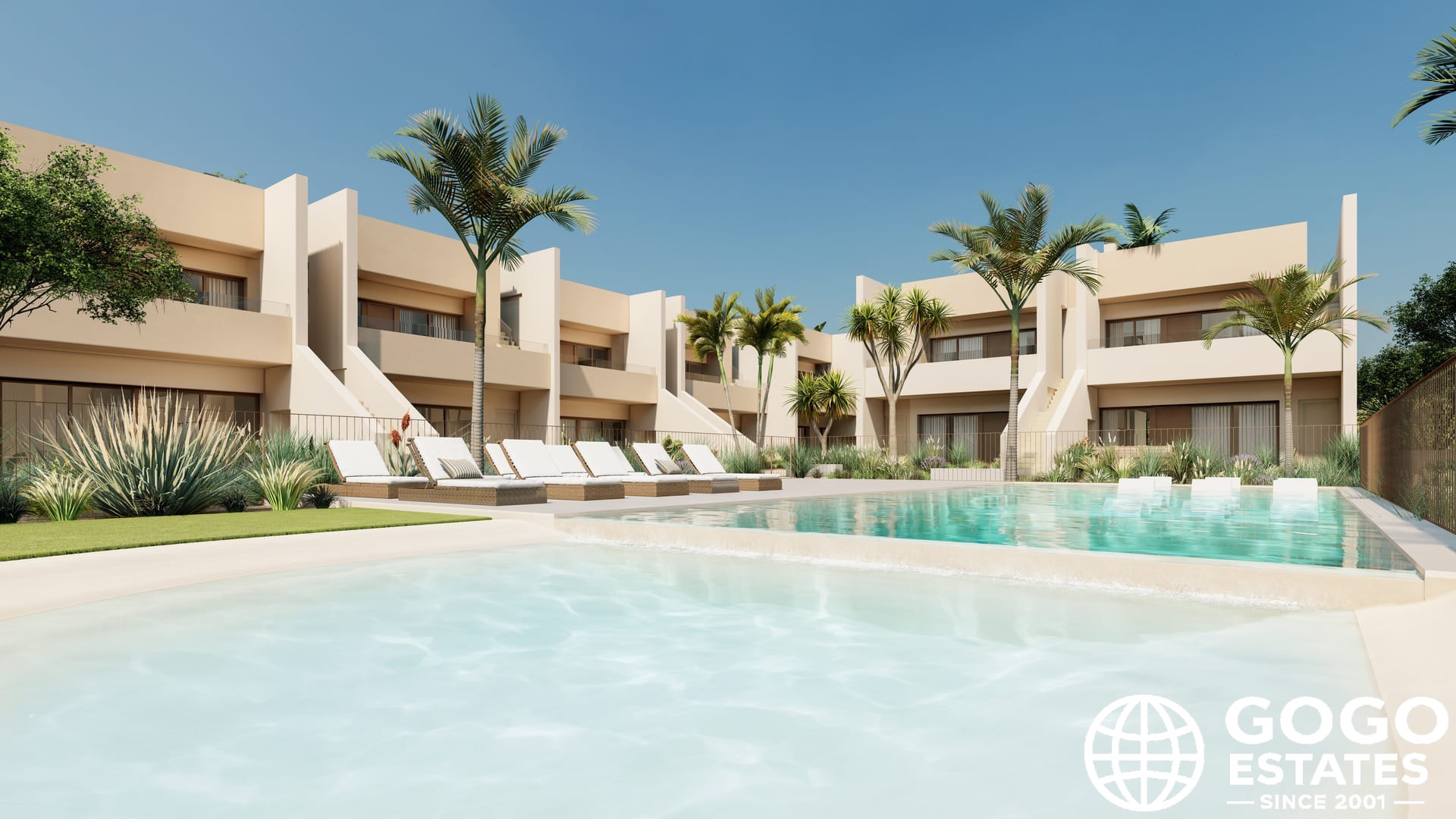 Located in the charming town of San Javier, this residential complex offers a selection of 27 bungalows, available in two types: high-bungalow and low-bungalow. The location is ideal for those seeking a balance between tranquility and accessibility, with the sea just 5 km away and a golf course 1 km away.